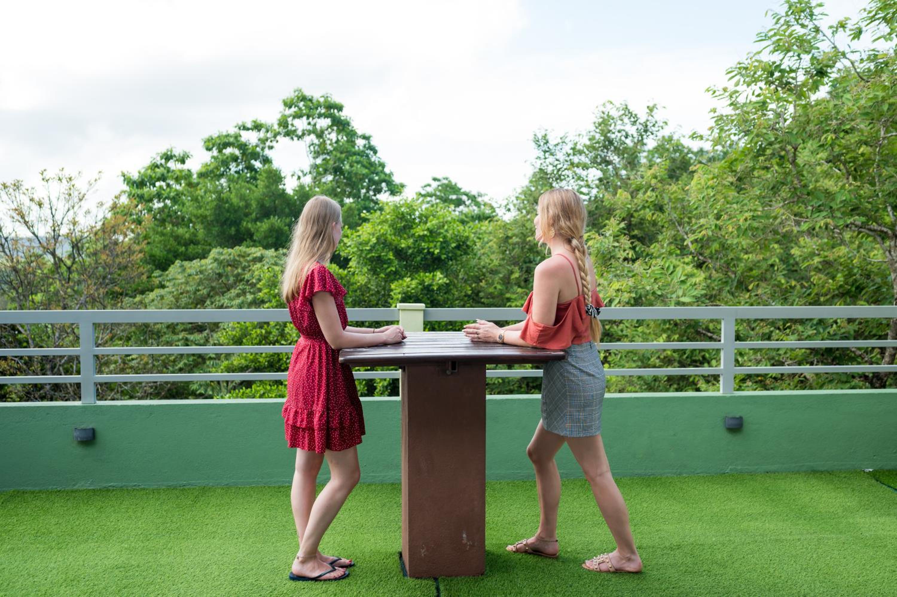 чистый, современный отель. подальше от городской суеты. отель находится на горе, с одной стороны окна во внутренний двор, с другой- на дорогу, было чуть шумновато, но спать не мешало. горячая вода постоянно, чайник, холодильник, кондиционер, общий балкон. до Джангл Бич 10 минут пешком. завтраки яйца, тосты и фрукты.