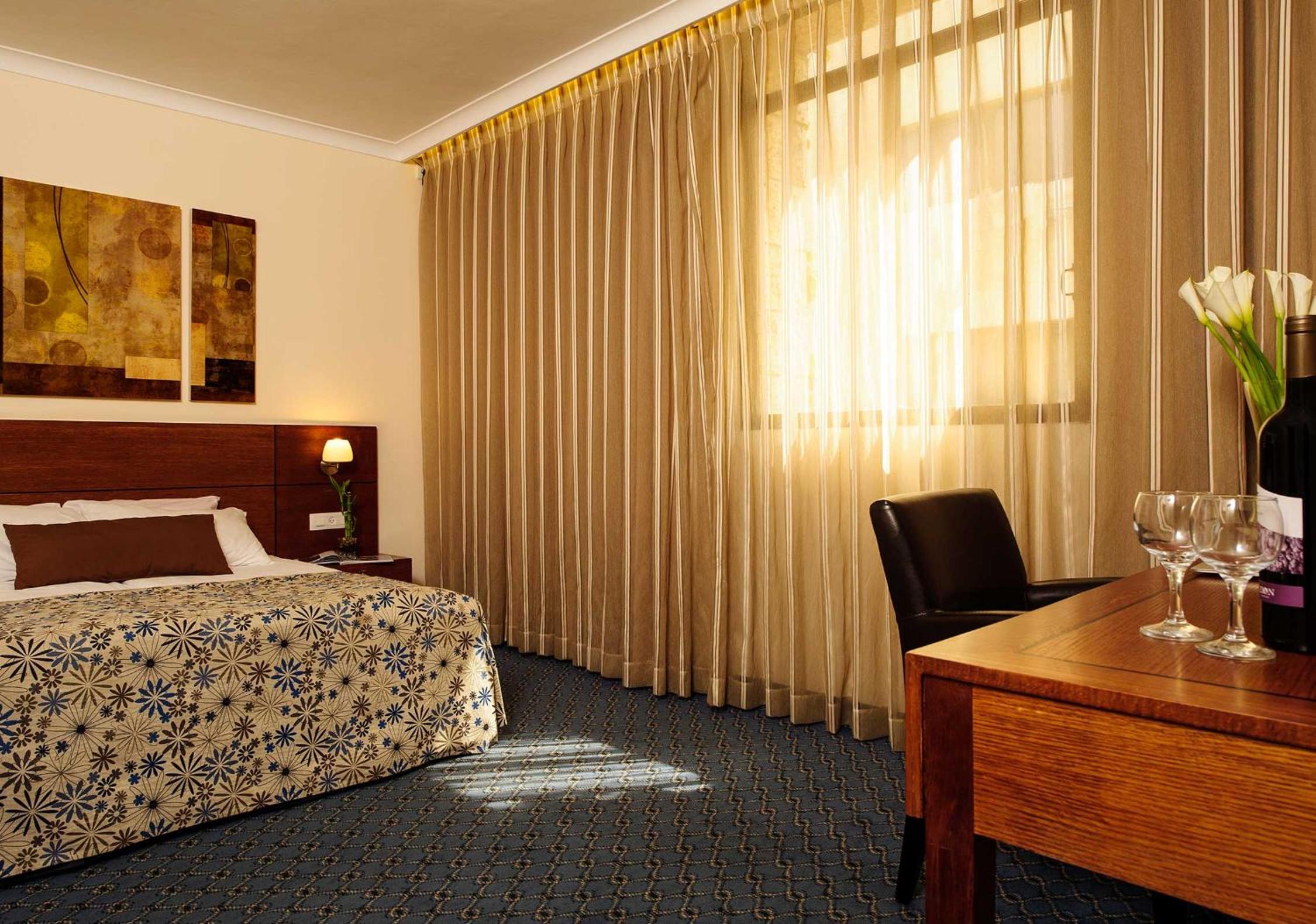 Caesar Premier Jerusalem Hotel, located near Jerusalem's International Convention Center, offers a seasonal rooftop swimming pool, excellent kosher food, and free on-site parking. The air-conditioned rooms feature satellite TV, internet access, and a tea/coffee maker.