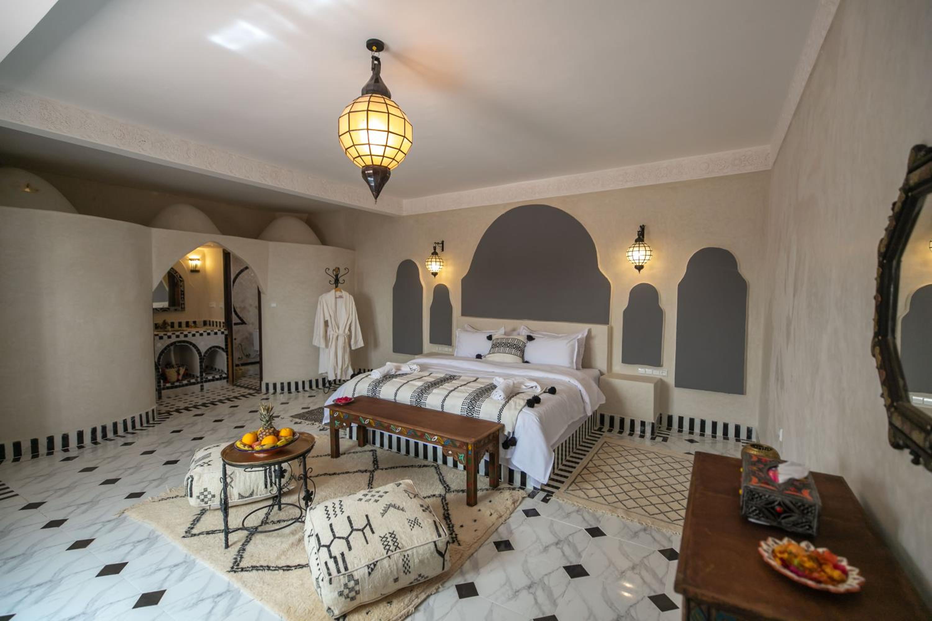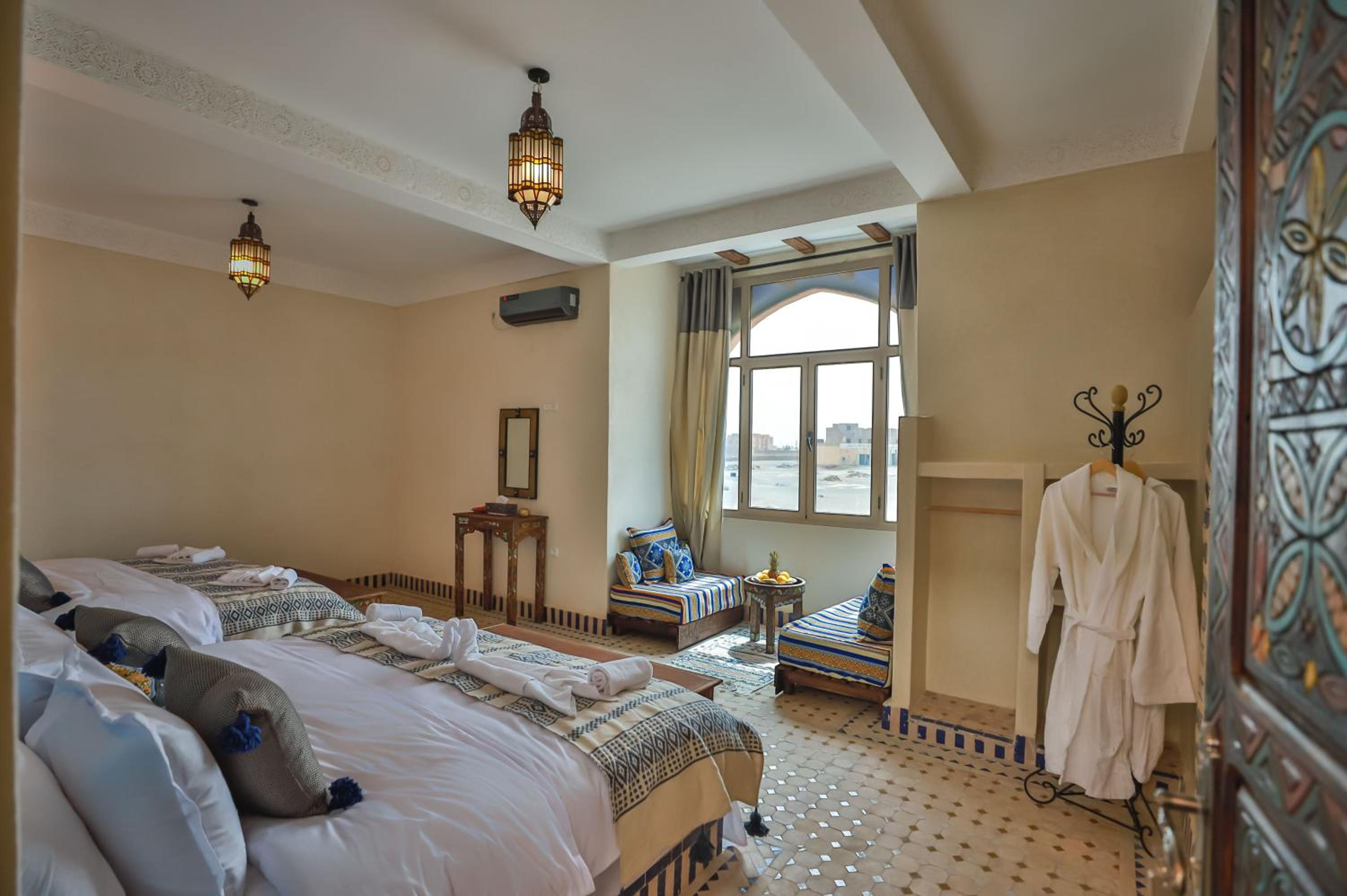 とてもよく部屋がデザインされている。モロッコのホテルの雰囲気が味わえる。清掃がしっかりしていて部屋がきれい。また、とても広い。モロッコでこれまでに泊まったホテルで一番気に入った。
