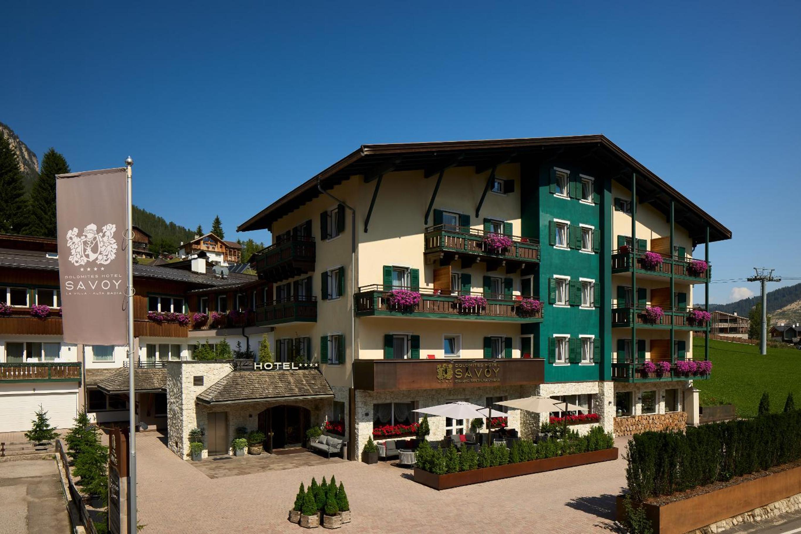 Hotel Savoy in La Villa offers a lavish experience with its wellness center featuring a hot tub, hammam, and sauna. Guests can unwind and rejuvenate after a day of activities.