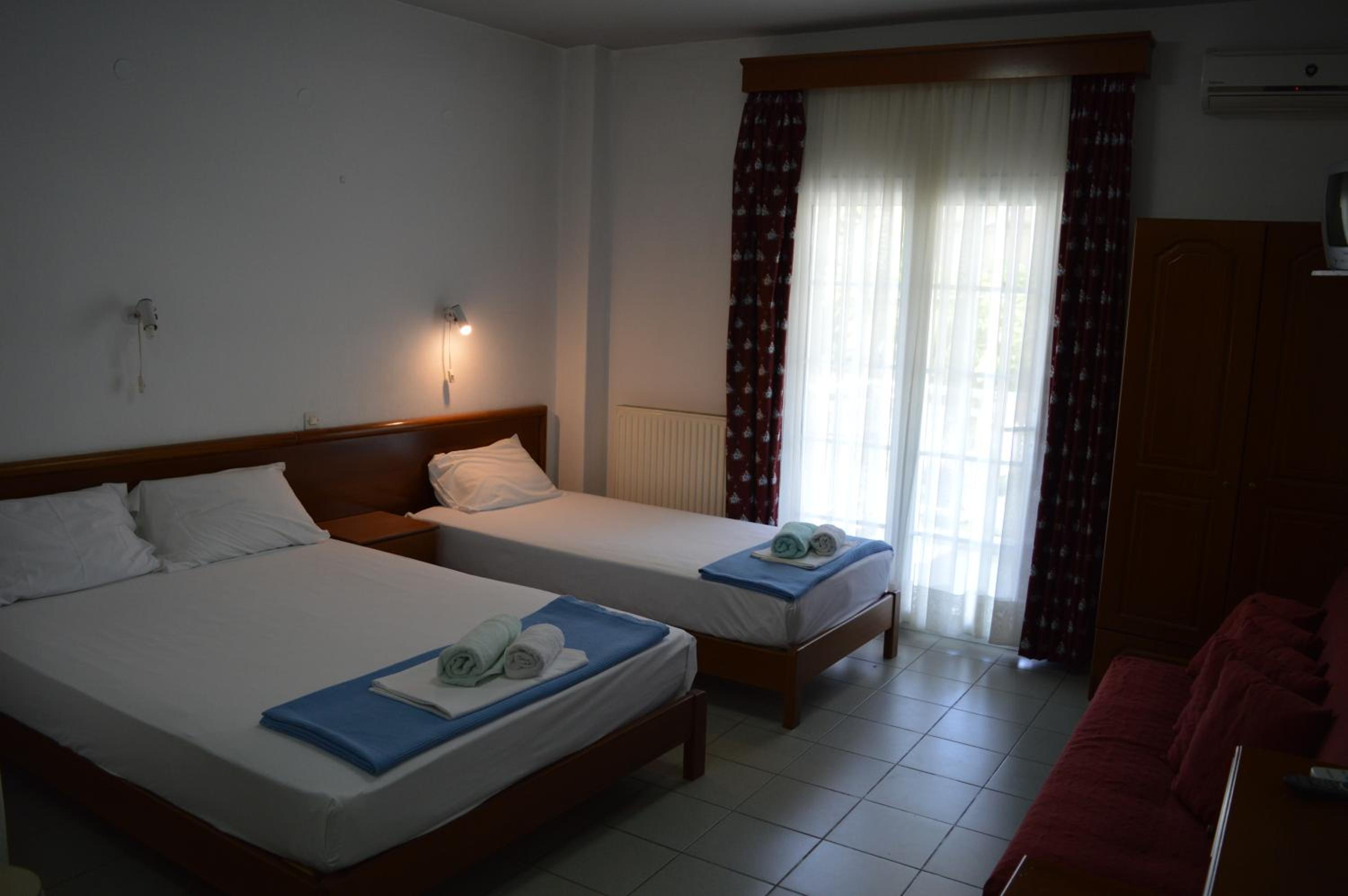 Изключително любезен персонал и перфектна локация. На тръгване получихме комплимент от хотела с традиционни гръцки продукти. Препоръчвам.