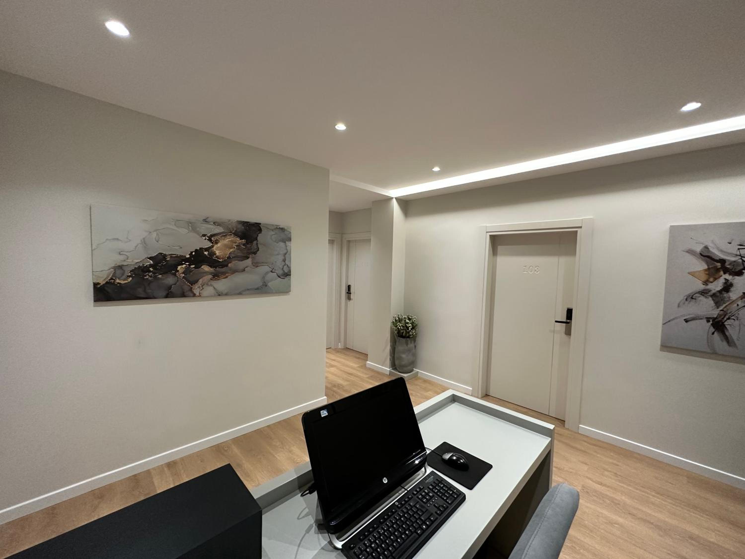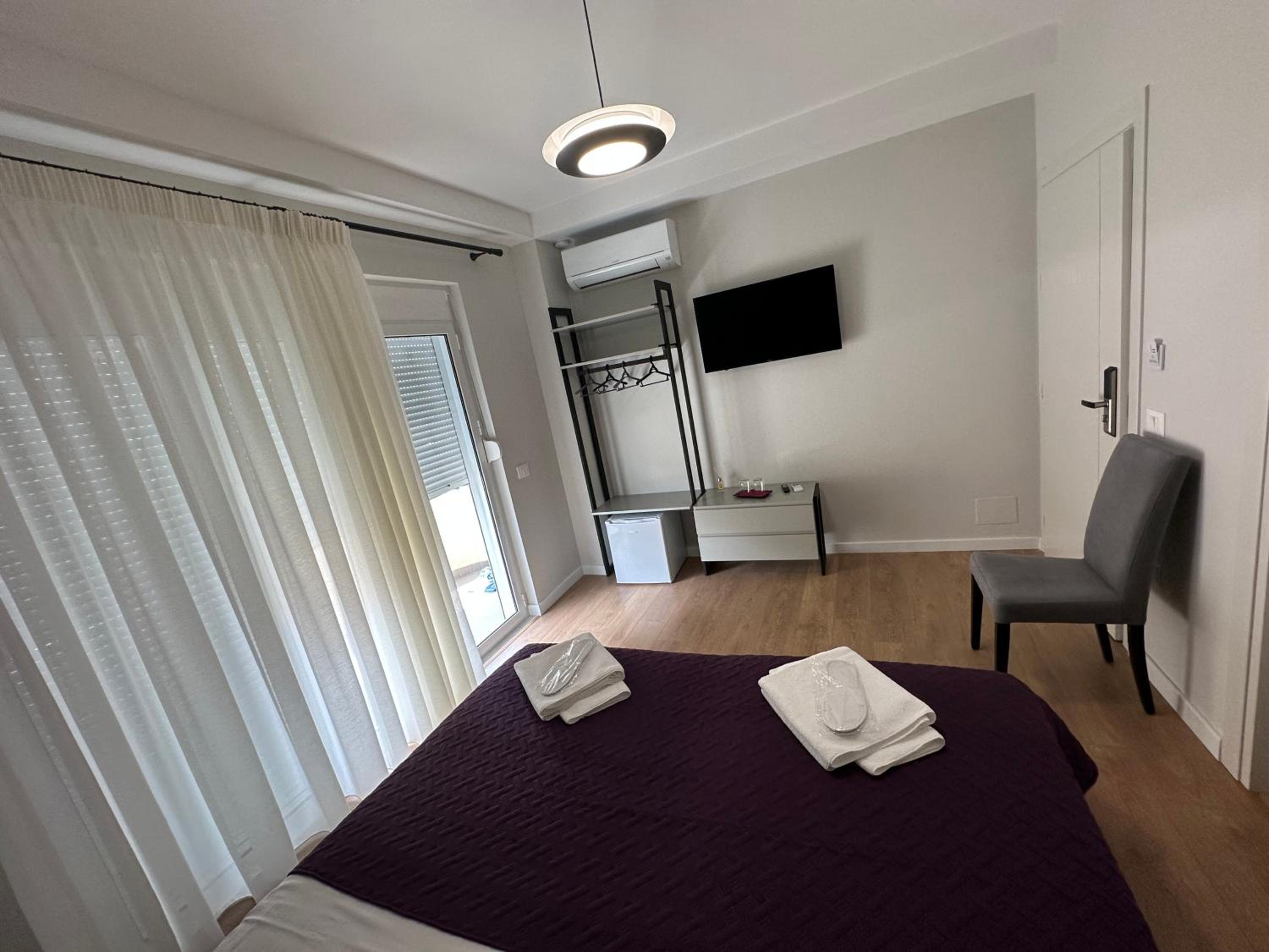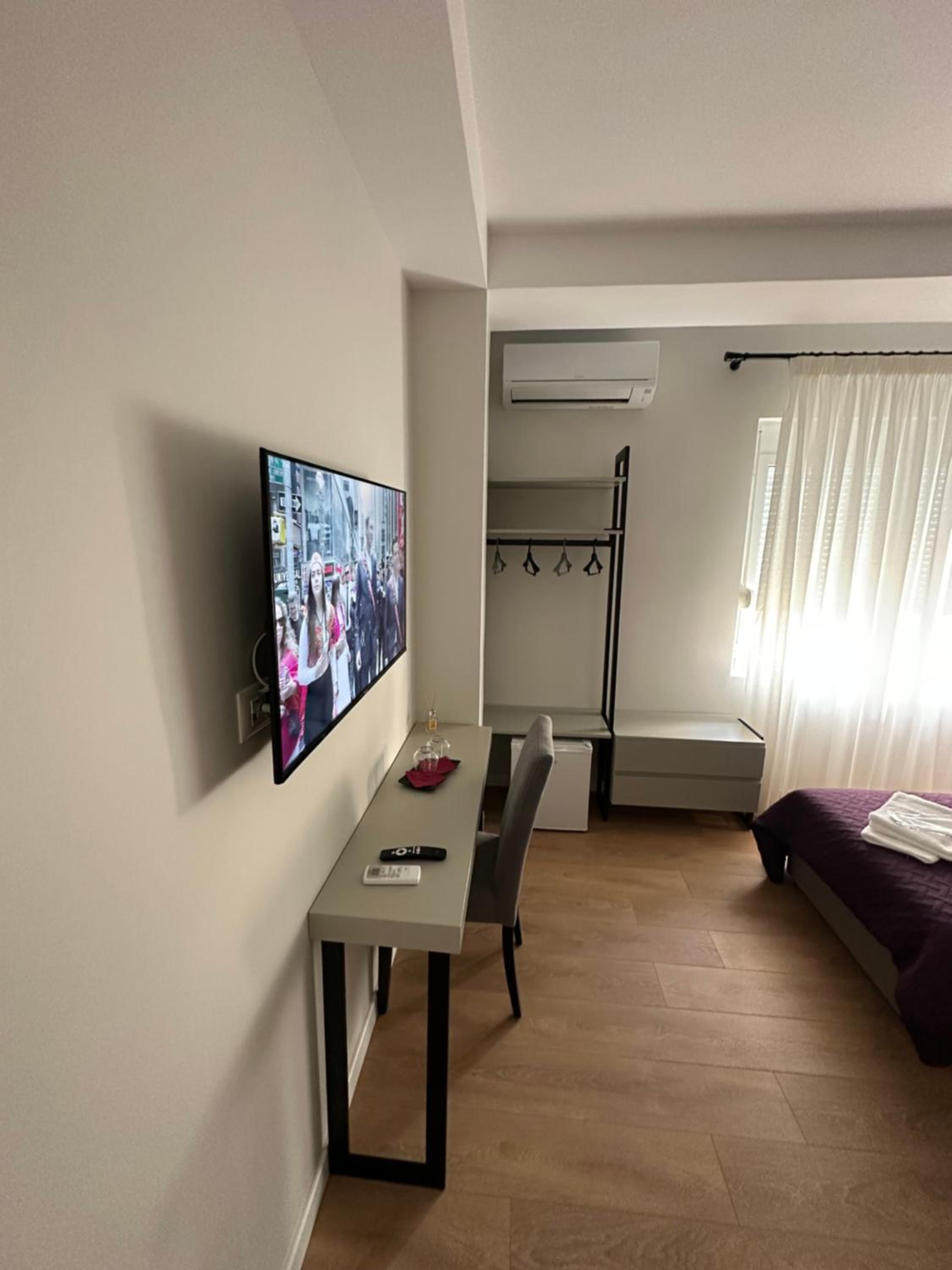 Modern Amenities: Enjoy a comfortable stay in our recently renovated aparthotel with amenities such as free WiFi, air conditioning, flat-screen TVs, and private bathrooms with slippers and a bidet.