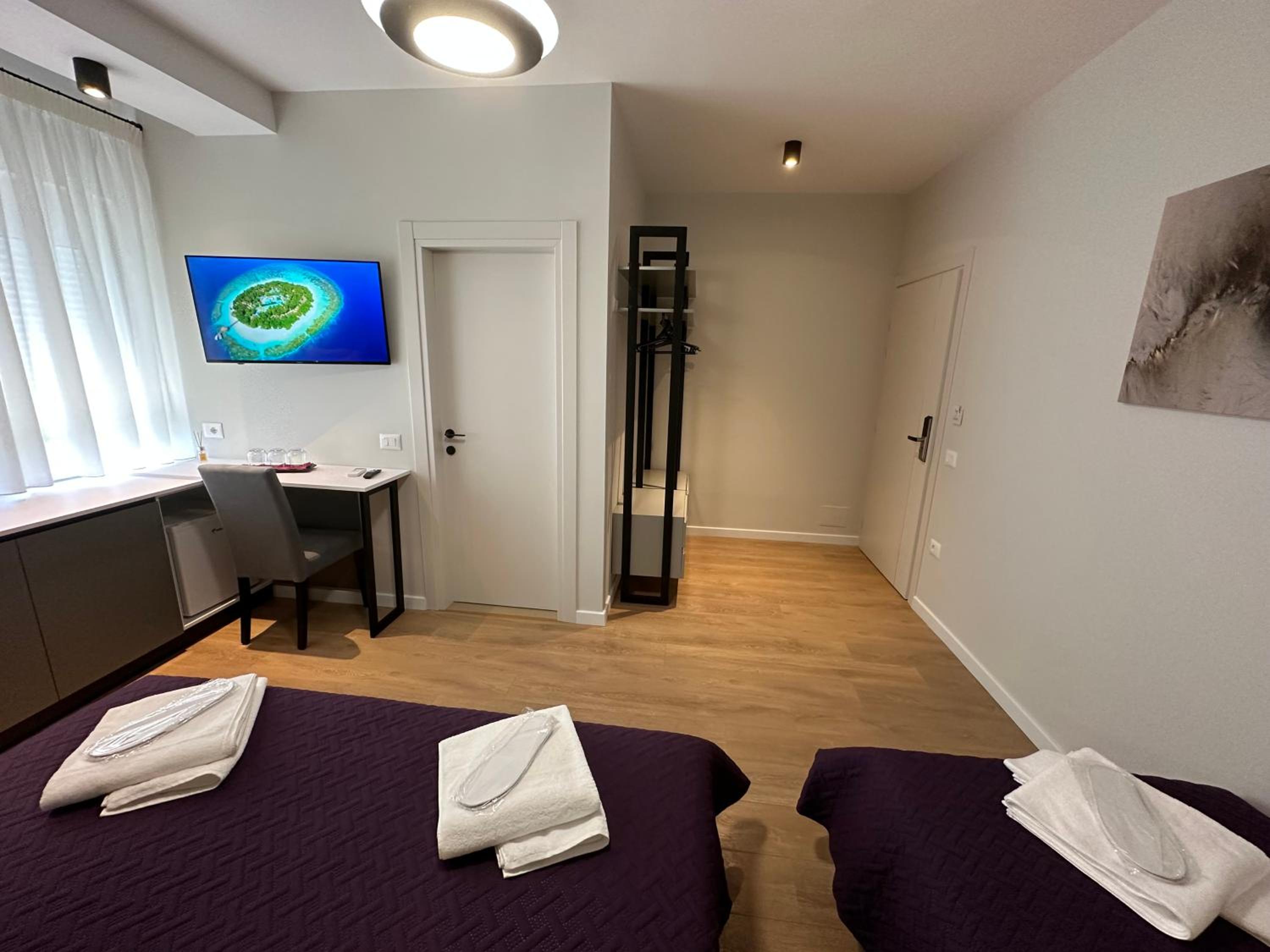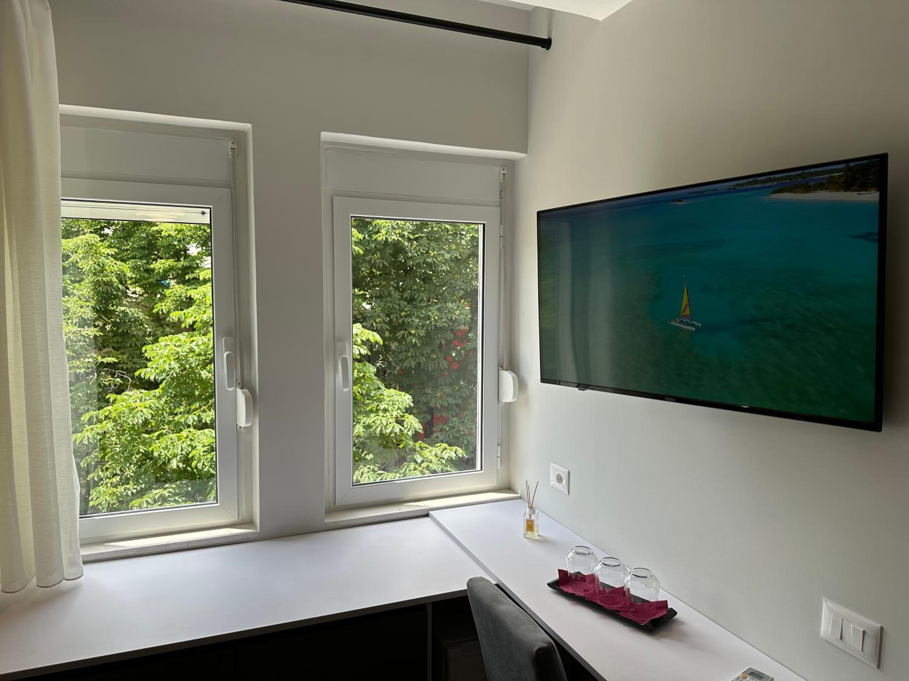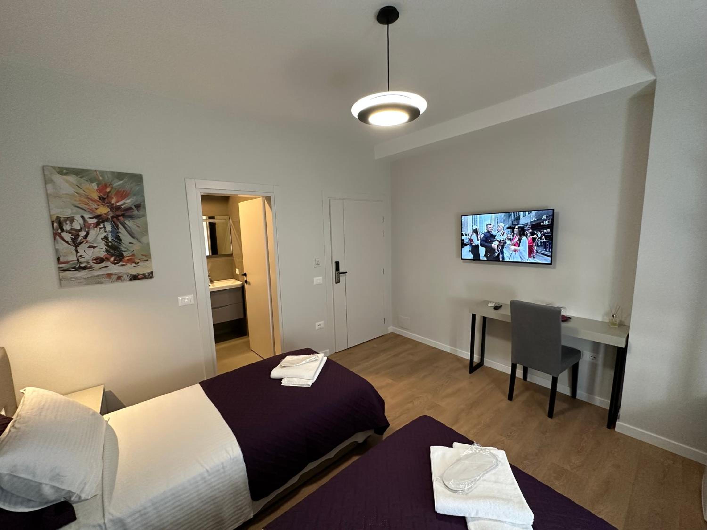 Modern Amenities: Enjoy a comfortable stay in our recently renovated aparthotel with amenities such as free WiFi, air conditioning, flat-screen TVs, and private bathrooms with slippers and a bidet.