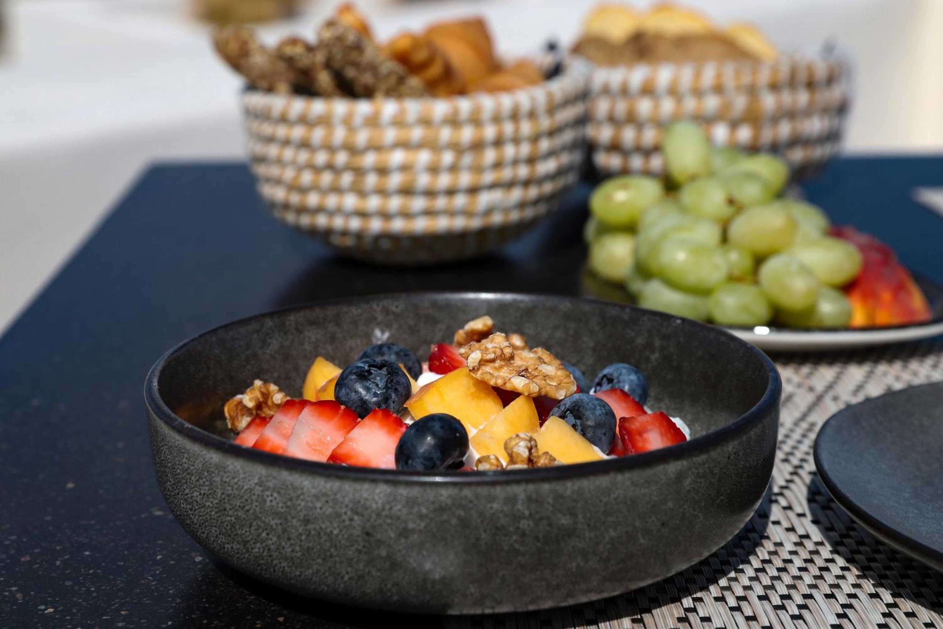 Arxegono Cave Houses are an excellent place to stay whilst on Santorini especially if you do not want to be in the busy parts on the Caldera. They are also easily accessible by public transport. The cave room we had was beautifully appointed with everything we needed provided for. We had a warm welcome from Fotis who kindly accommodated us staying an extra night as we got caught up in a ferry strike. It was an extreemly comfortable stay and we very much enjoyed using the roof terrace both to see the sunset across the island and for breakfast. Having seen the reviews we also ate at Rosemary owned by Fotis and tried their homegrown wine - all of which was excellent. We were also able to leave our bags on check out enabling us to enjoy the day before collecting them before we headed off to an overnight ferry.