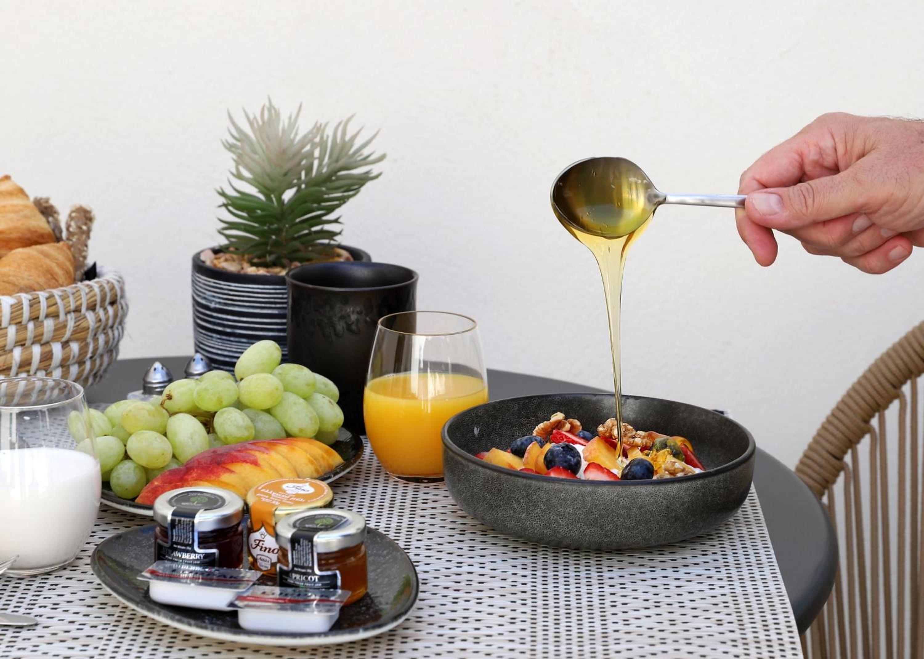 The breakfast was superb in a wonderful location on the terrace. Service excellent, I think that I was the only guest at the time
