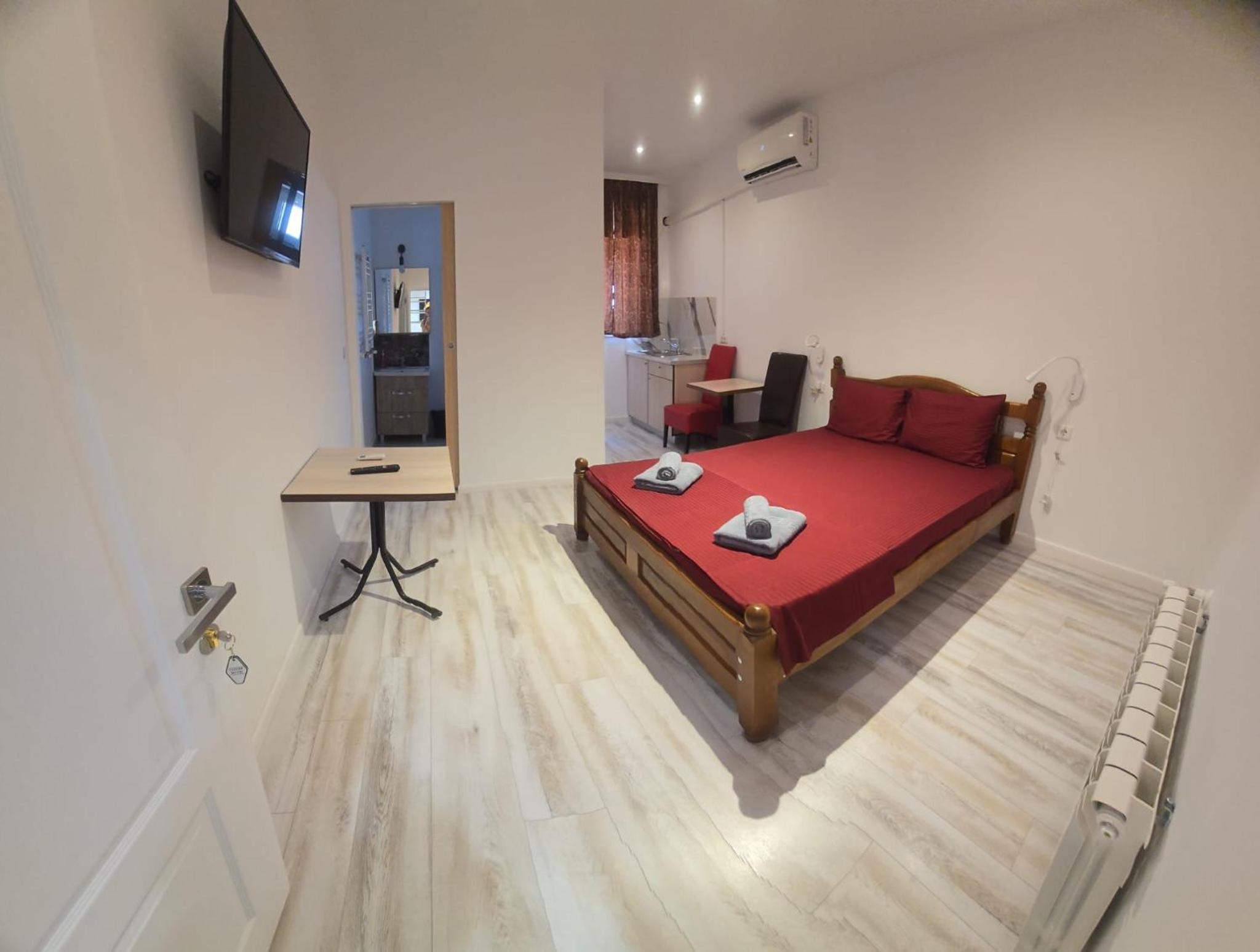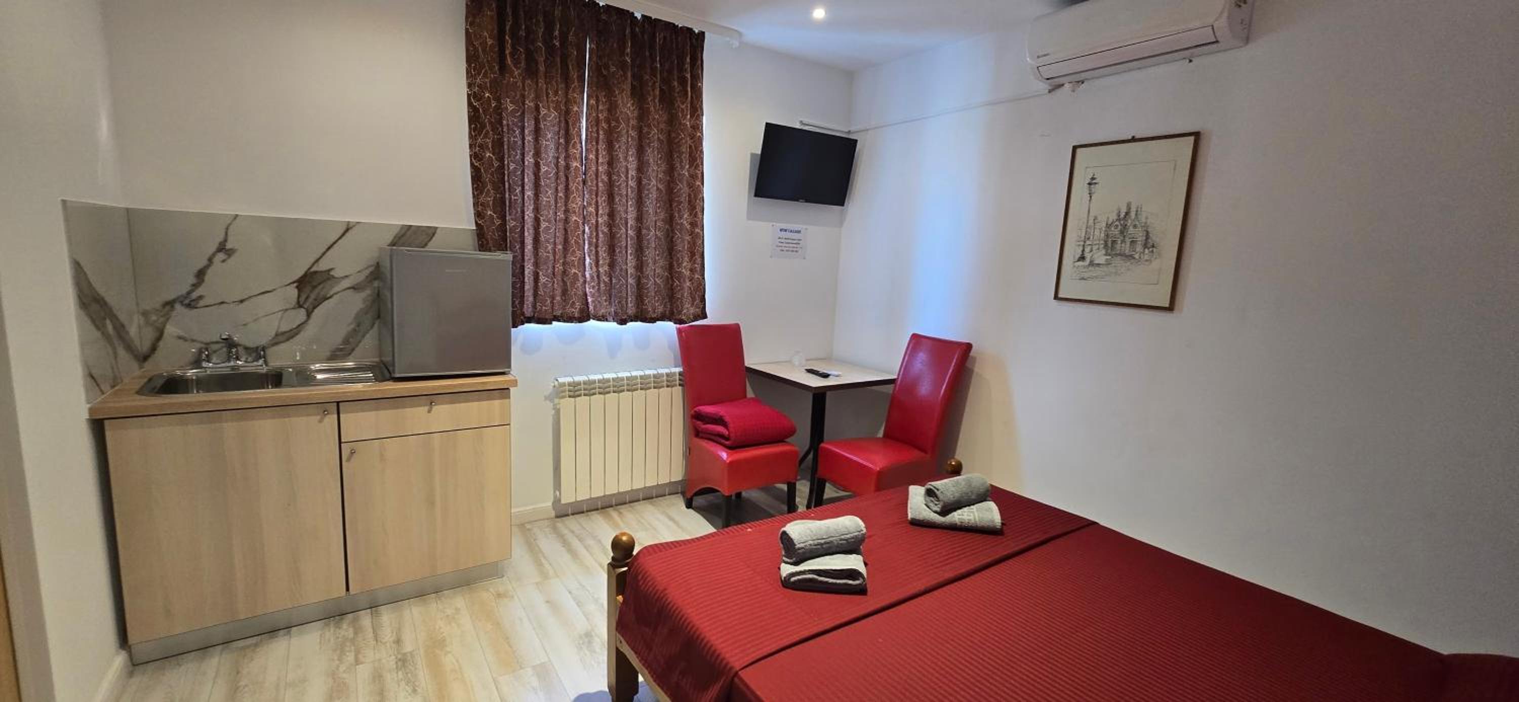 Relax with a flat-screen TV, private bathroom, and fridge in each room.