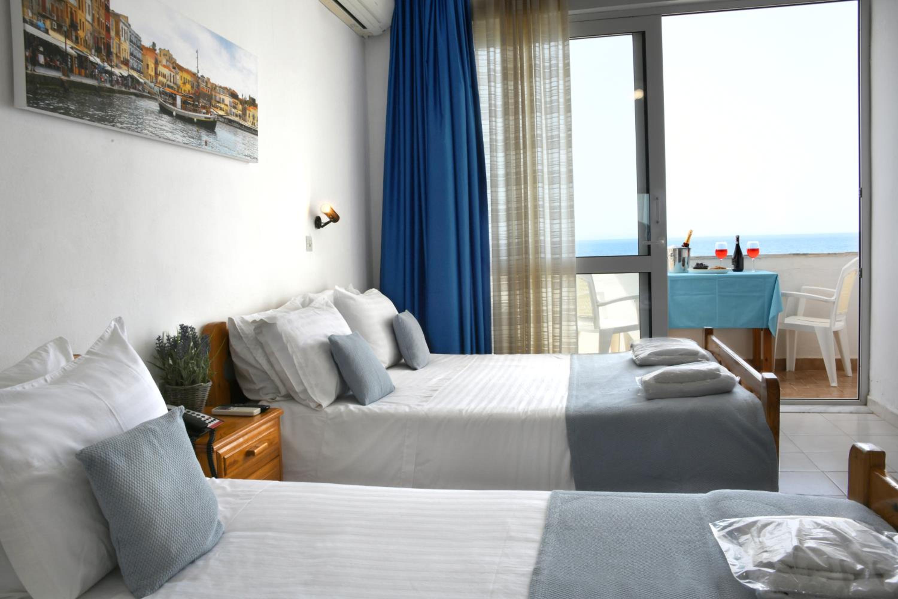 Experience stunning views of the sea and the charming town of Chania right from your private balcony. The spacious and airy rooms at Klinakis Hotel ensure a comfortable stay with modern amenities like a fridge and optional safes for hire.