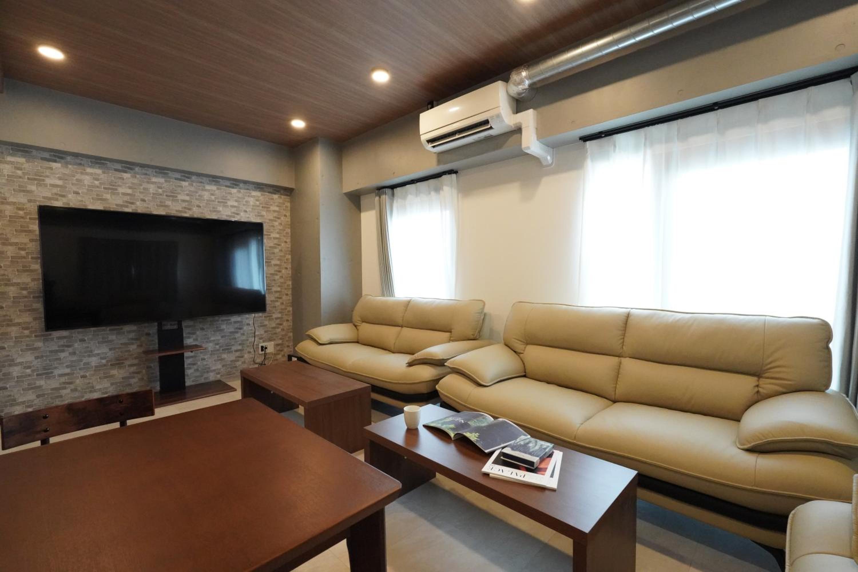 Each unit includes a flat-screen TV, kitchen appliances, and comfortable bedding, providing a home-away-from-home experience.