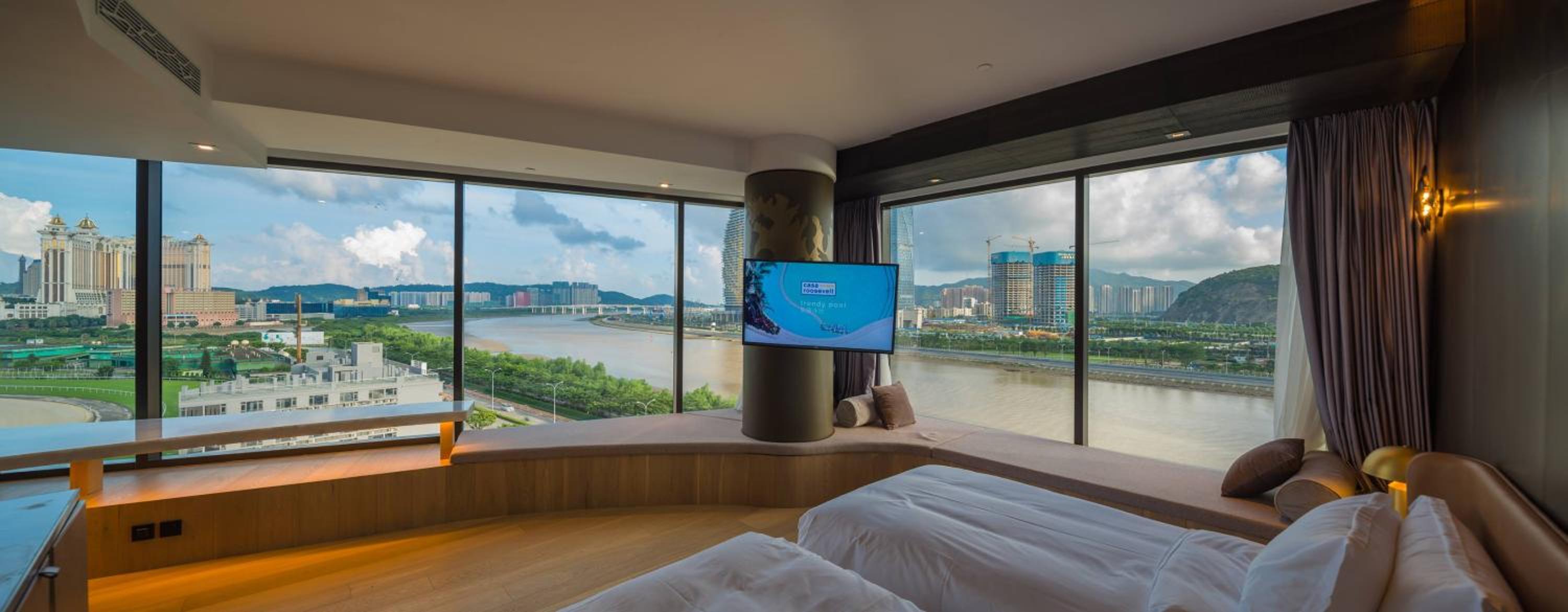 The Macau Roosevelt Hotel offers elegant guest rooms with stunning views, beautifully decorated with high-end furnishings and luxurious amenities for a comfortable stay.
