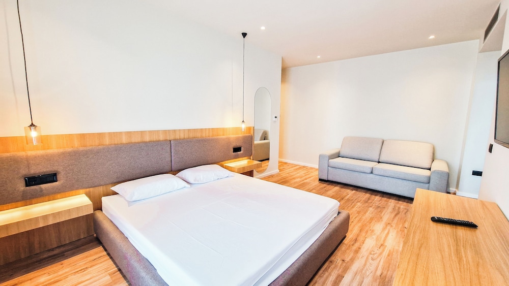 Vista top, hotel migliore di Saranda, pozione super tranquilla, zero rumore, zero problemi, i letti sono comodissimi, il personale è fantastico e la combo piscina jacuzzi è la fine del mondo.