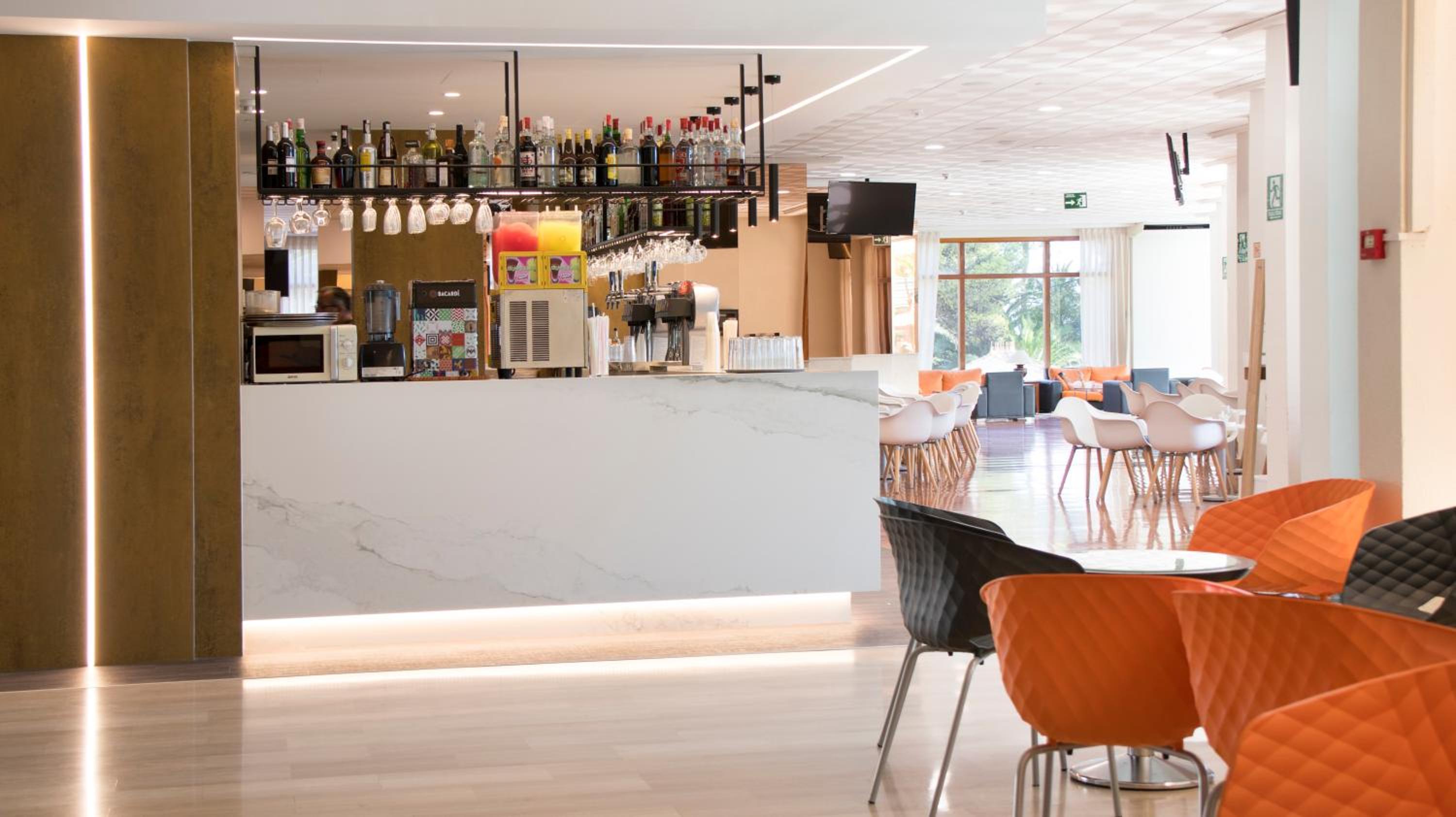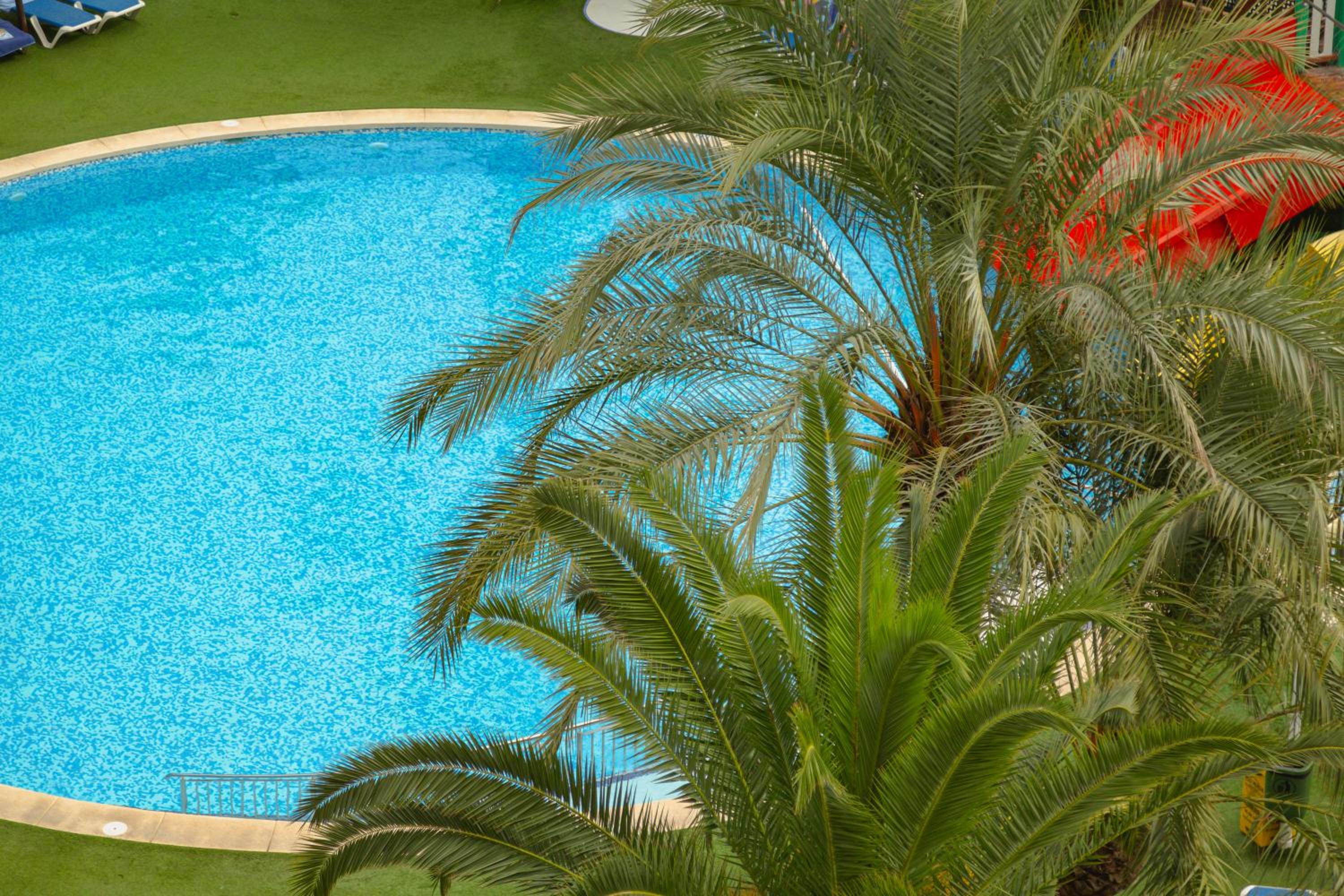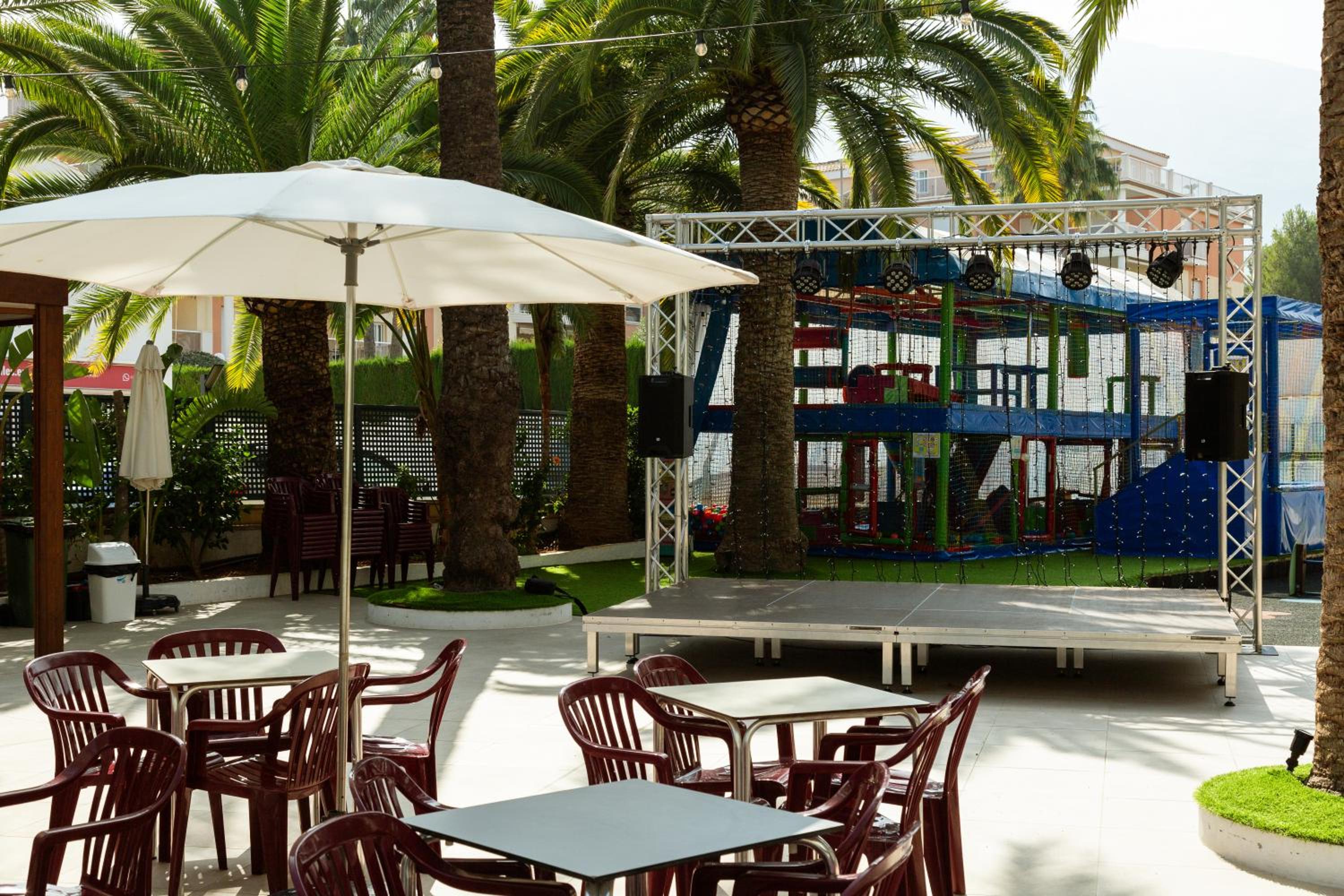 La zona de piscina y cafetería.