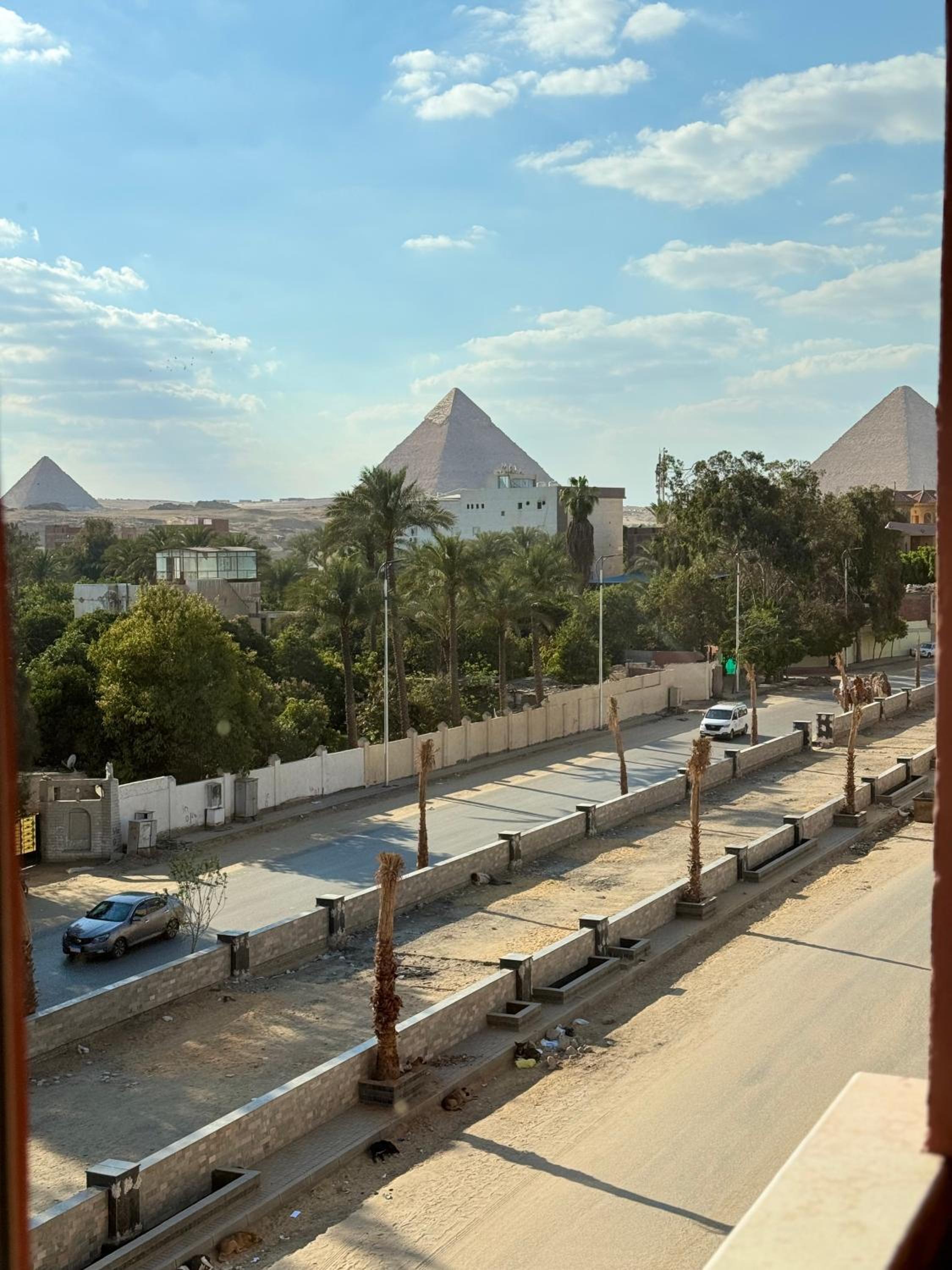 The place is well located and has a partial obstructed pyramid view. It is beautiful from the roof. They really tried to accommodate us and seem to care about their guests