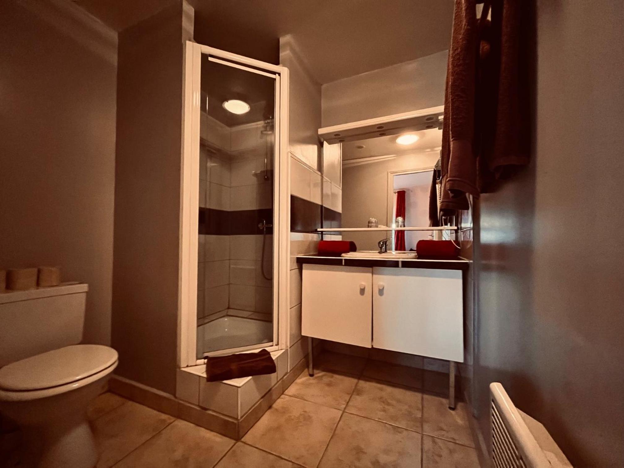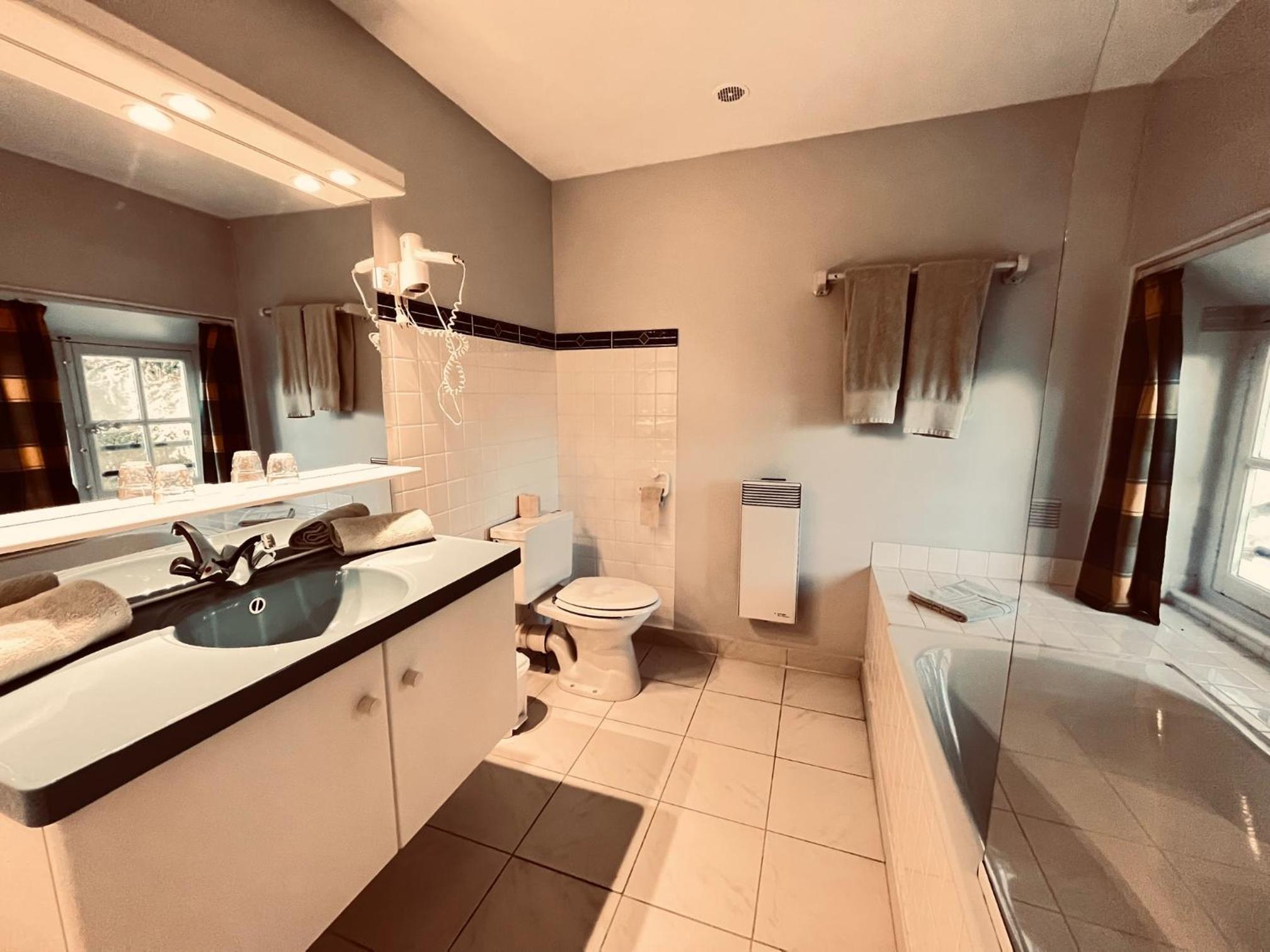 J'ai eu une chambre avec une salle de bain attenante, toutes deux spacieuses, j'ai pu prendre un bain et me détendre après mon travail.