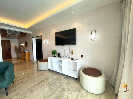Indulge in breathtaking sea views from your own private balcony at Suites Presidencial Boca chica. Enjoy the convenience of free WiFi and parking, along with modern amenities such as air conditioning, flat-screen TV, and a safety deposit box.