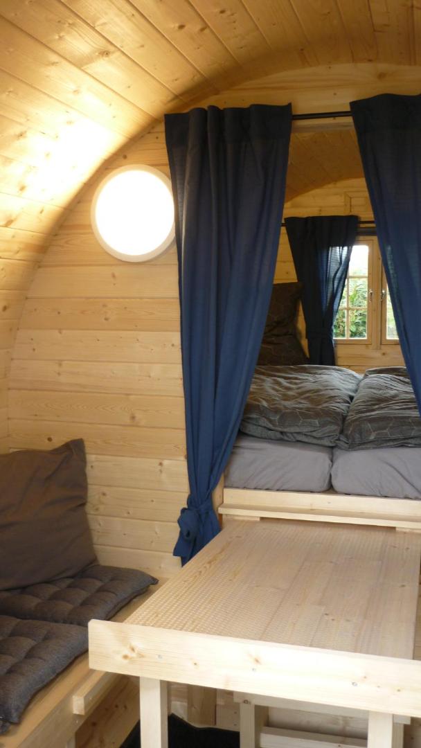 Perfekt beliggenhed i forhold til vores cykeltur langs Kielerkanalen til Brunsbüttel. Interessant at sove i en tønde, fungerede fint i regnvejret (i koldt vejr havde det måske været sværere). Dejligt med kort afstand til byen med indkøbsmulighed og restaurant