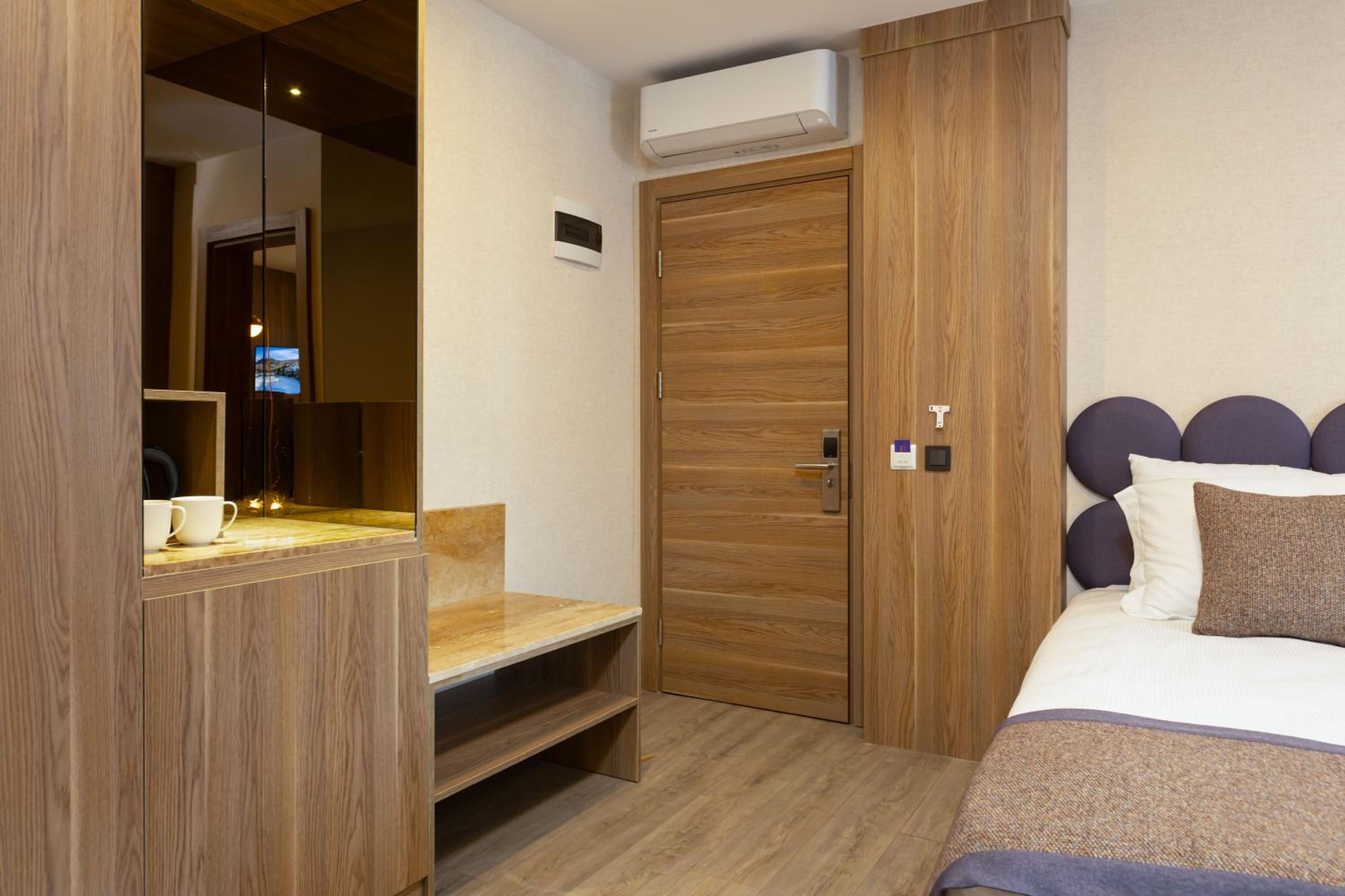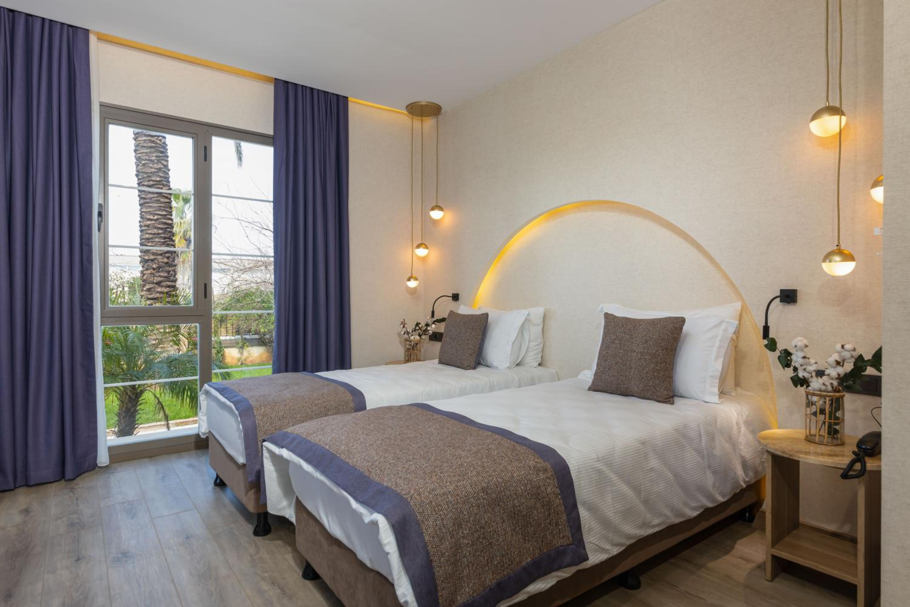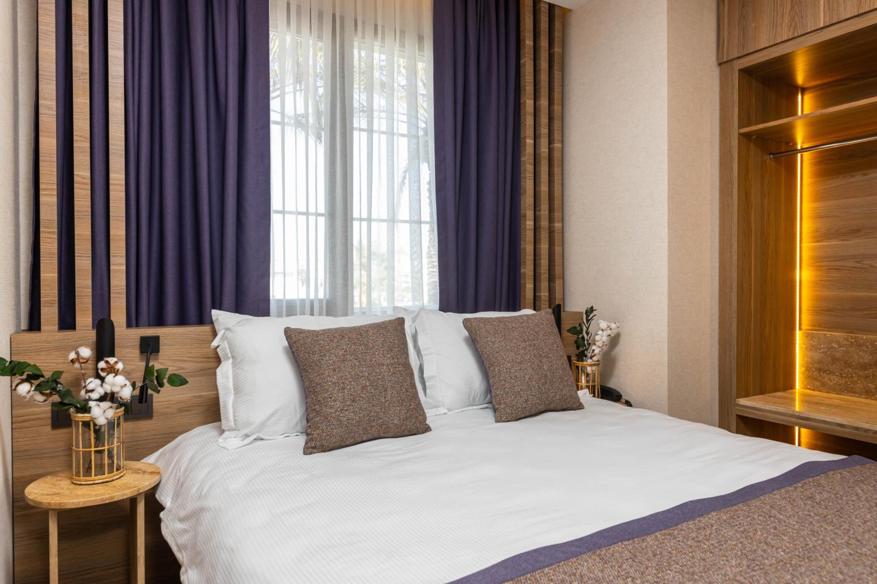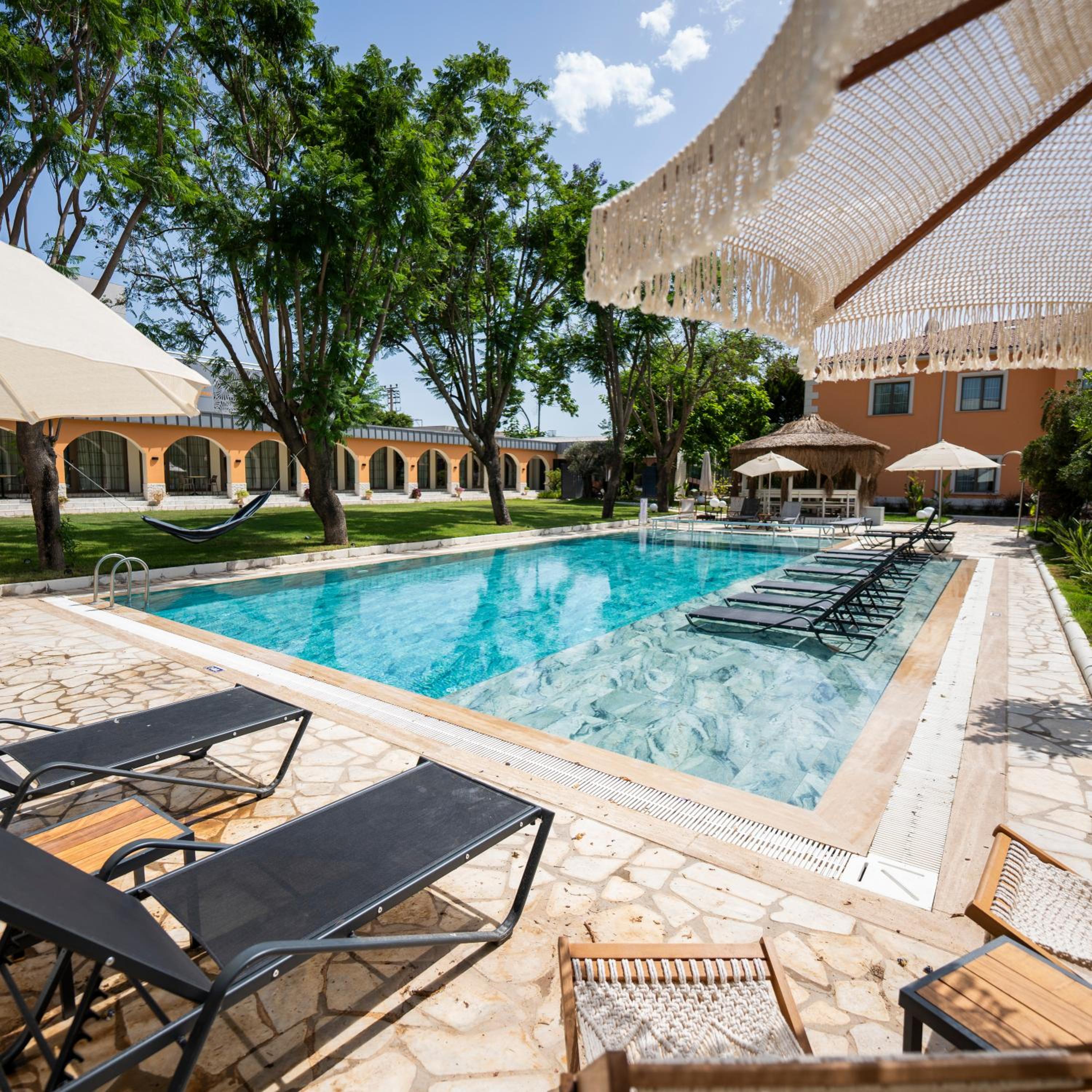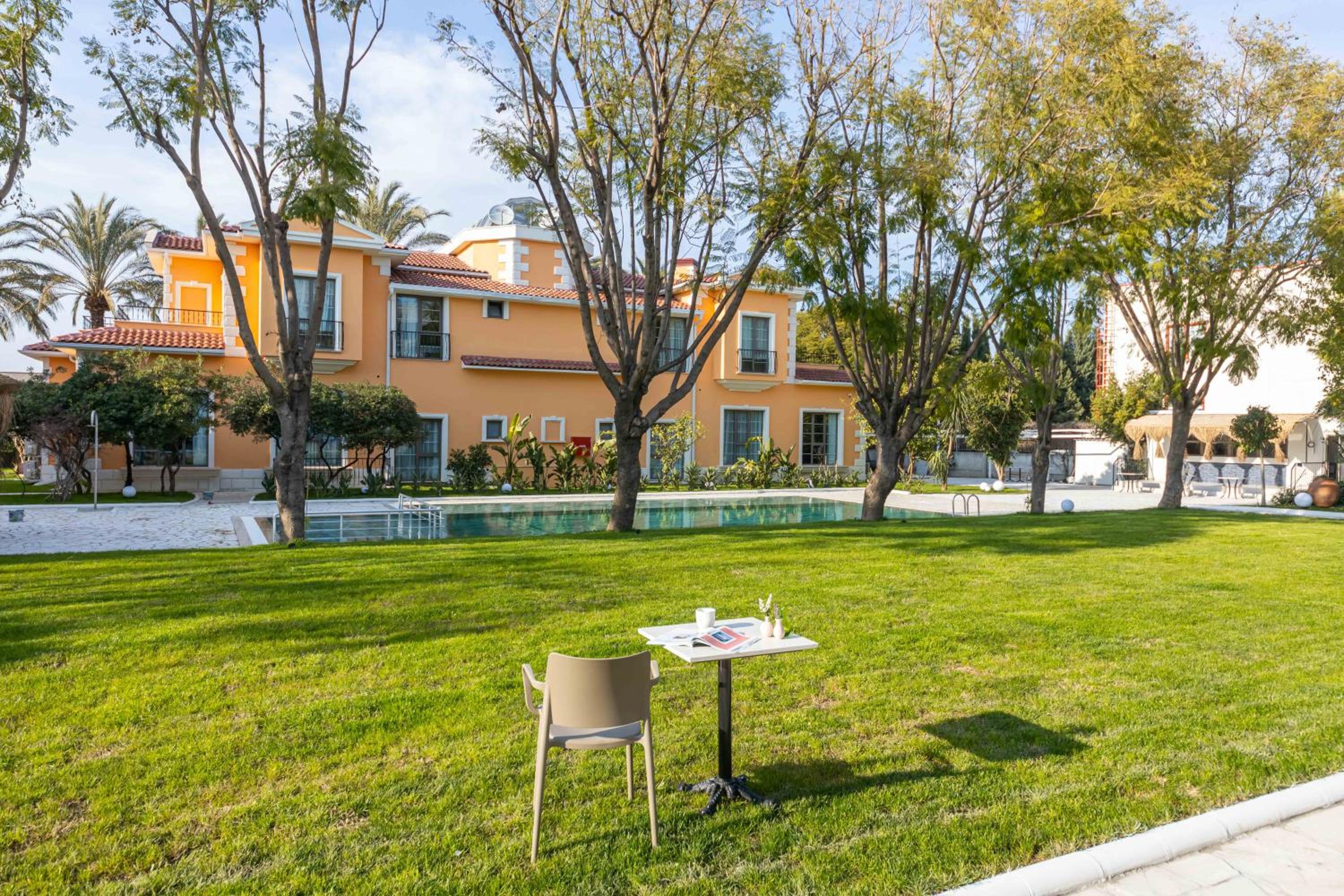 I had a wonderful stay at Ema Houses Hotel. The food was absolutely delicious, and my room opened onto a beautiful garden surrounded by trees and a pool. The bed and pillows were clean and very comfortable. Although the hotel is not directly on the beach, it’s only a 10-minute drive to the beaches. It is also within walking distance of the airport and large shopping malls. This hotel will definitely feel like our home in Antalya.