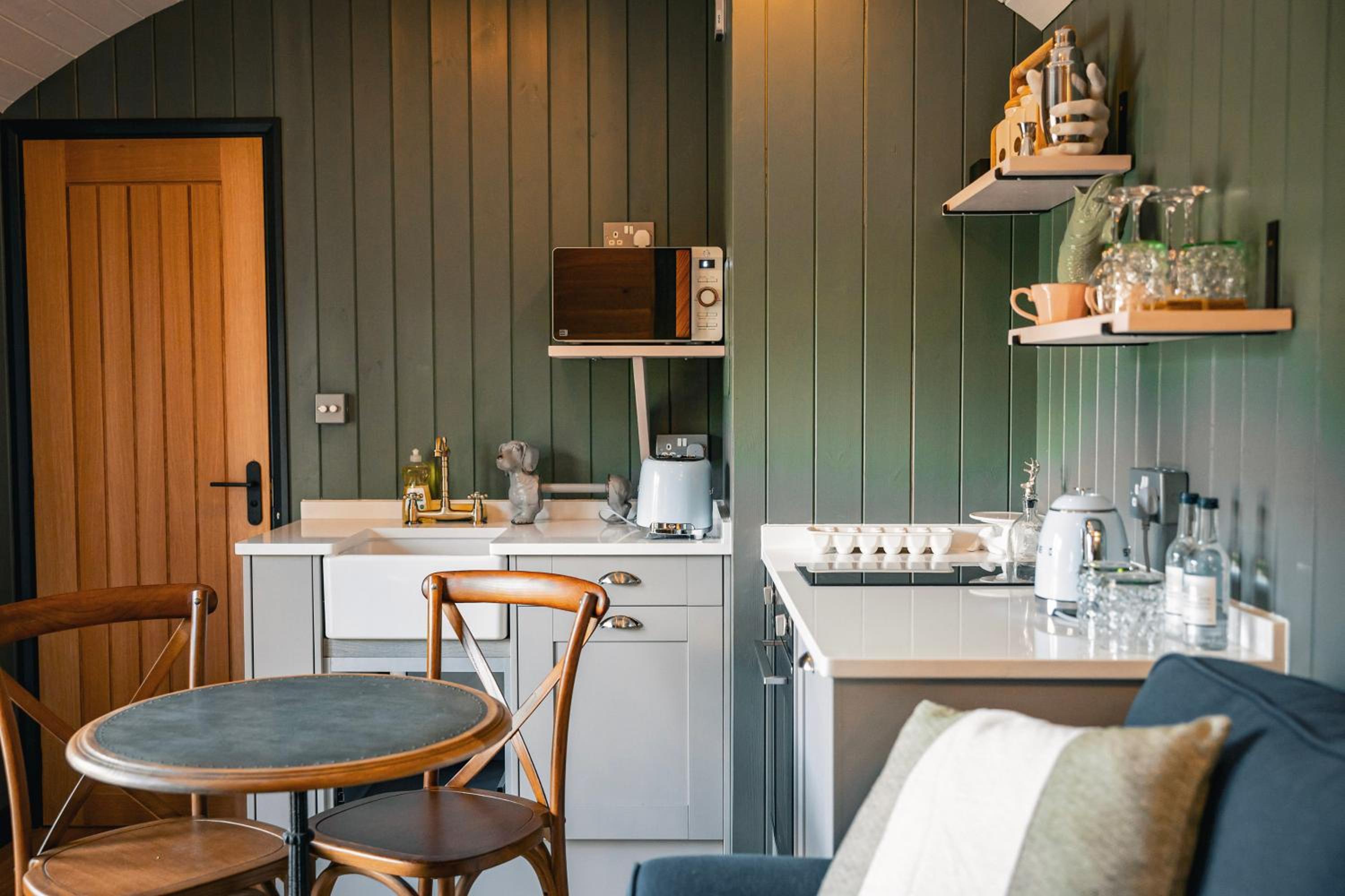 We got the lake hut with alfresco tub, and it was amazing. The room was nice and cozy, the hot tub was ready for us to use, and the view was really nice. The breakfast was really yummy, and we also enjoyed the dinner at the main restaurant. The entire farm is dog friendly, which we really appreciated as we traveled with our dog - a bowl and a bed were ready for her in the hut, and she came to all our meals. We also got roasted marshmallows when we came back from our walk - the little fires and the tiny cafe that serves hot chocolate and mulled wine were very Christmasy.