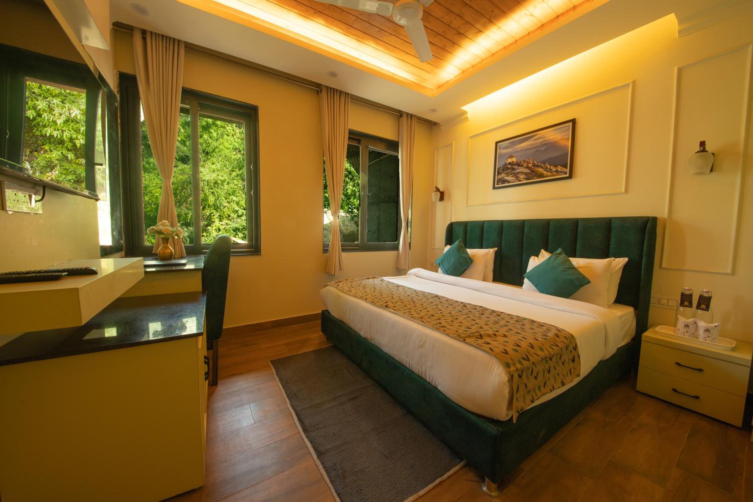 When we were about to reach the car wont go till the hotel. We had to park far away from hotel and it was not mentioned anywhere on there website! We were been charged 400 rupees per night extra for heater when we reached there! This is something basic every hotel should have. We have already paid 4800 for 2 nights and still had to pay 400 for each night extra for a basic facility like heater! There was no AC or heater in the room. The room was so dirty that we cannot even walk bare foot on the floor. Even after cleaning multiple times it was the same. THERE IS NO VIEW AS SHOWN IN THE PICTURES be careful this is a big SCAM