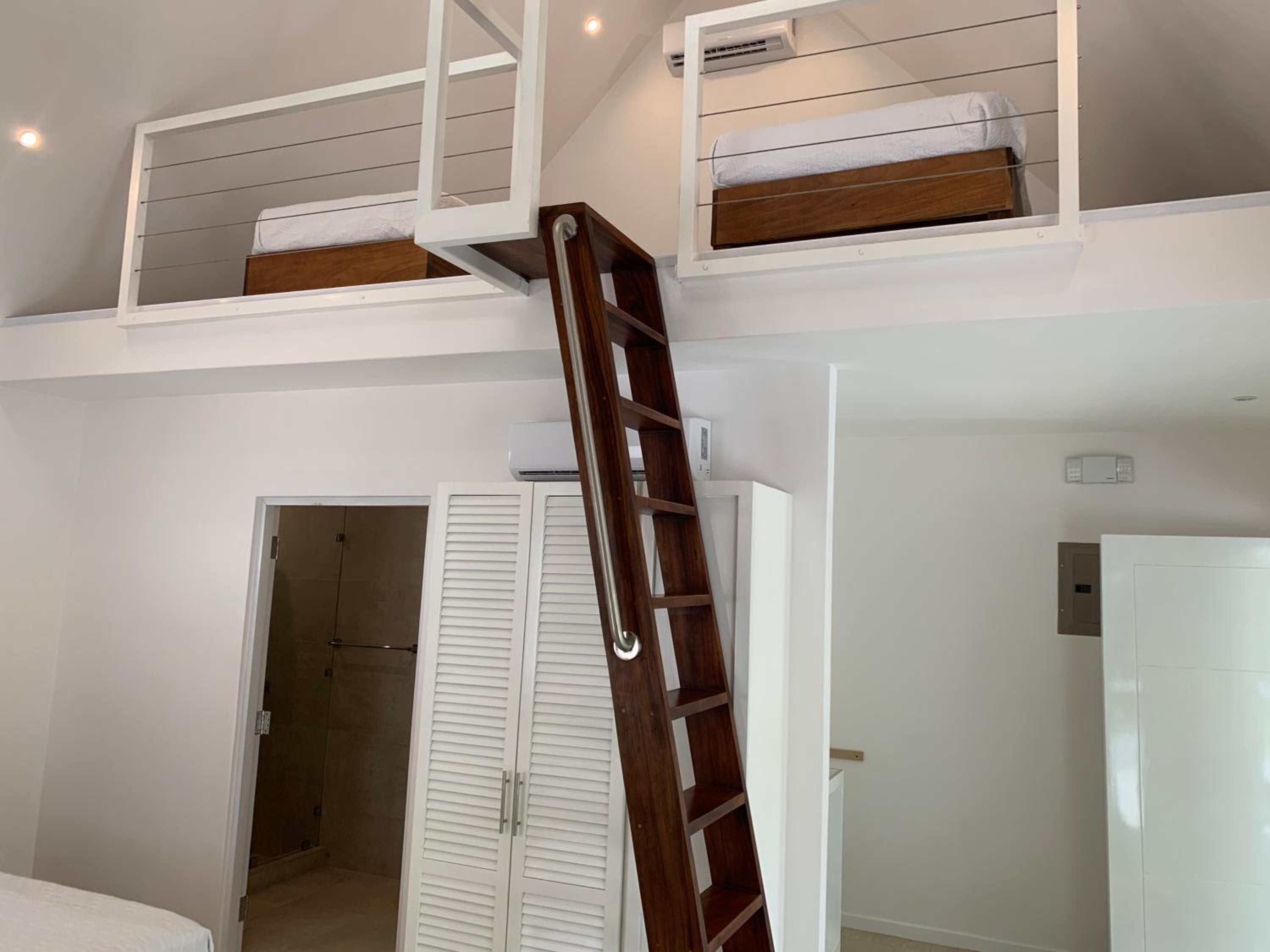 La grandisima altura de las 2 camas de .mis hijos. Muy difícil el acceso