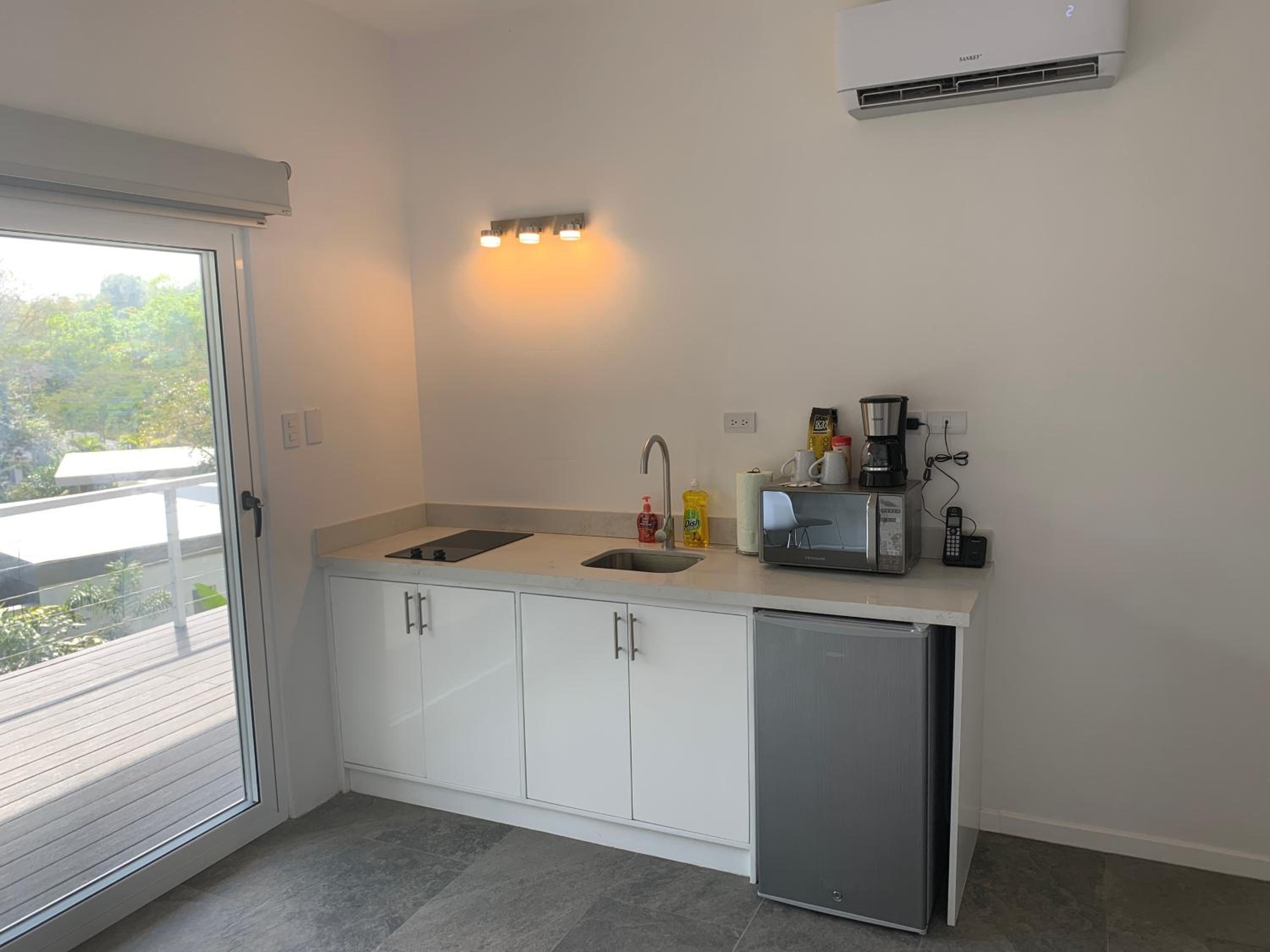 Las piscinas muy bien, el entorno con plantas casi en la selva, el árbol gigante al medio, la casita, la limpieza y la comida del restaurante. El personal muy atento. Está bien tener una pequeña cocina y refrigerador.