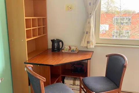 The room was exactly as advertised: renovated, cozy, and comfortable. I particularly appreciated the thoughtful amenities, a refrigerator, microwave, and kettle, plus a handy workspace and dining table that made my stay both functional and relaxing.