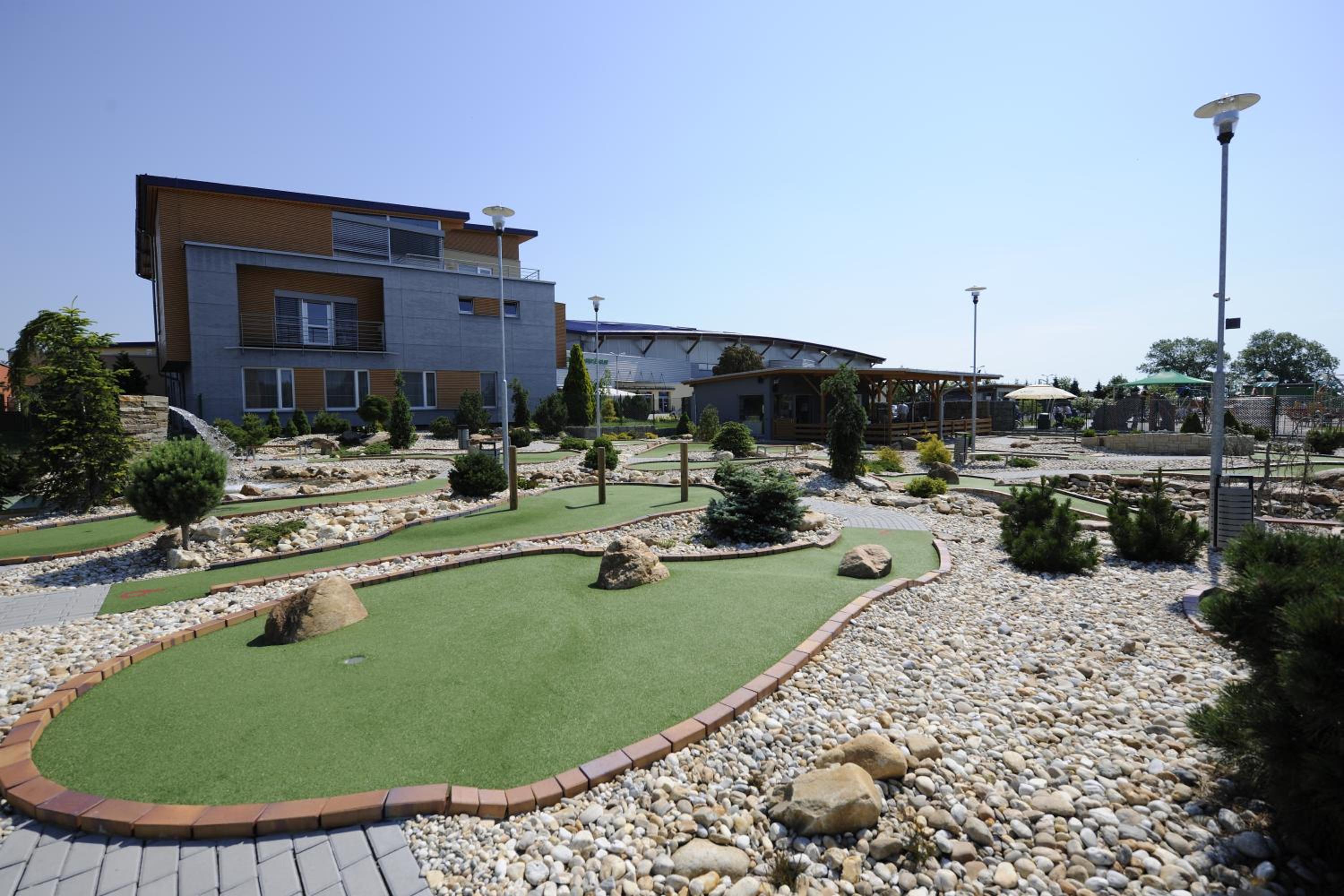 With a restaurant, bar, wine cellar, and various sports facilities on-site, guests at Buly Aréna have plenty of entertainment options to choose from. Whether it's a relaxing drink at the bar or a fun game of mini golf, there's something for everyone.