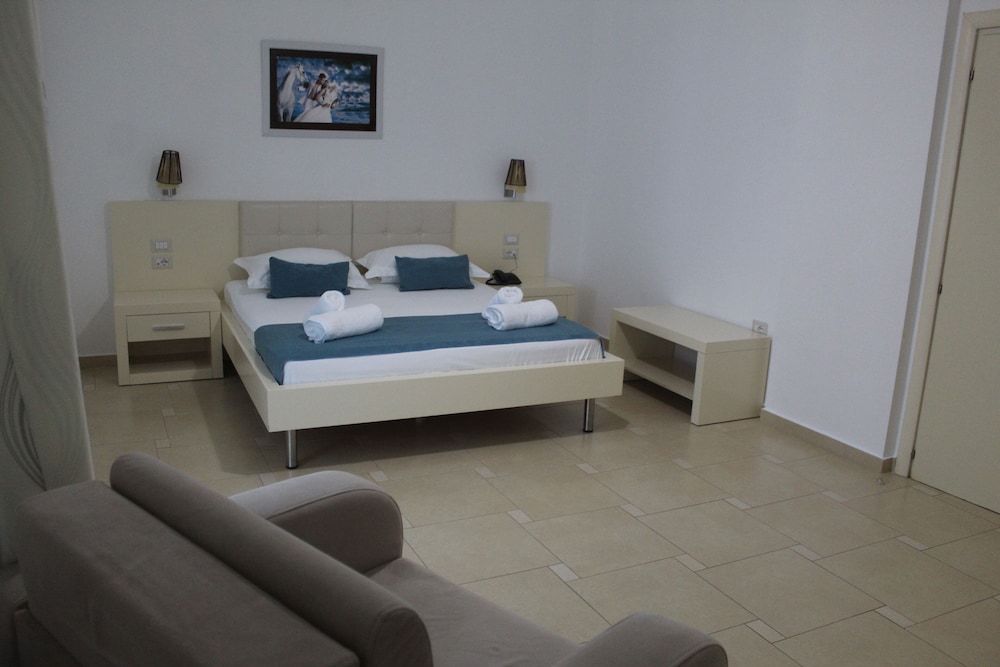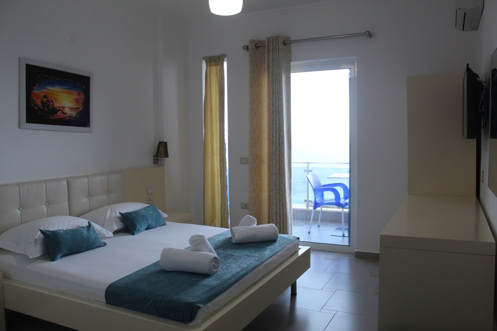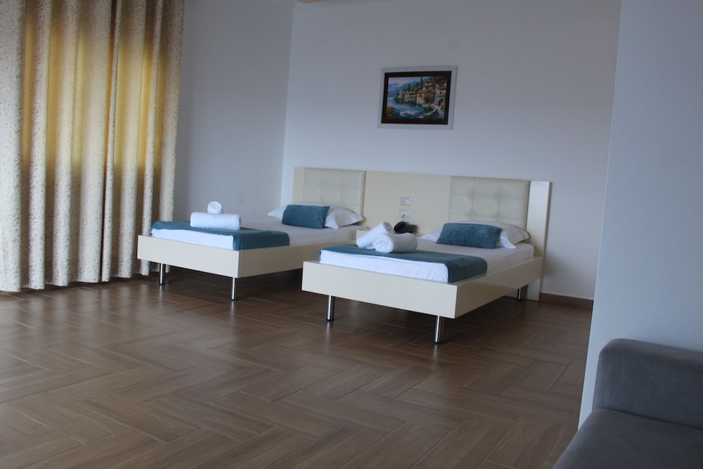 Sono veramente gentili e l'hotel è bello, moderno e pulitissimo. Si trova di fronte al mare (a 3 km di distanza si vede chiaramente l'isola di Corfù). L'assistenza per quanto riguarda le domande sui luoghi e i trasferimenti è stata assidua e costante. Mi hanno persino prestato una guida del Paese. L'ultimo giorno mi hanno chiesto se volevo qualcosa da portar via per il viaggio di 4 ore verso Tirana!! La colazione è abbondante e spesso ci si trovano specialità dolciarie tipiche dell'Albania.
