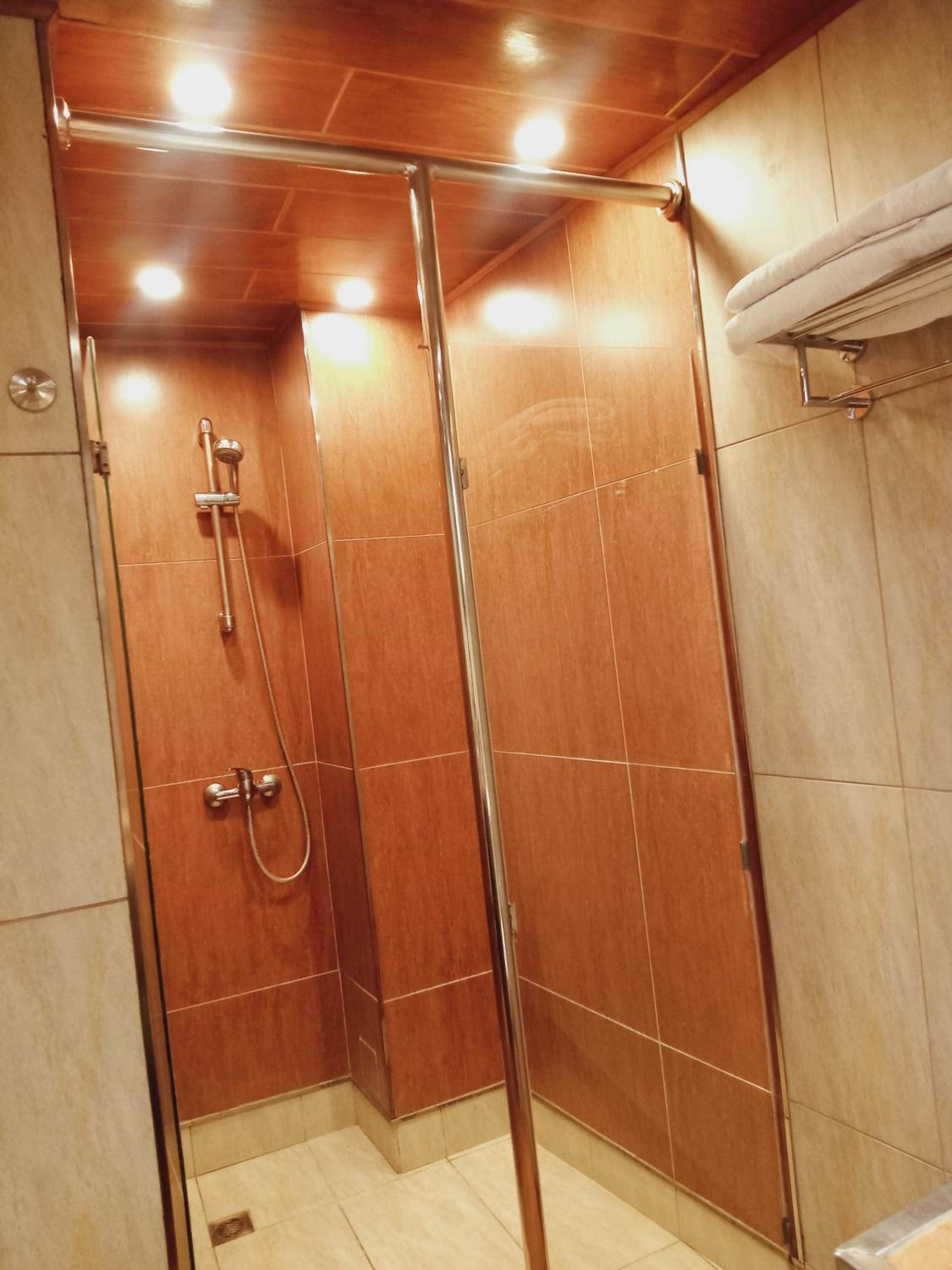 Shower door dont lock. No phone access to contact crews if i need something. Had to go all the way down stairs from 3rd floor.
