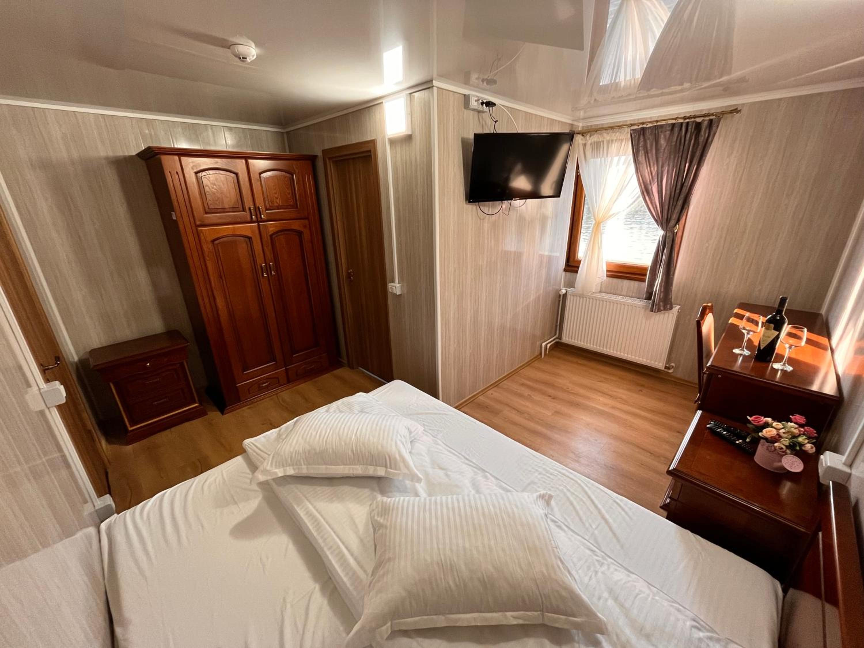 Locația este foarte faina si experienta si mai frumoasă. Terasa foarte privitoare, spațiul pentru relaxarea la soare e binevenit, camera curata, personalul drăguț, mâncarea bună. Vom recomanda locația si poate vom mai reveni. Mulțumim!