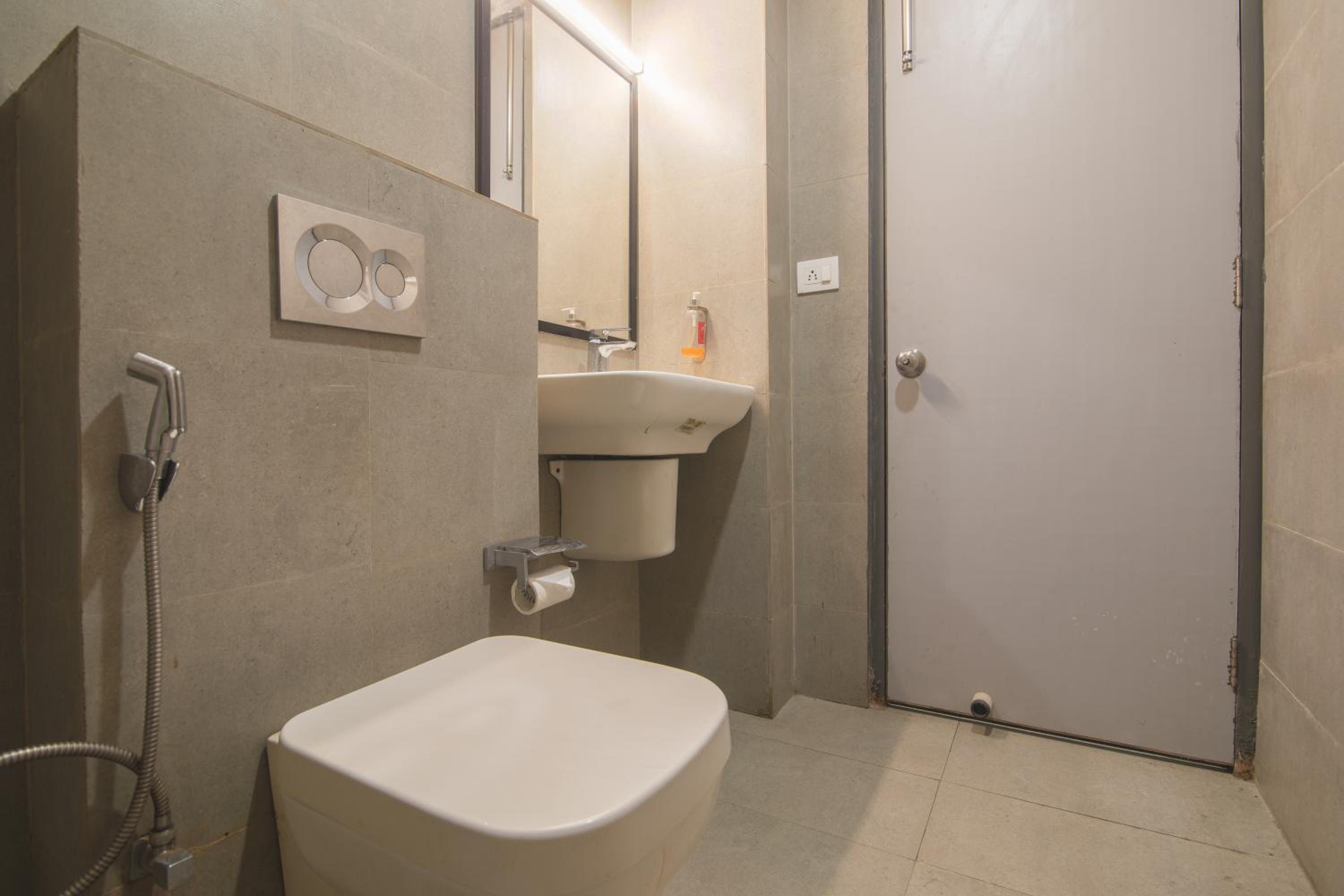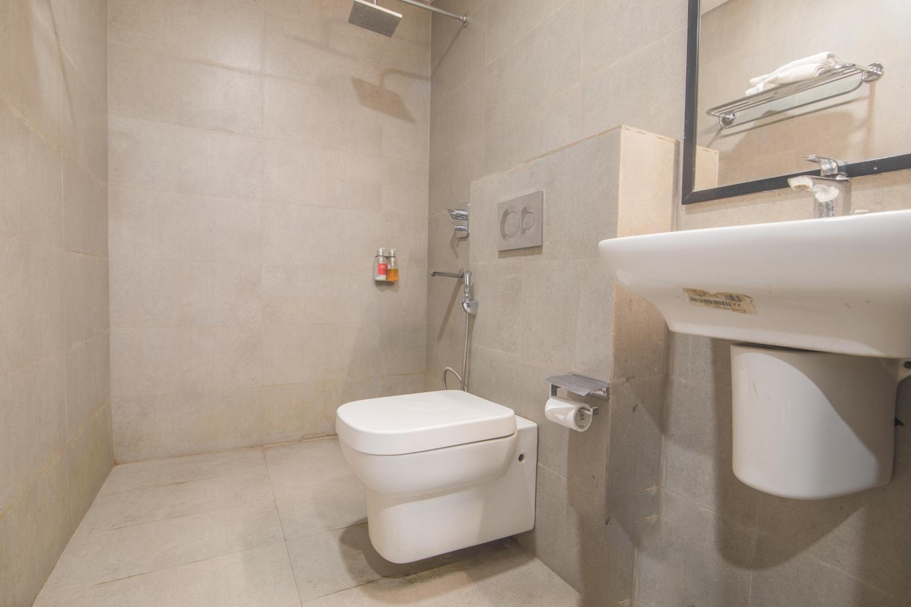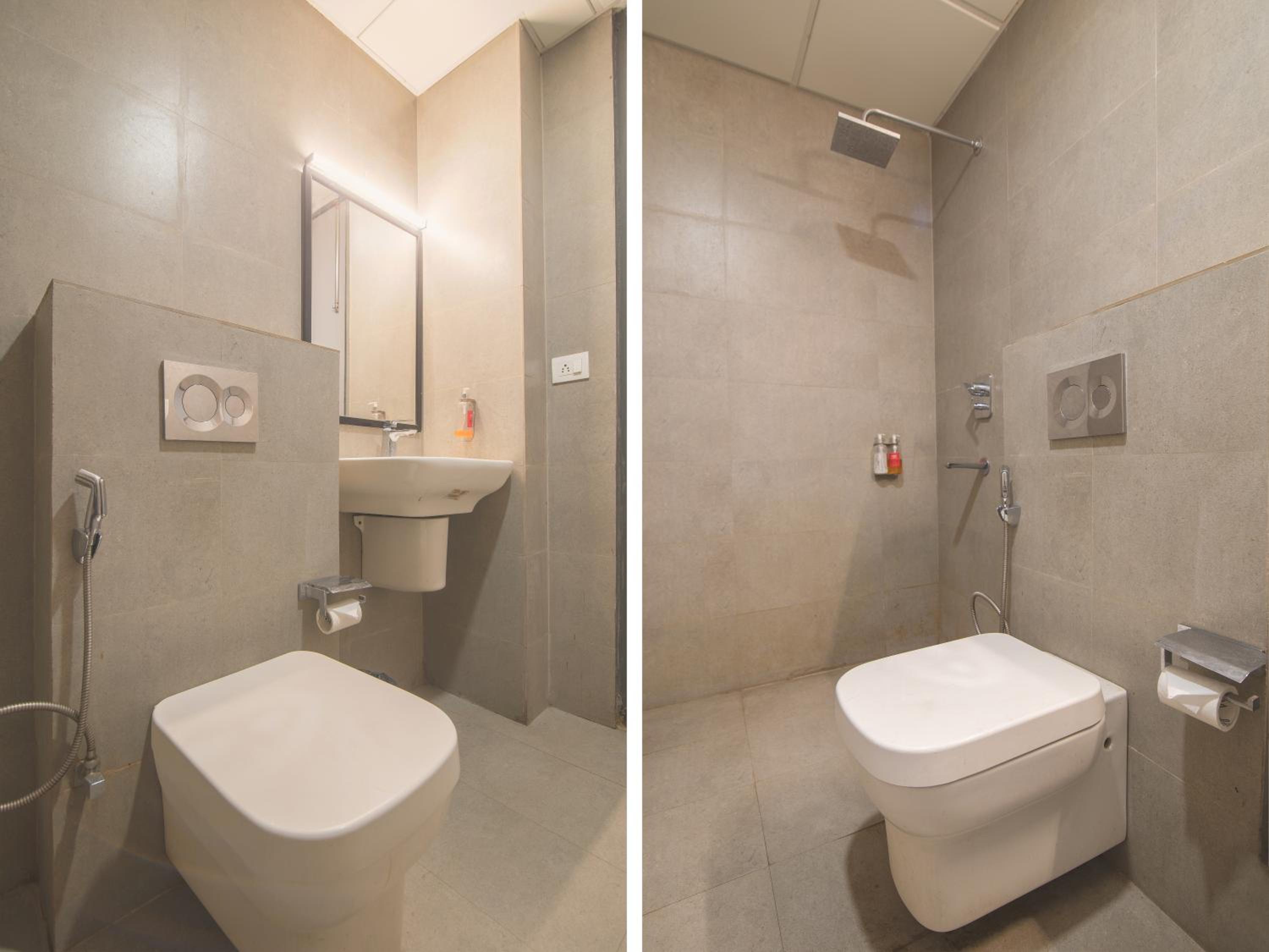 Toilet was poor with substantial leakage spread inside the bathroom floor.