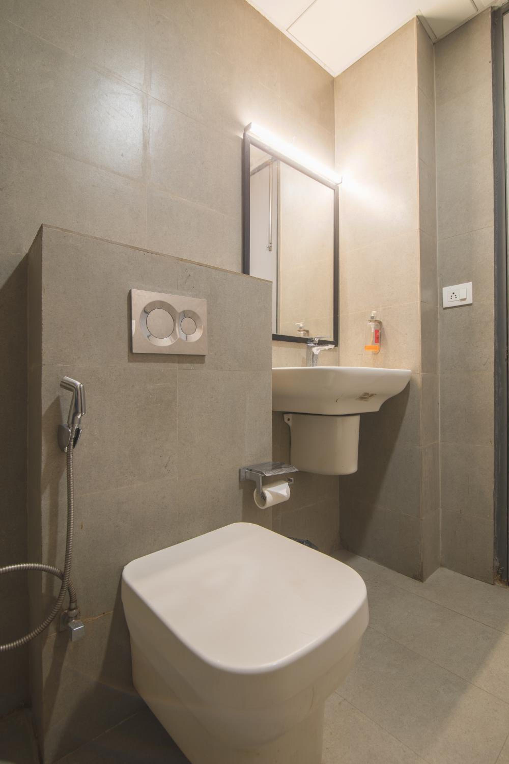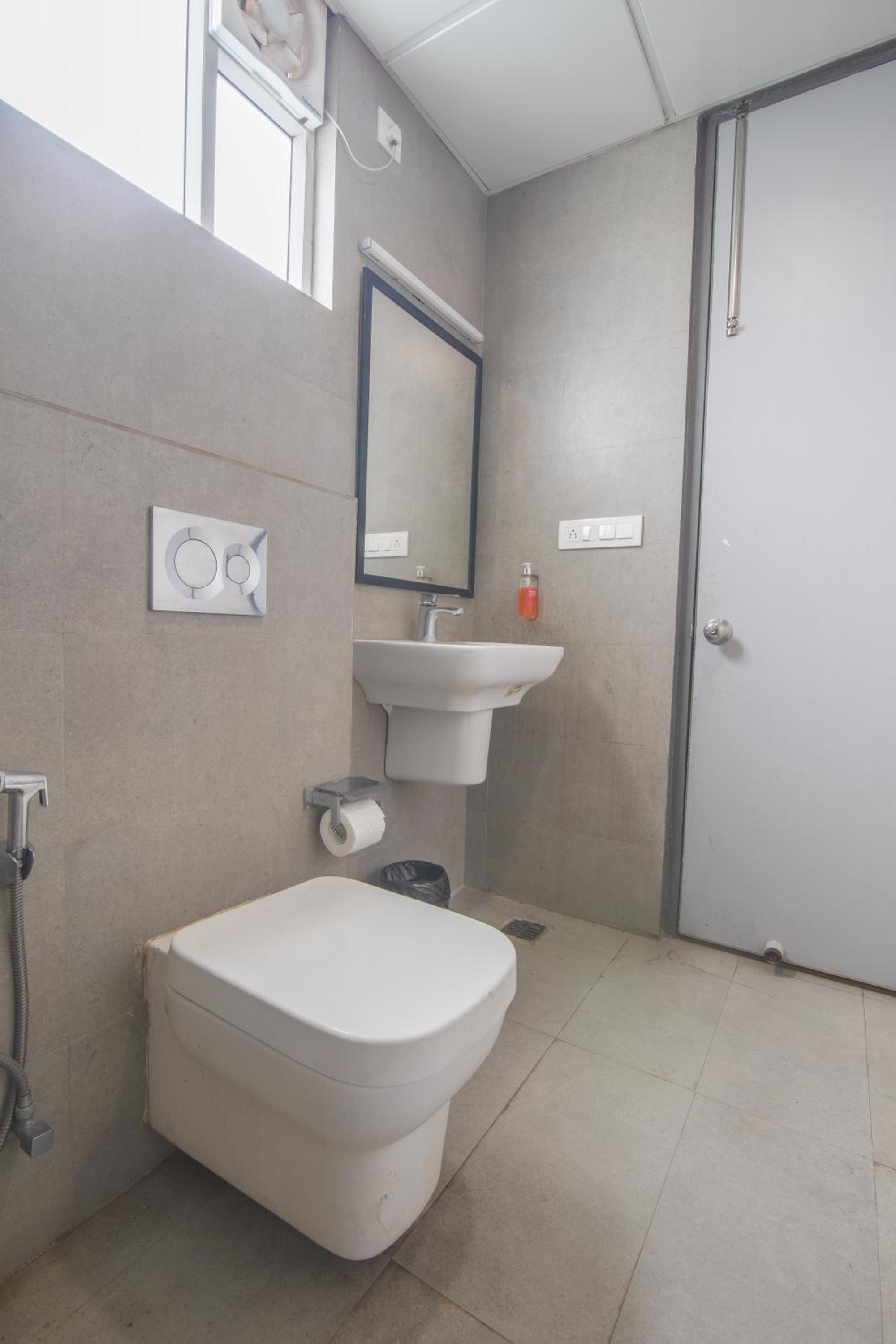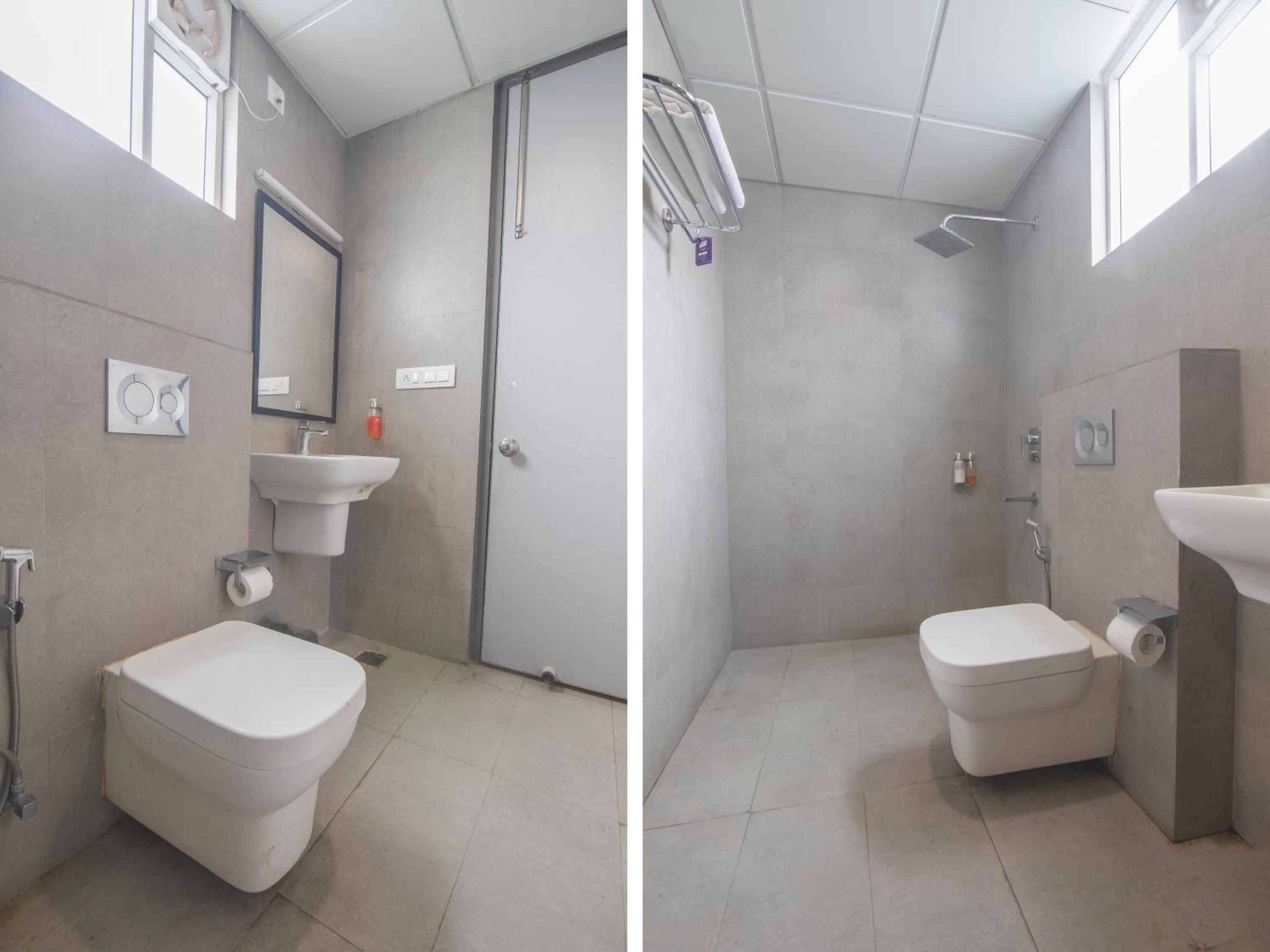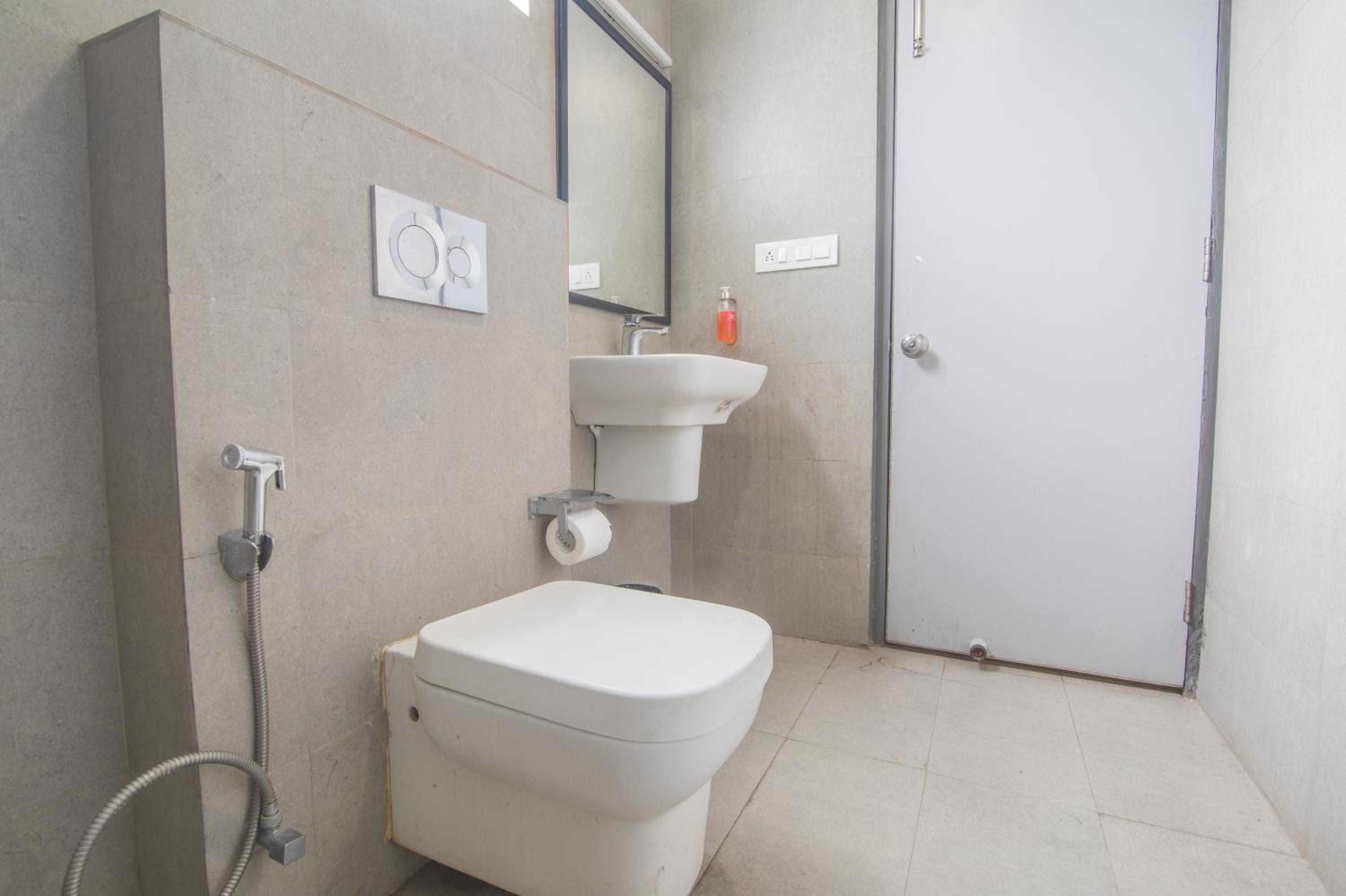 Toilet was poor with substantial leakage spread inside the bathroom floor.