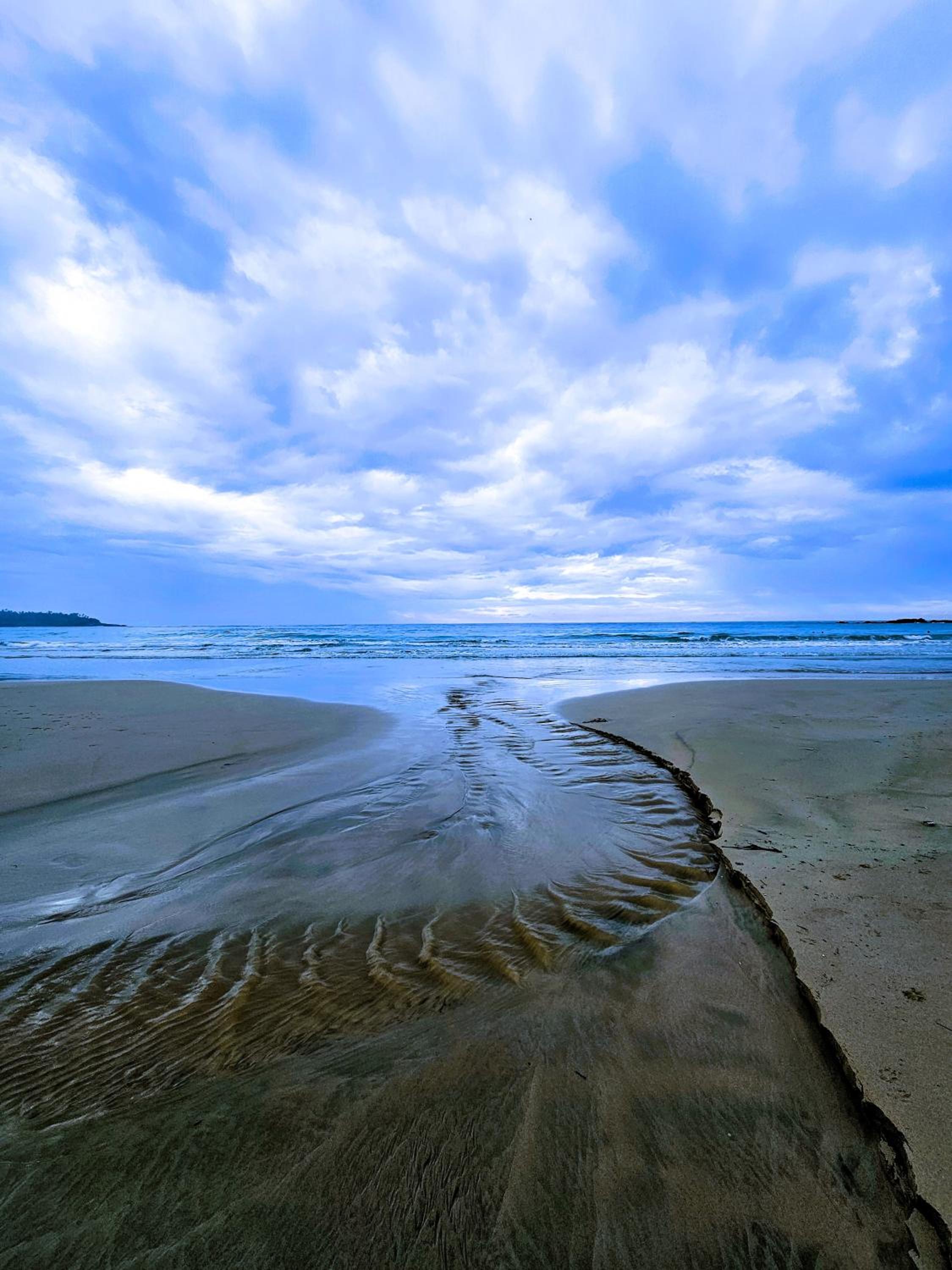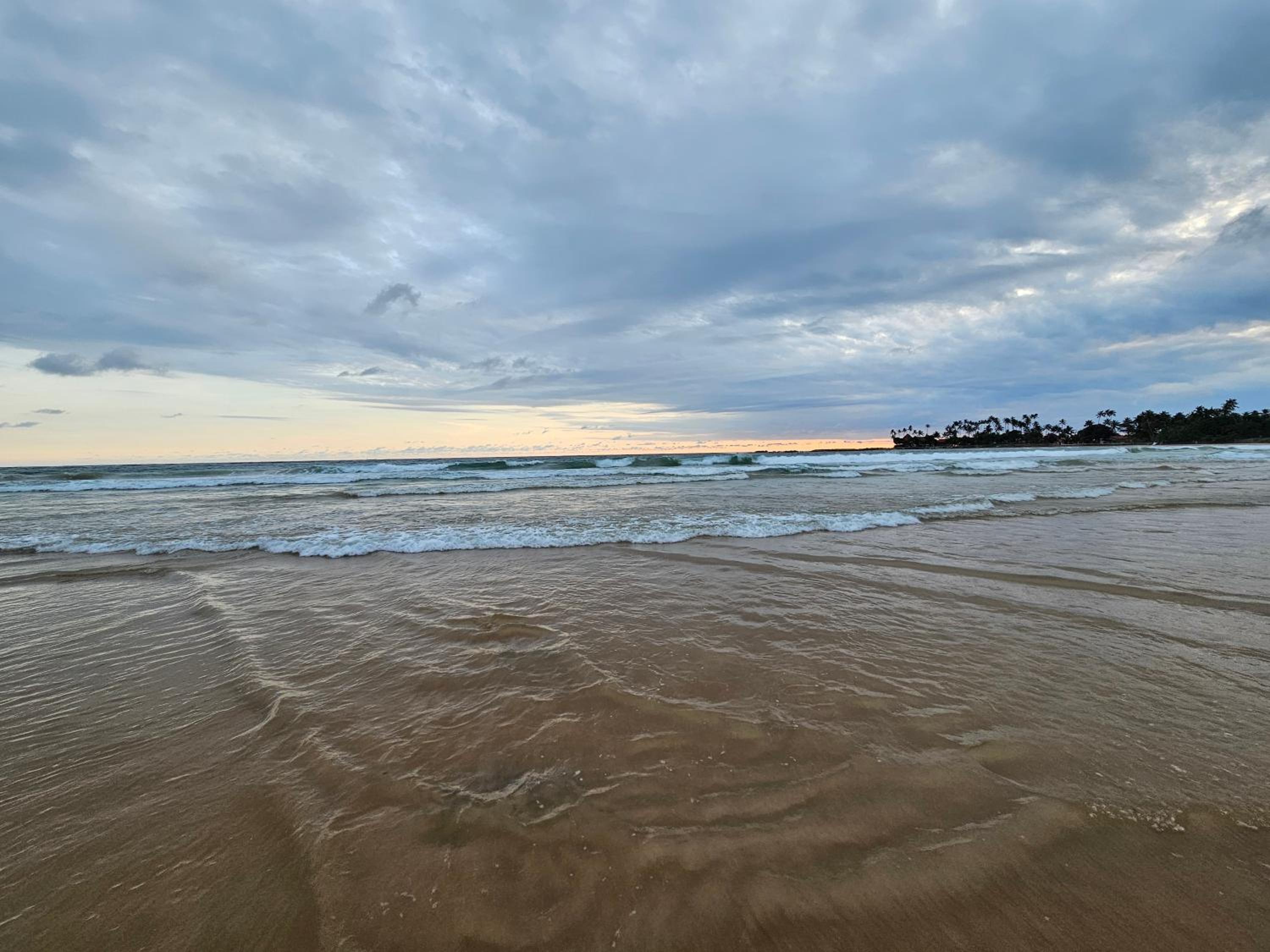 Rechtsseitig und frontal sauberer Strand.