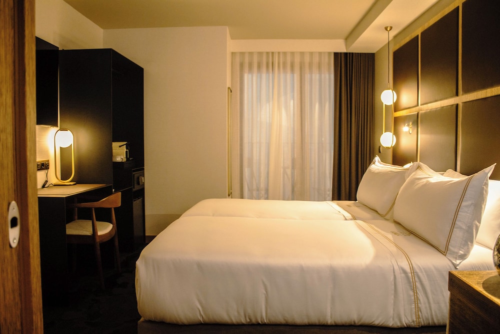 One of the most beautiful hotels I've ever walked into, the lobby and bar area was gorgeous and a great place for a nightcap as the day winds down. We were greeted by the staff upon check-in, and they were so friendly and took the time to show us the spots to hit around Bilbao. From there, each experience we had with the staff was splendid, helpful in reserving a taxi for an early morning flight, getting us wine at the bar, etc. Easily the most helpful and friendly staff I've experienced at a hotel in years. The rooms were not huge, but had a nice couch area beside the bed. Sink was outside of the bathroom and the bathroom was tight but not too small. If you are looking to explore old town, this is a perfect place to stay, we can't wait to stay here again in the future.