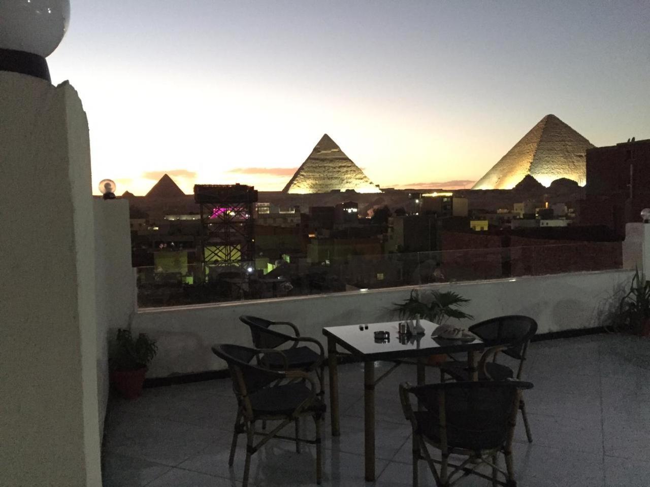 Petit-déjeuner copieux et varié sur la terrasse de l'hôtel avec une vue sur les pyramides de Gizeh. Il faut préciser qu'Amr, propriétaire sympathique, à l'écoute et prévenant, a répondu à toutes nos attentes (transport de l'aéroport gratuit malgré l'heure très tardive avec un thé d'accueil de bienvenue, à notre demande : menus égyptiens différents et excellents chaque soir, propositions de programmes, aide aux déplacements dans Le Caire..). Il est à noter que l'hôtel, étant à l'écart de la rue principale, est parfaitement calme. Nous sommes arrivés en clients et repartis en amis, nous y reviendrons avec plaisir.