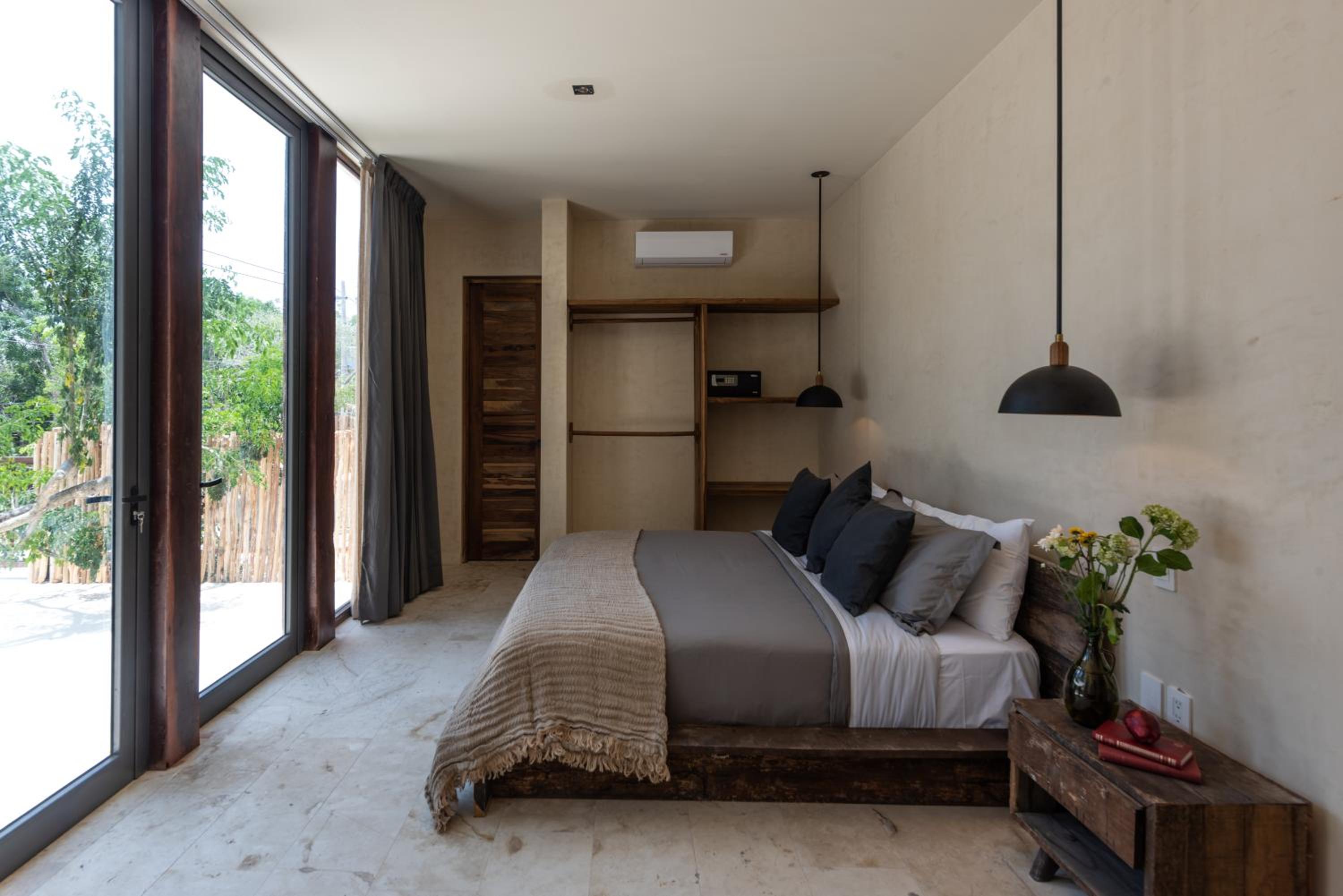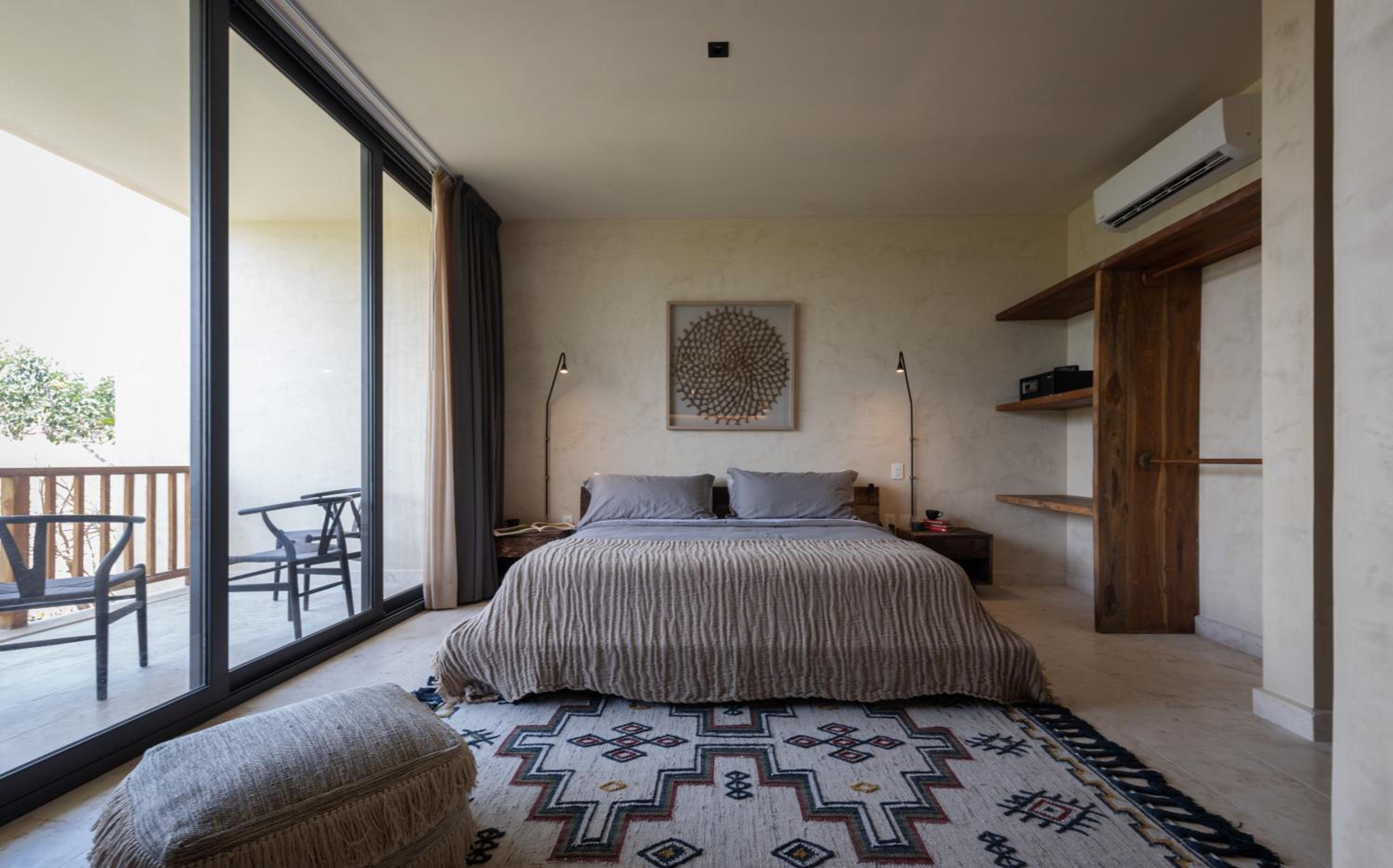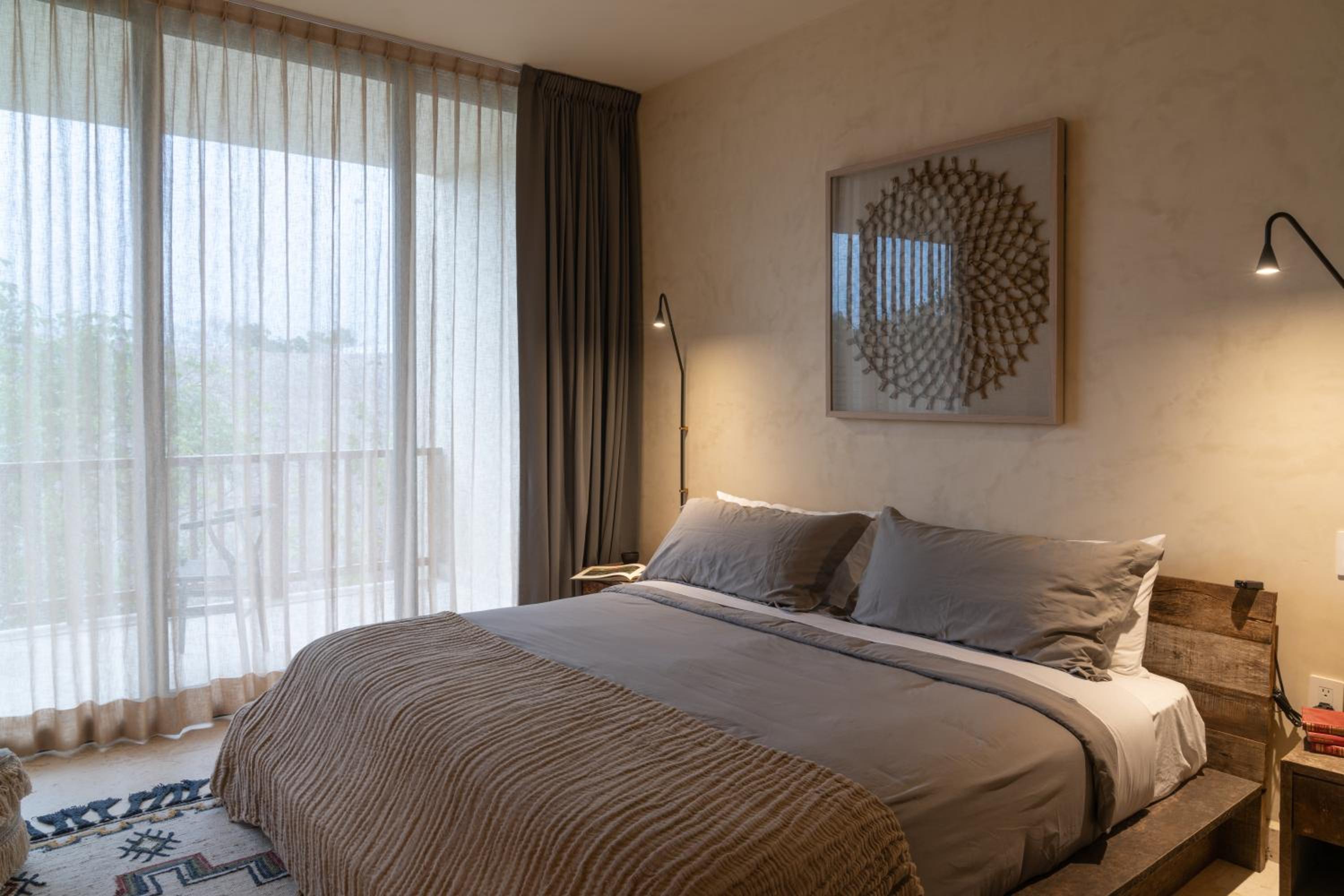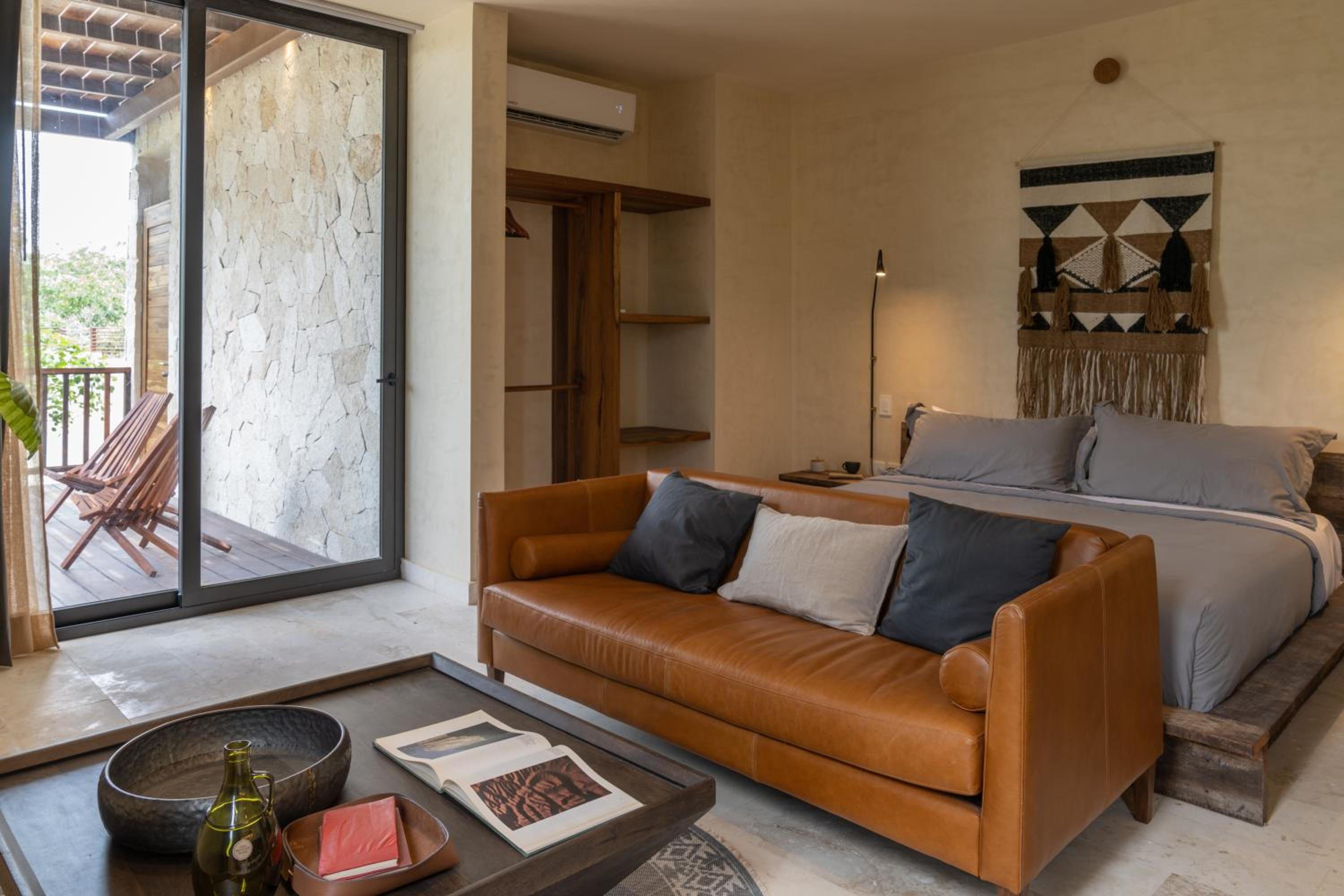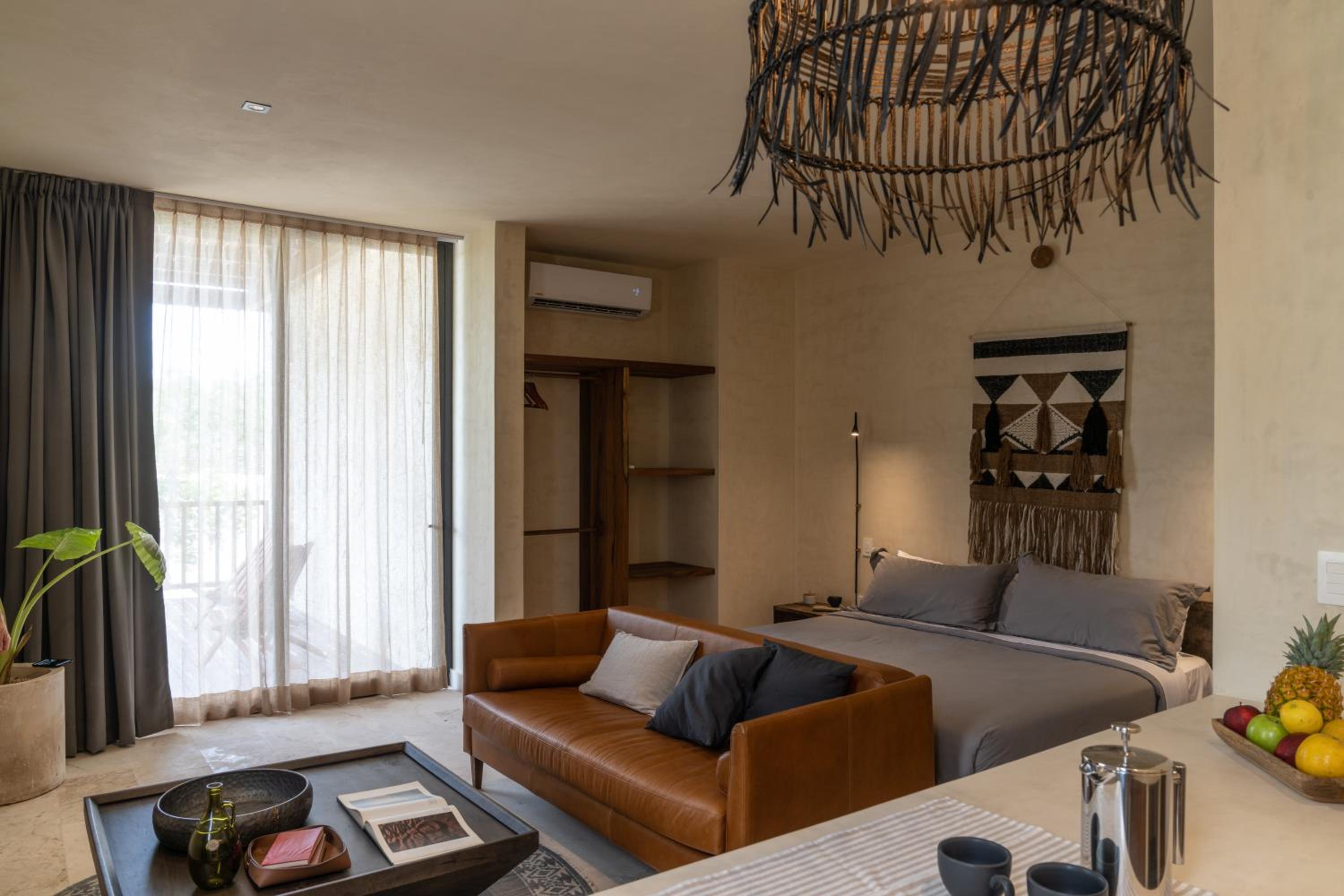Unho Tulum, a 4-star hotel in Tulum, offers air-conditioned rooms with modern amenities like a coffee machine, fridge, and flat-screen TV. Some rooms even feature a balcony for stunning views.