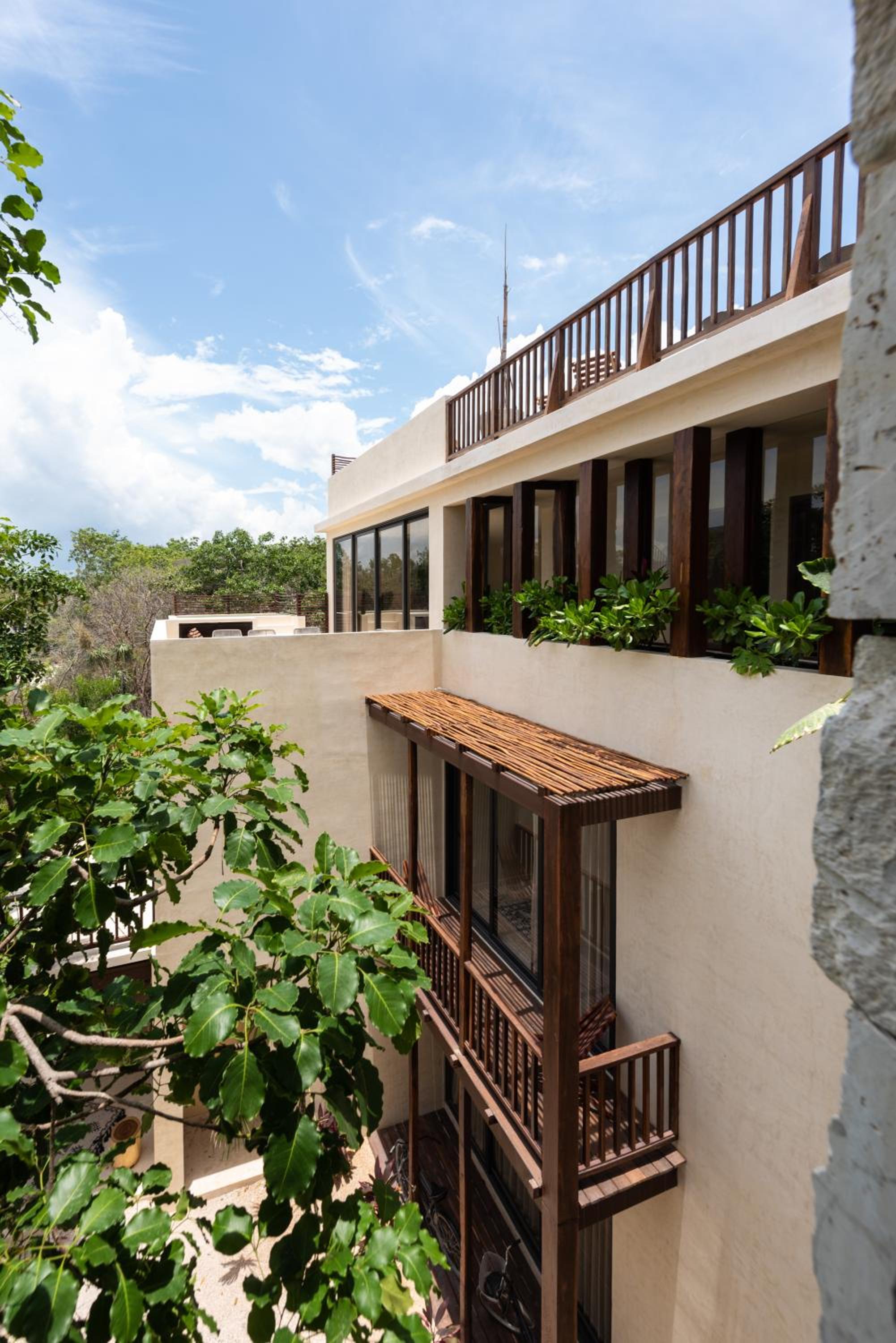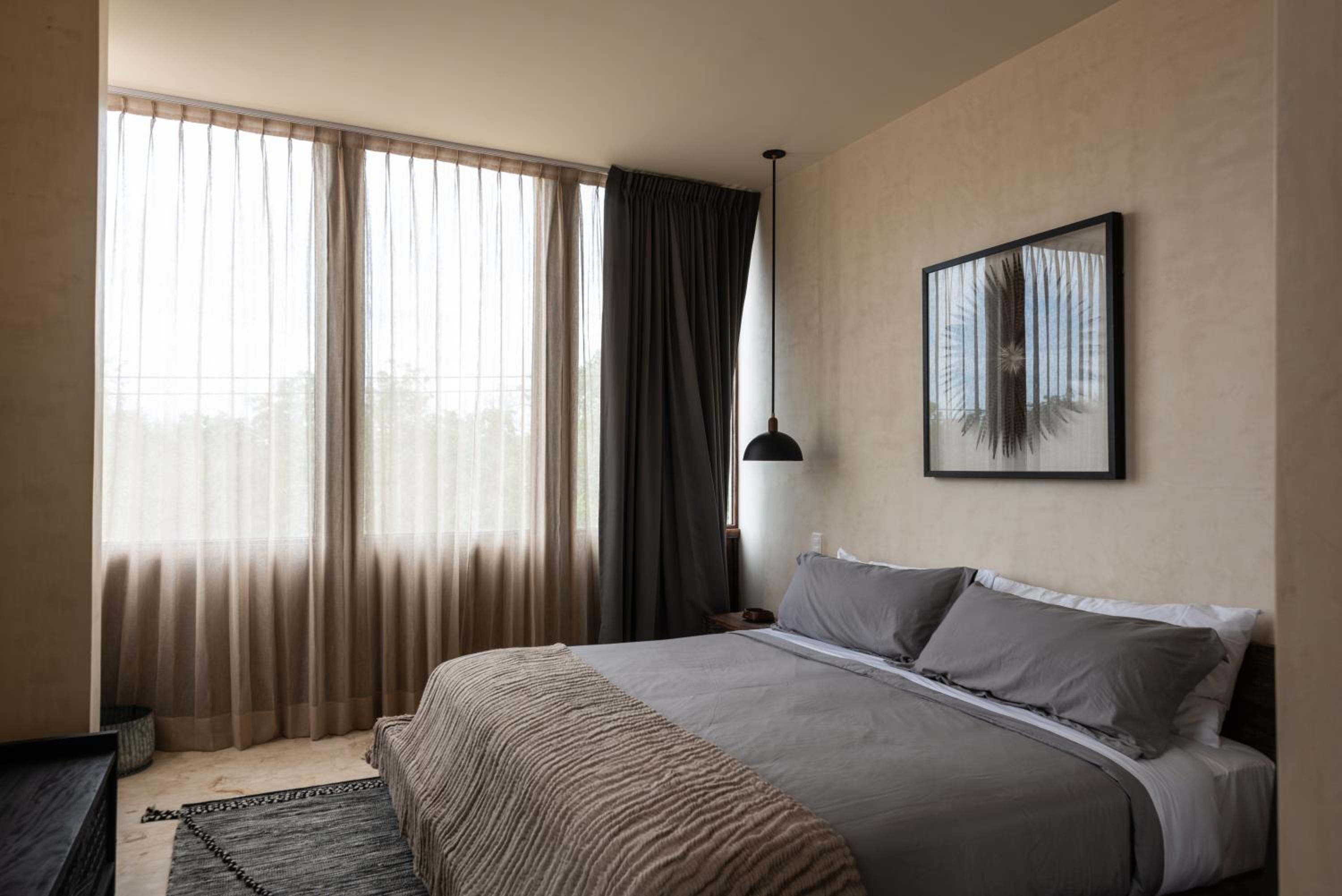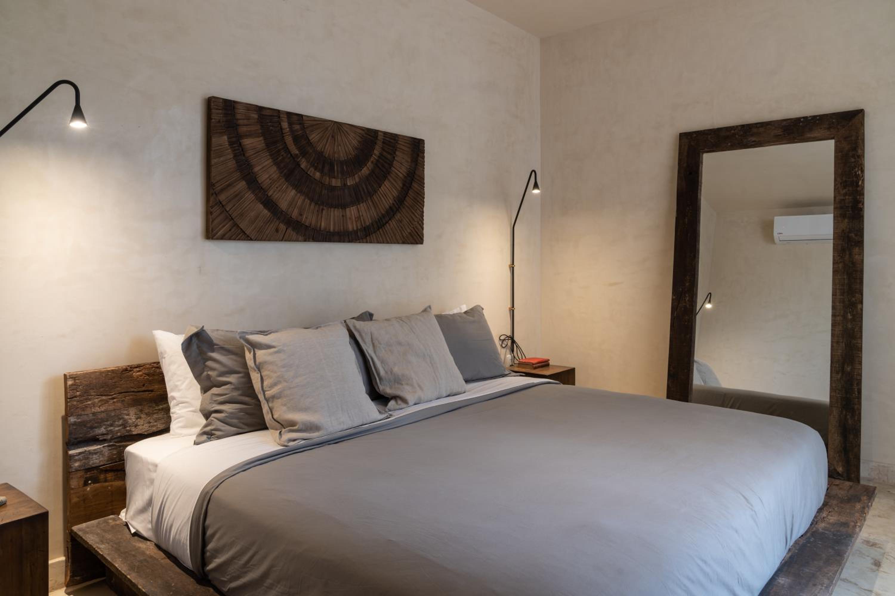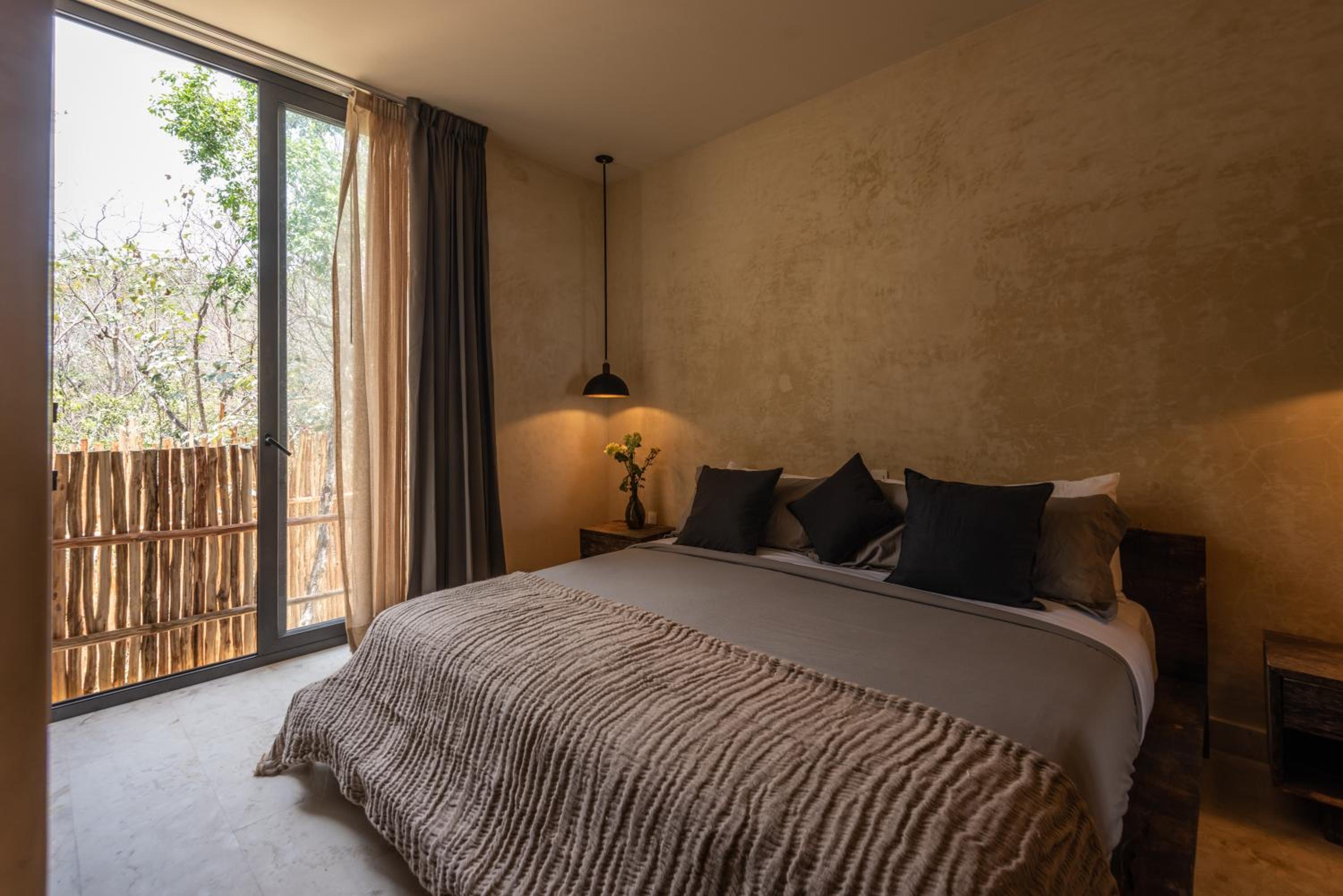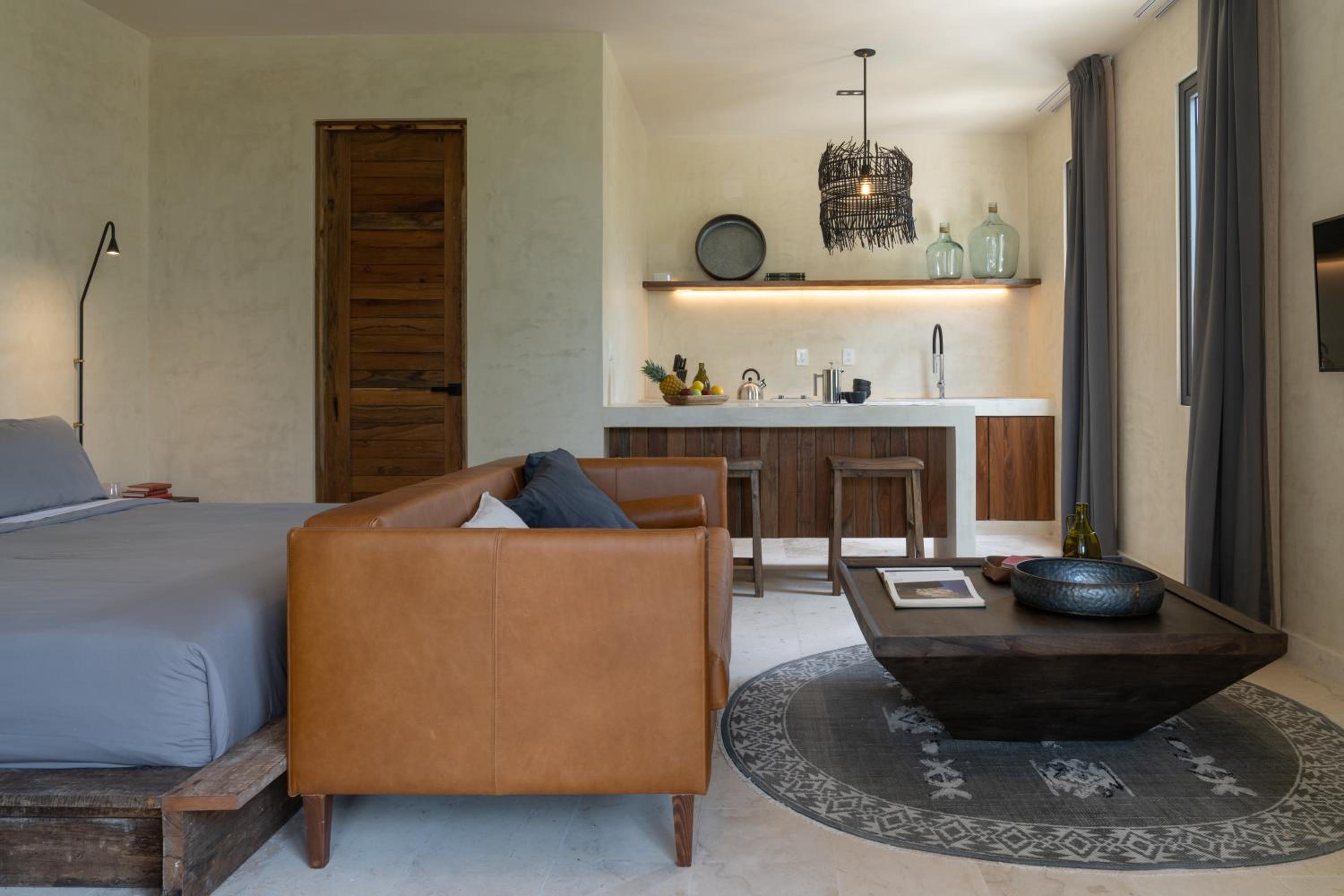 Unho Tulum, a 4-star hotel in Tulum, offers air-conditioned rooms with modern amenities like a coffee machine, fridge, and flat-screen TV. Some rooms even feature a balcony for stunning views.