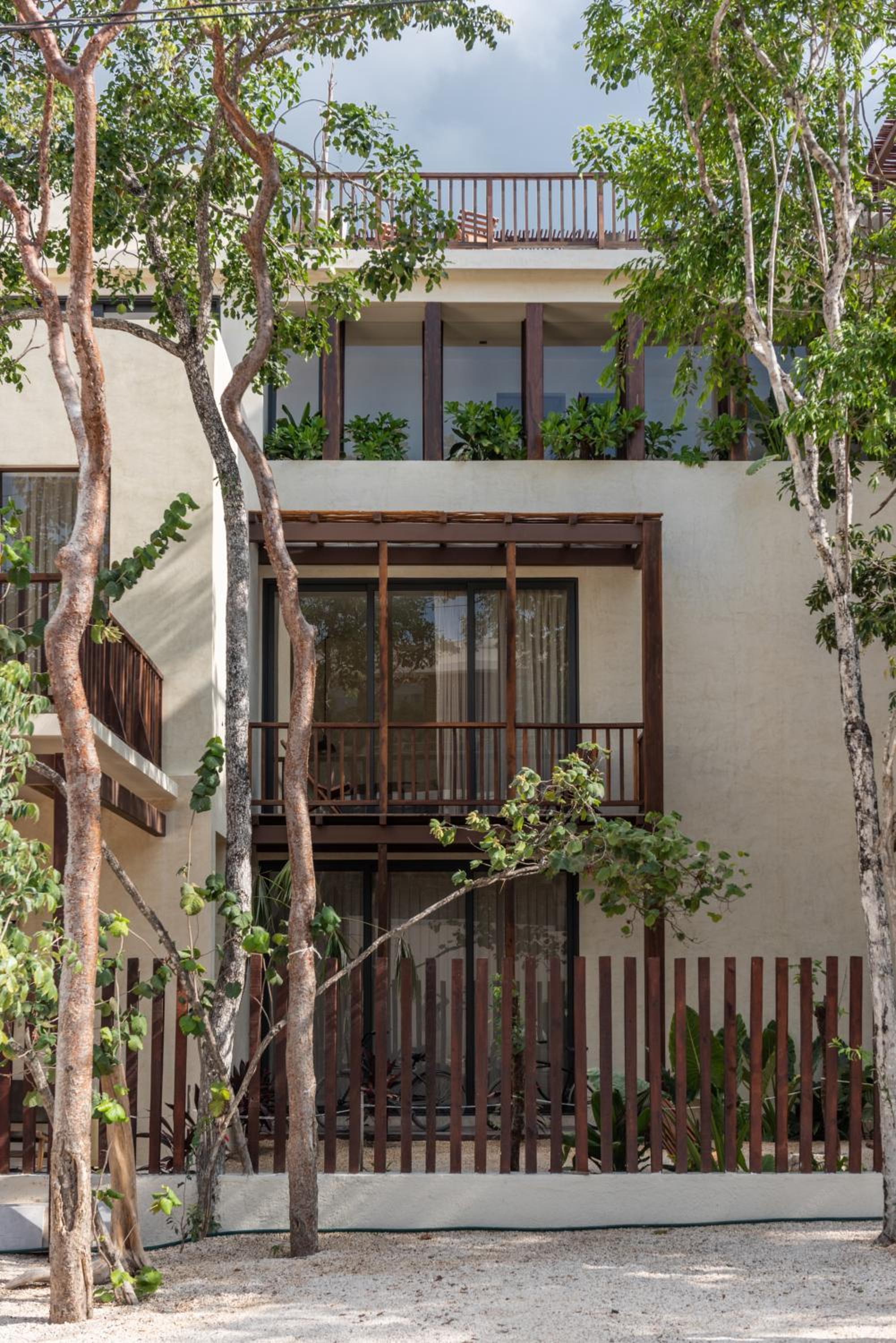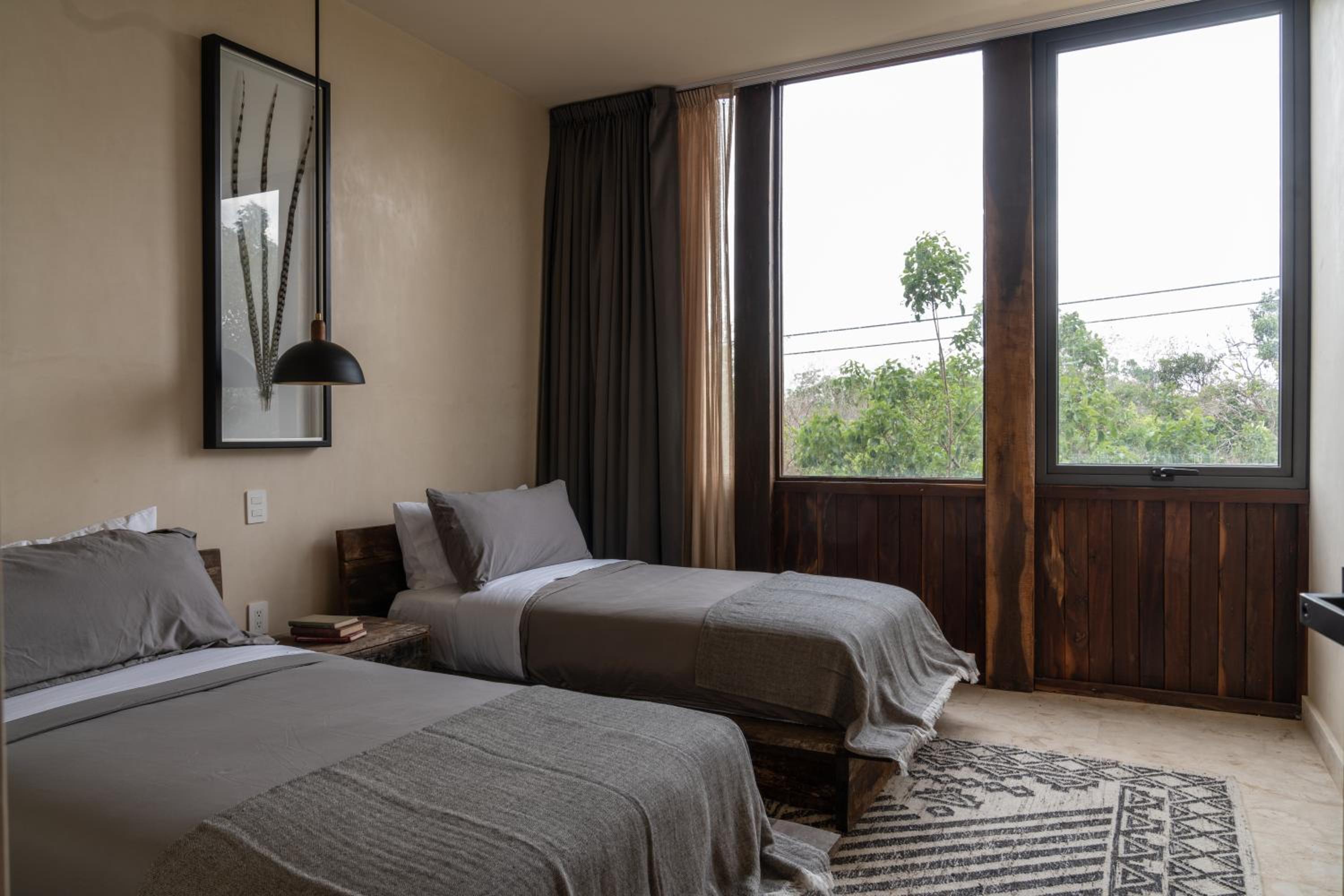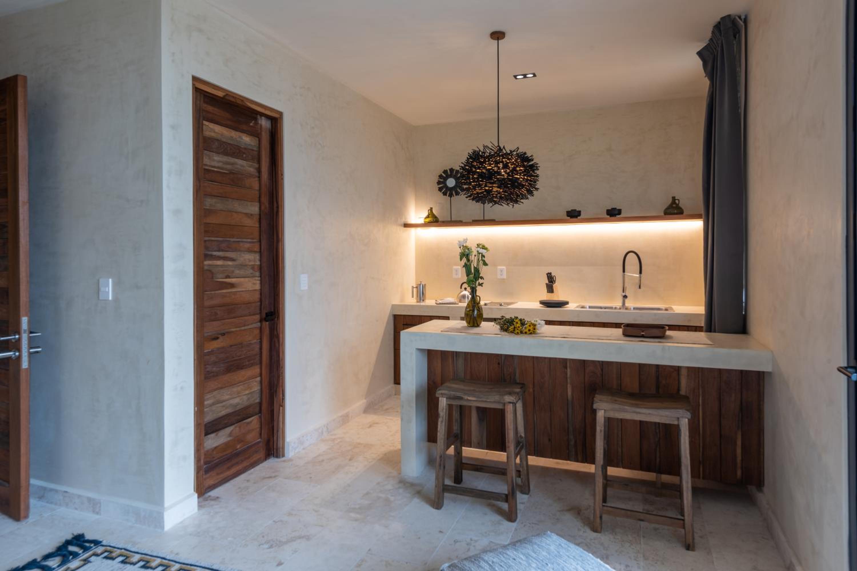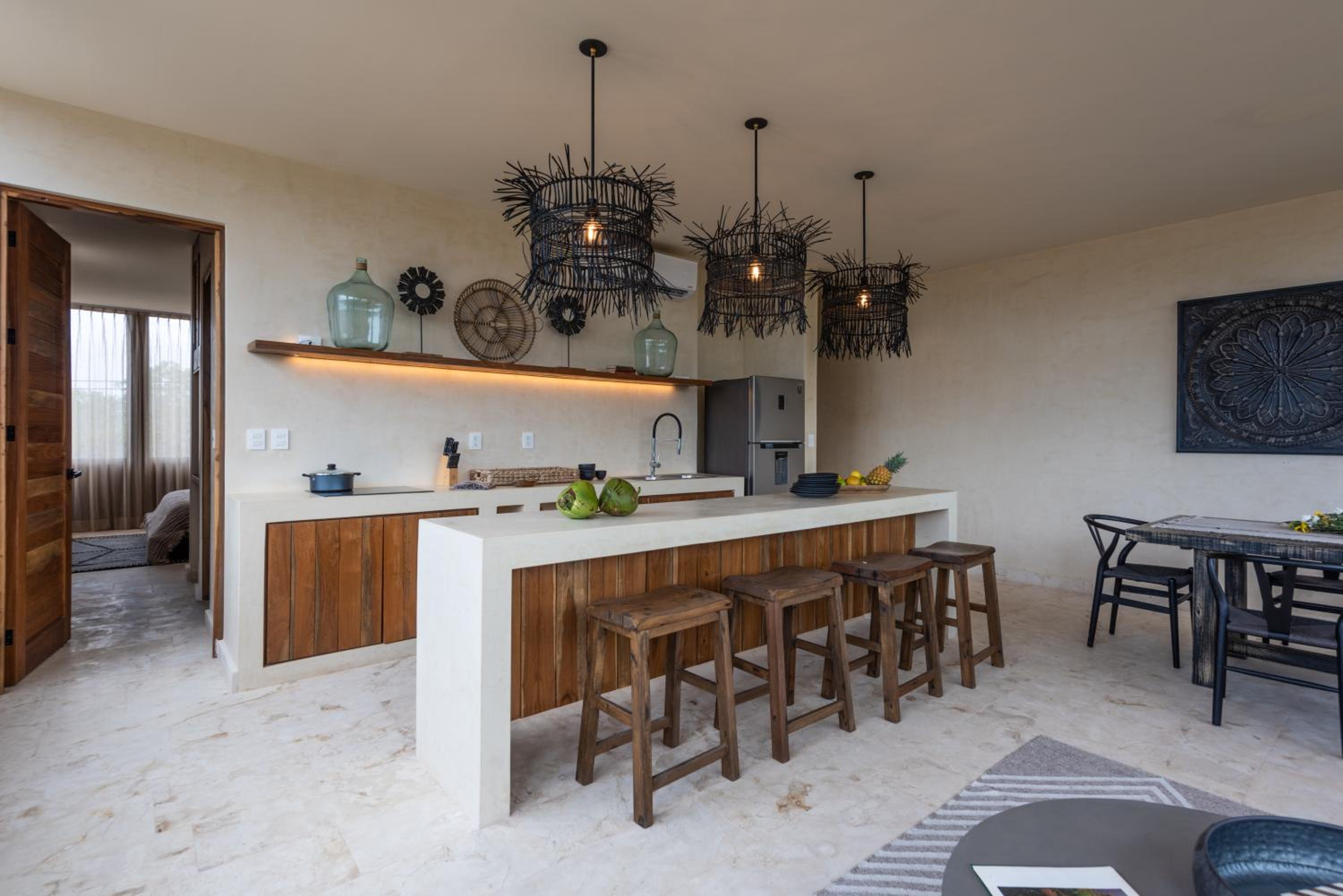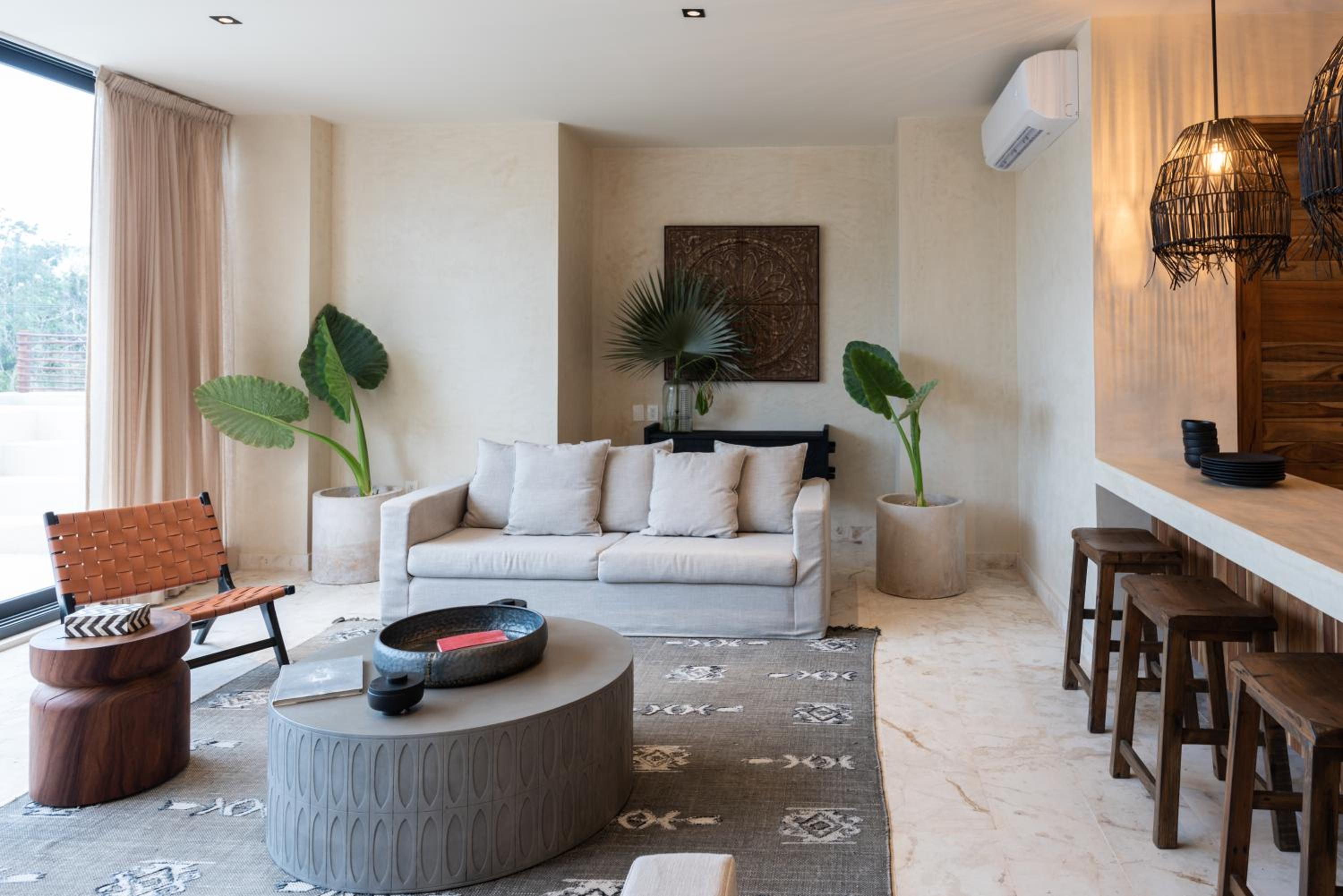 Unho Tulum, a 4-star hotel in Tulum, offers air-conditioned rooms with modern amenities like a coffee machine, fridge, and flat-screen TV. Some rooms even feature a balcony for stunning views.
