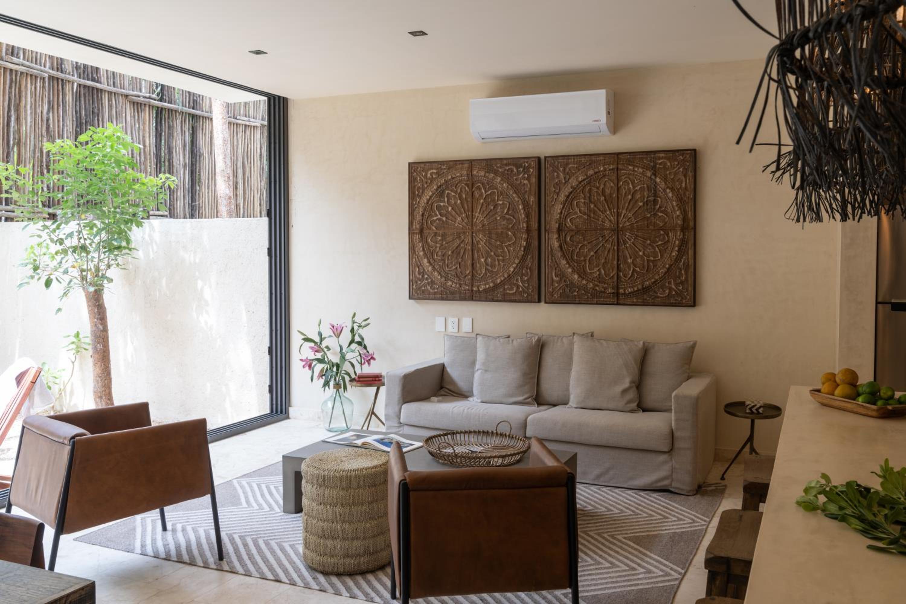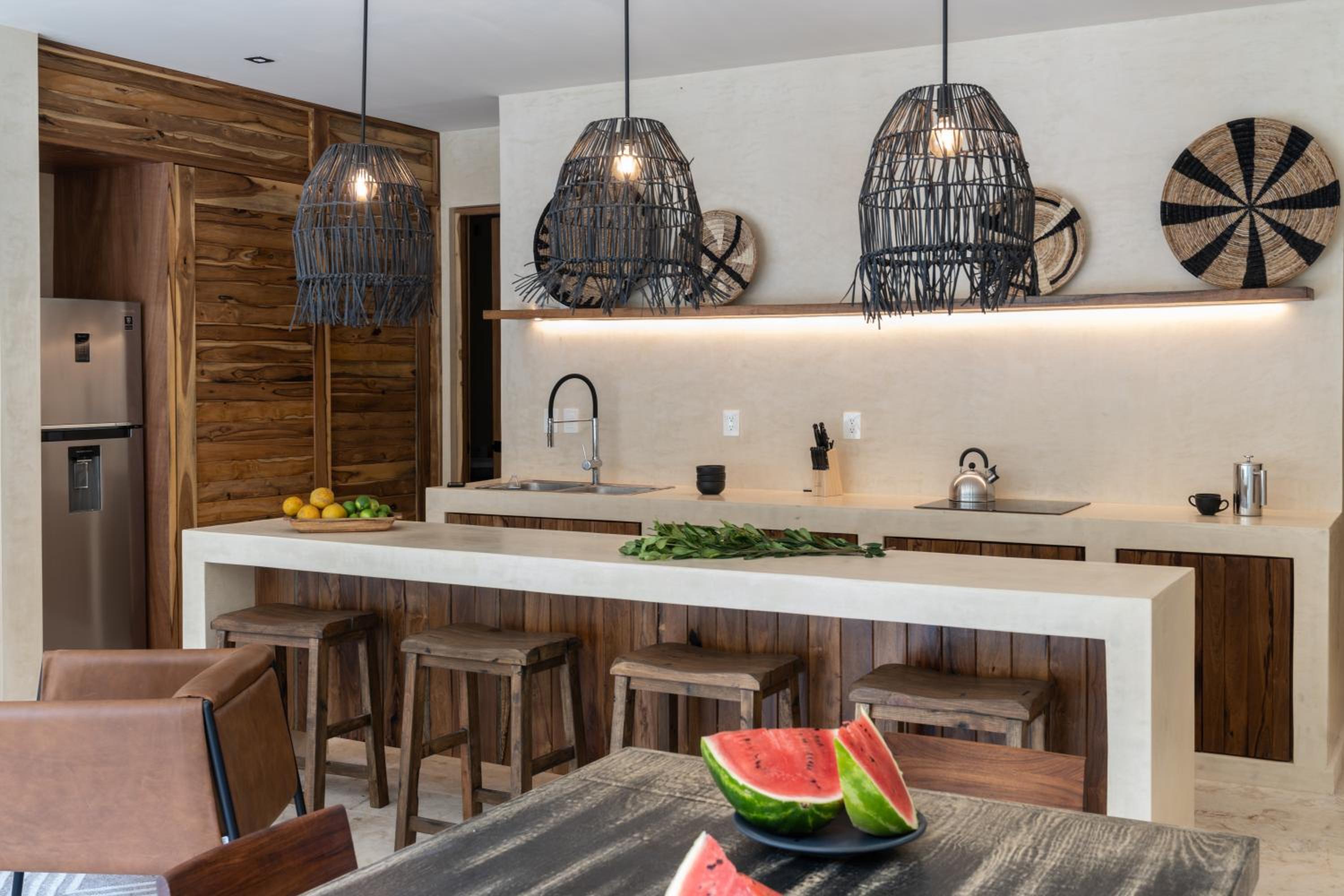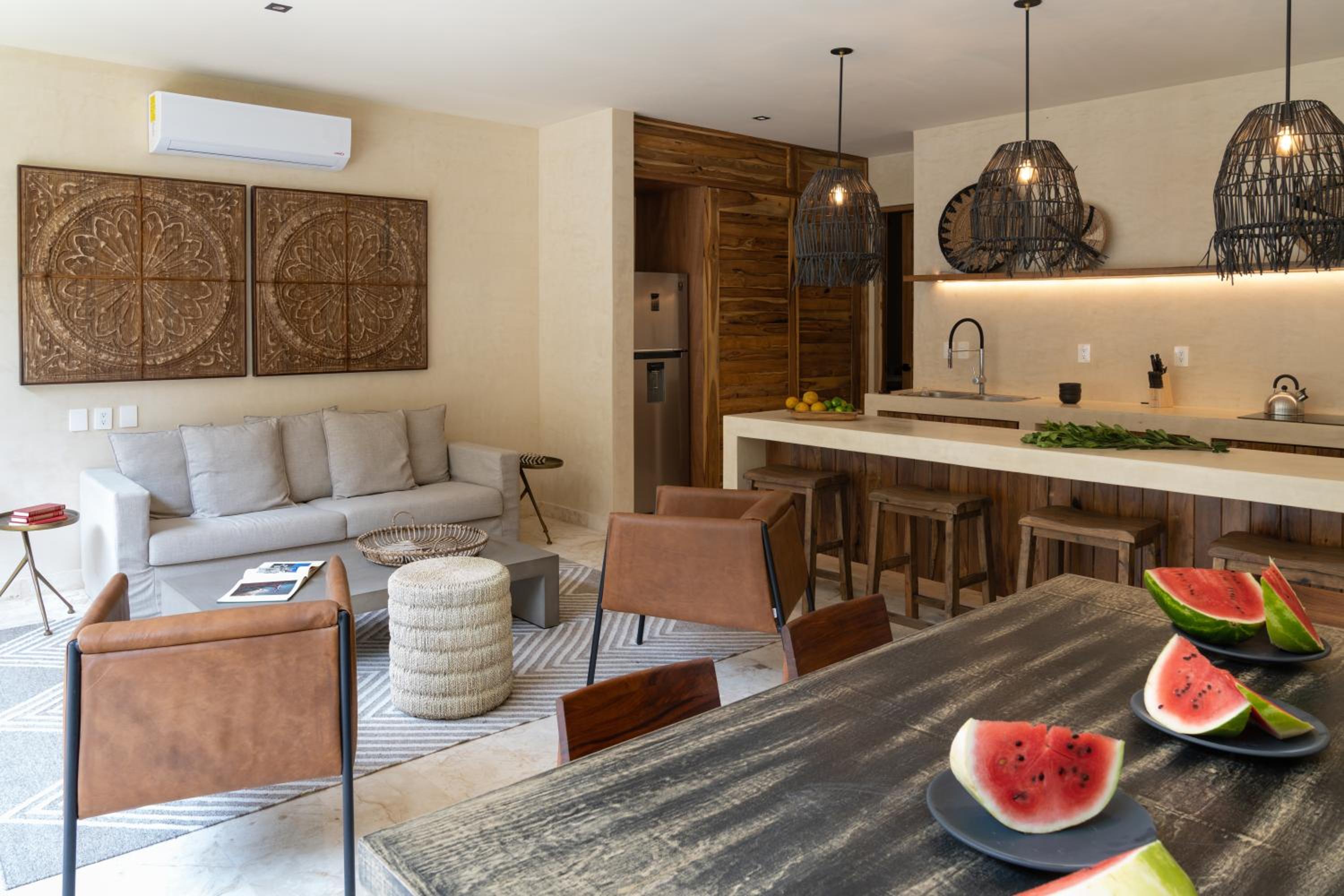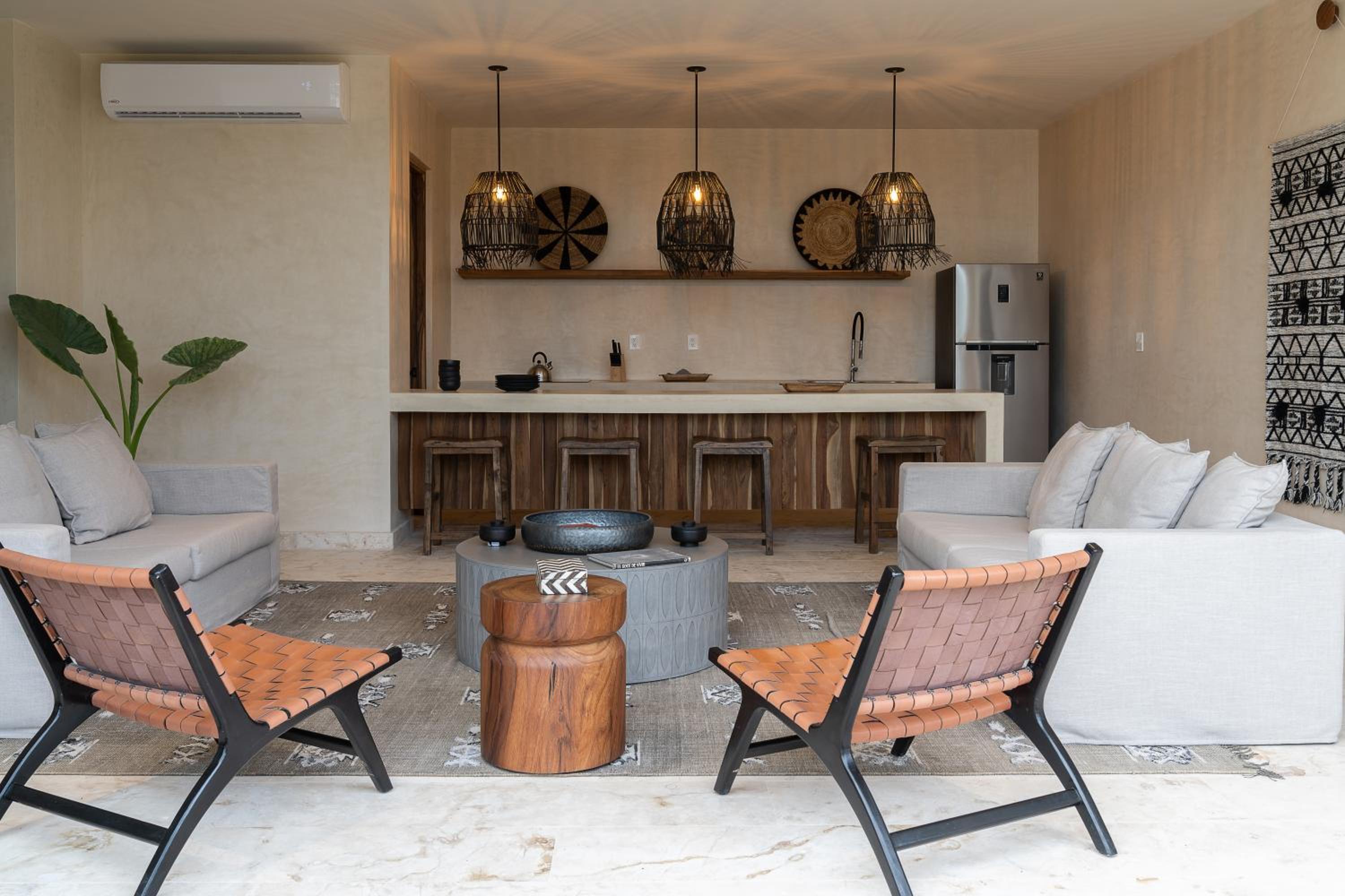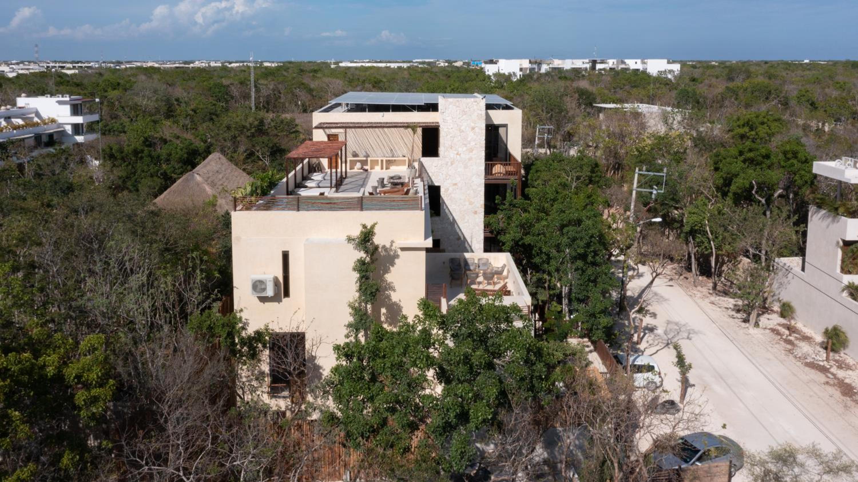 Unho Tulum, a 4-star hotel in Tulum, offers air-conditioned rooms with modern amenities like a coffee machine, fridge, and flat-screen TV. Some rooms even feature a balcony for stunning views.