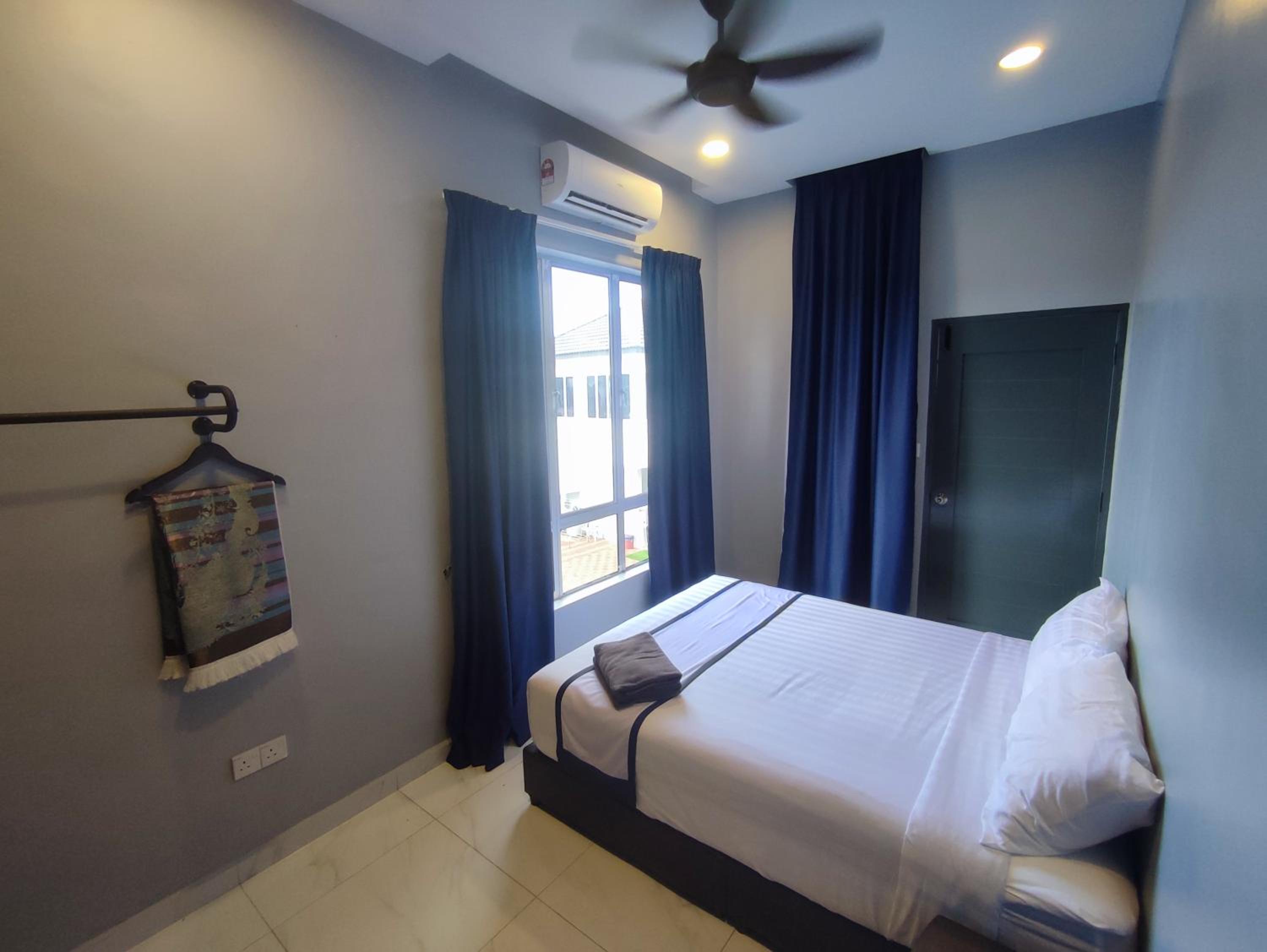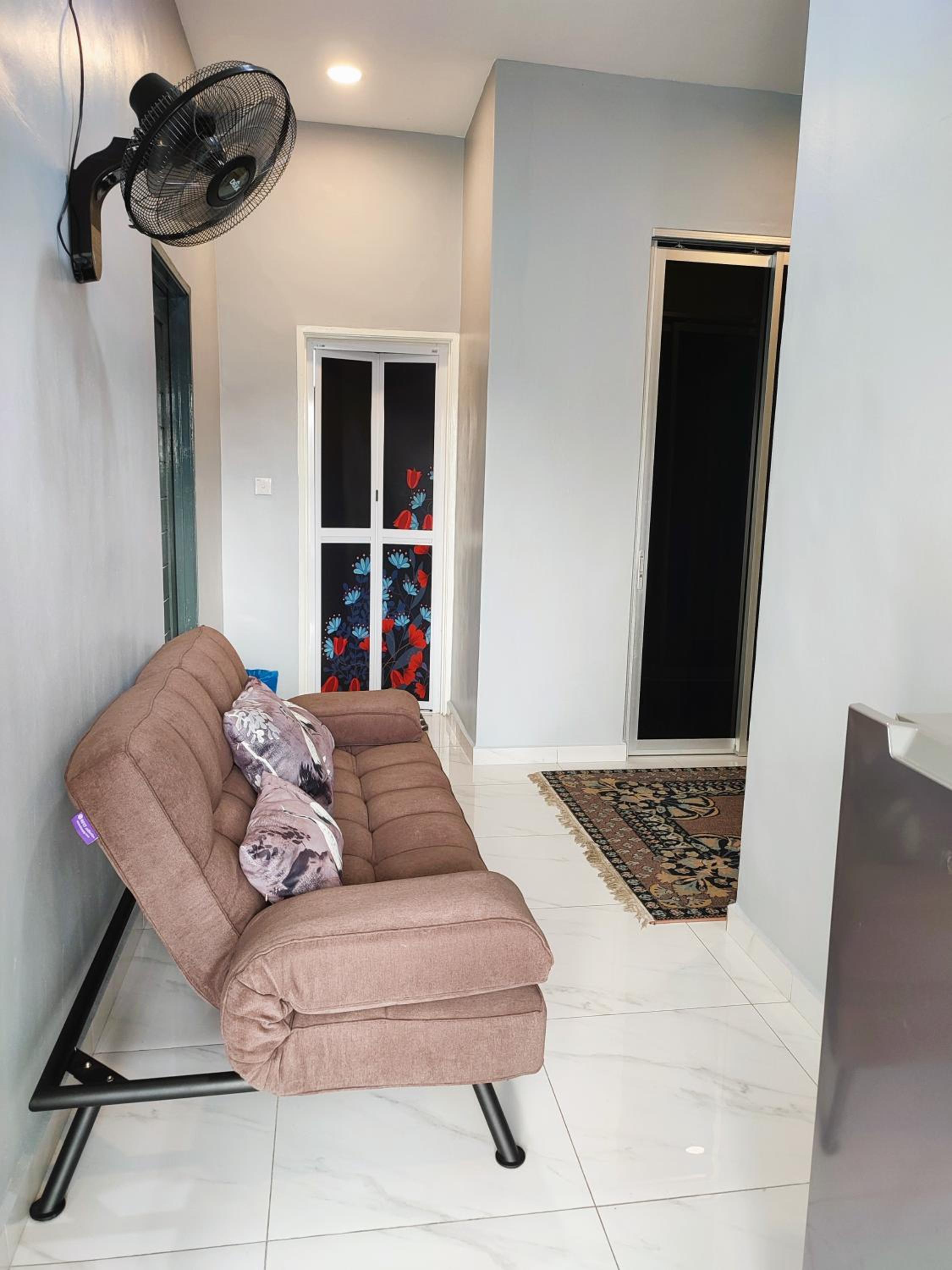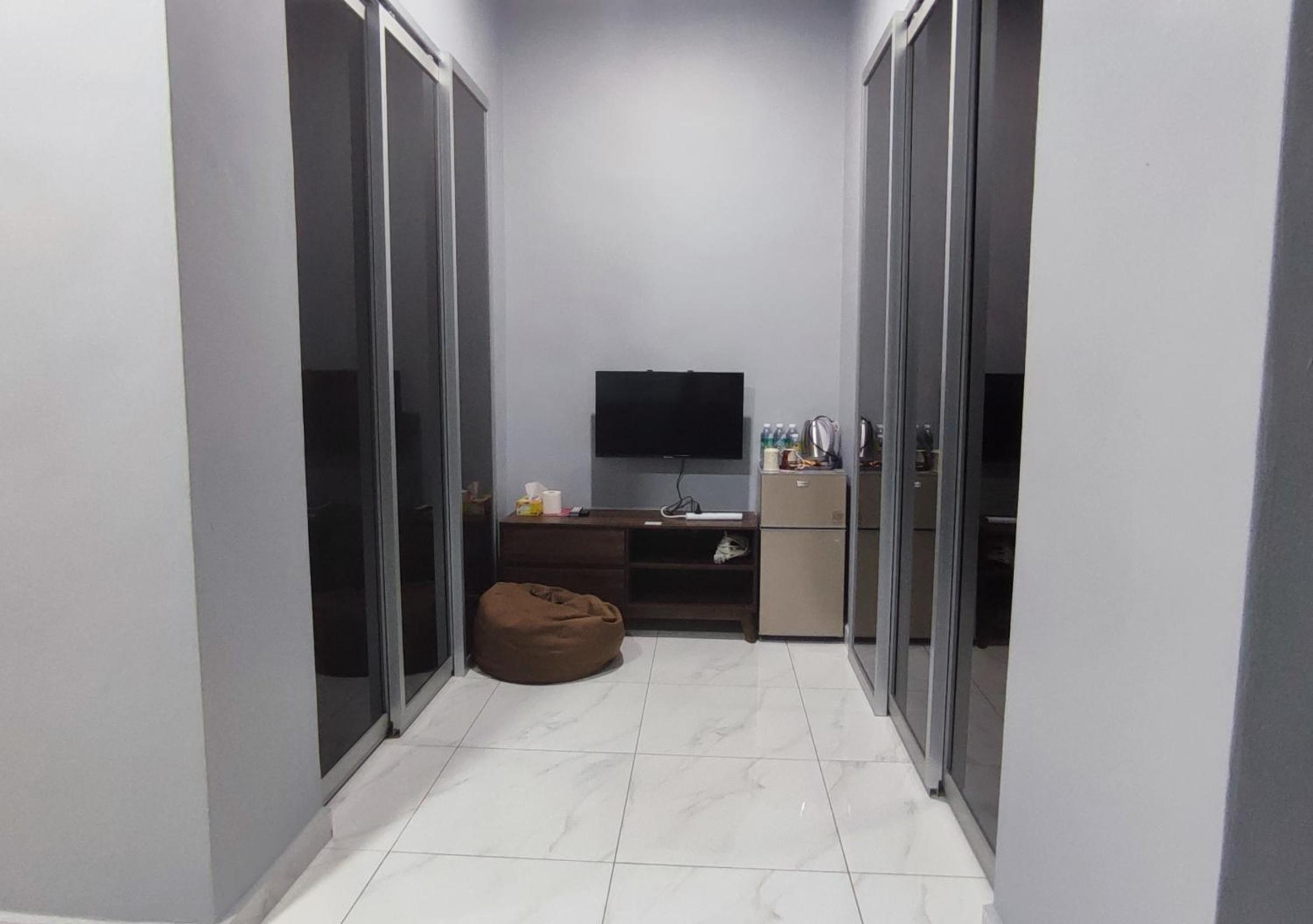 Tak ada almari. Plus, ada request for extra matress, bantal & selimut tapi agak berbau. So maybe next time can provide yang bersih & tak berbau. Also, boleh consider utk letak air cond dekat hall, sbb panas sikit area hall.