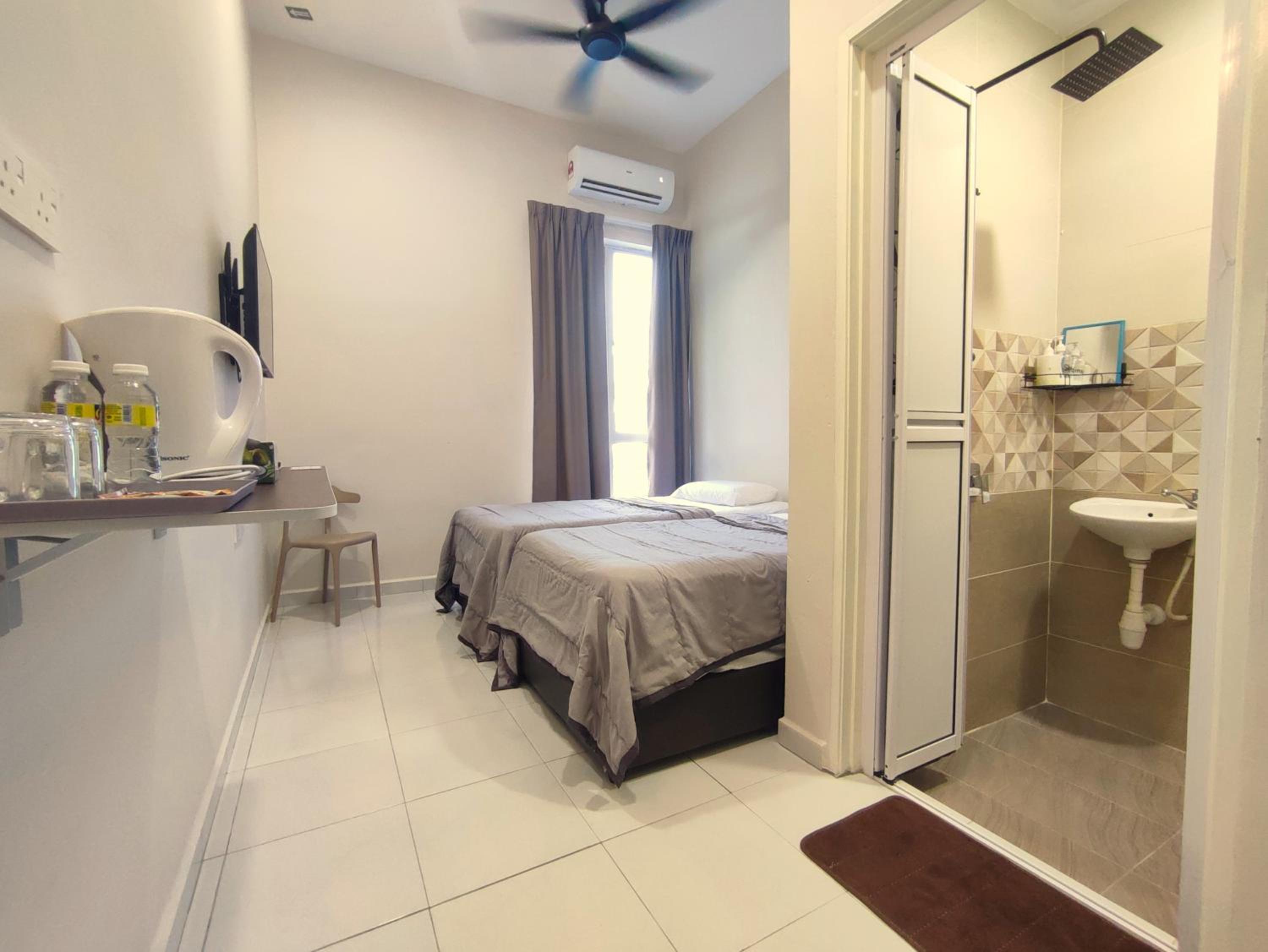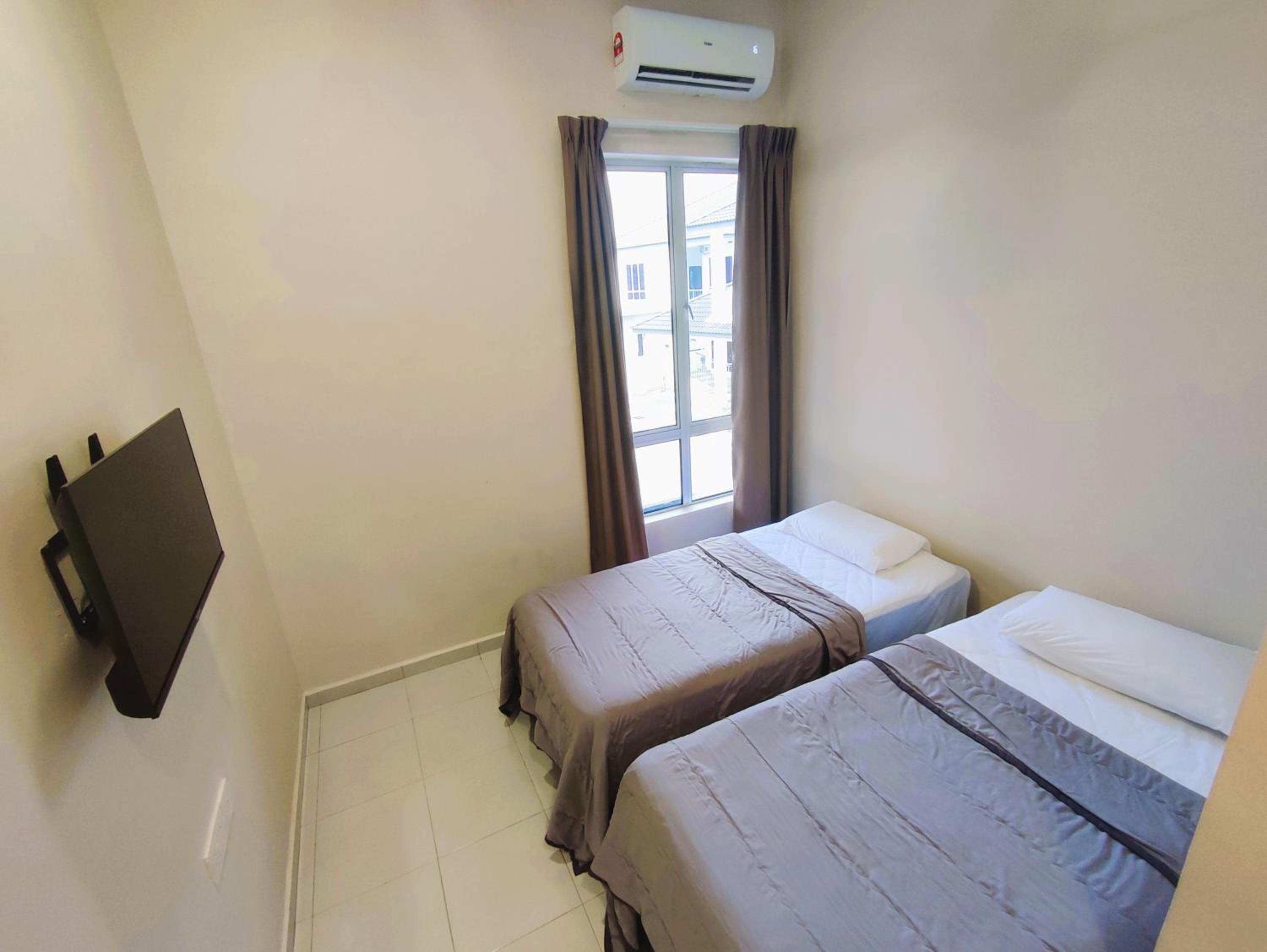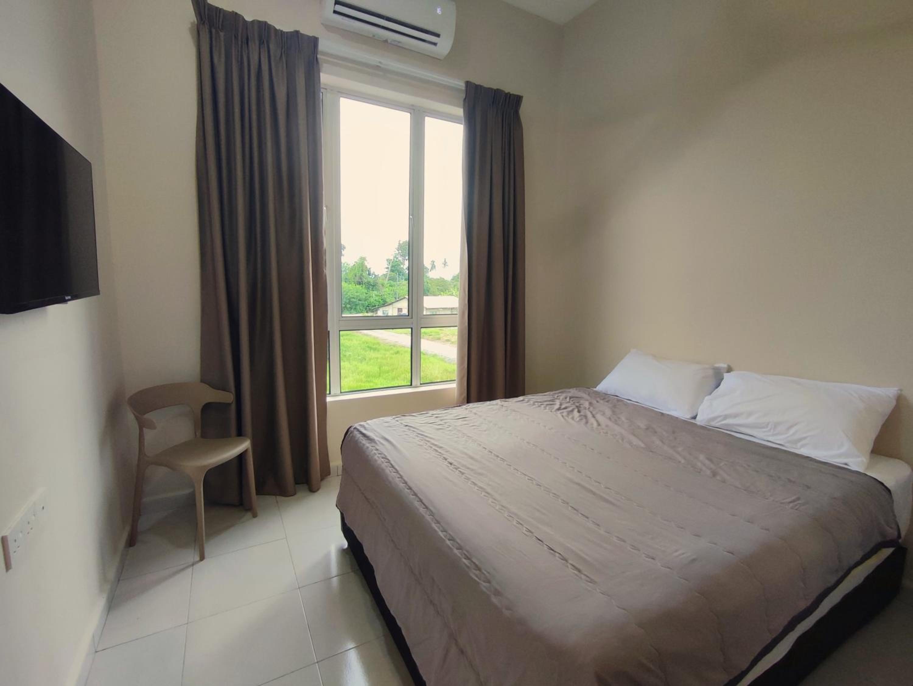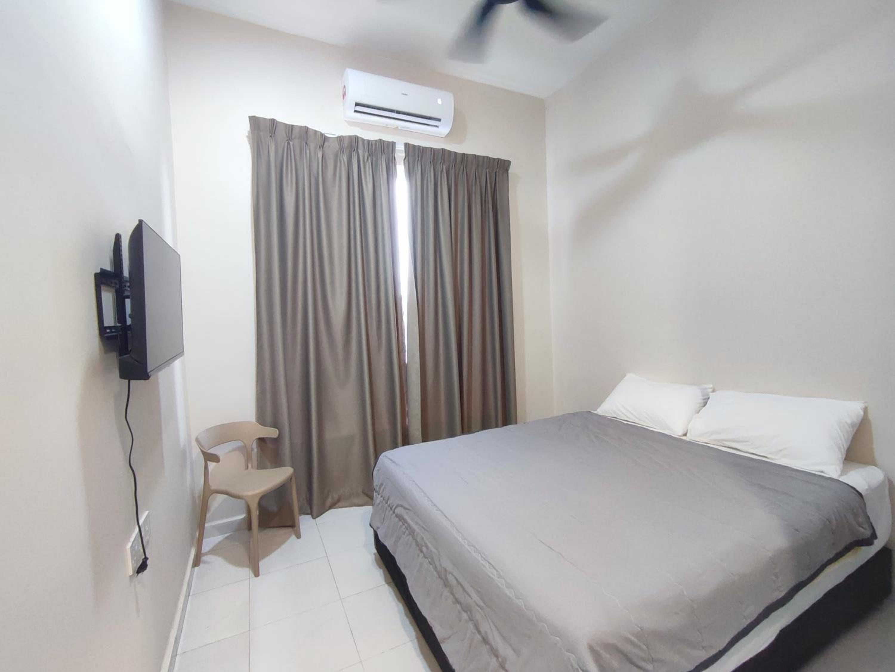 Tak ada almari. Plus, ada request for extra matress, bantal & selimut tapi agak berbau. So maybe next time can provide yang bersih & tak berbau. Also, boleh consider utk letak air cond dekat hall, sbb panas sikit area hall.