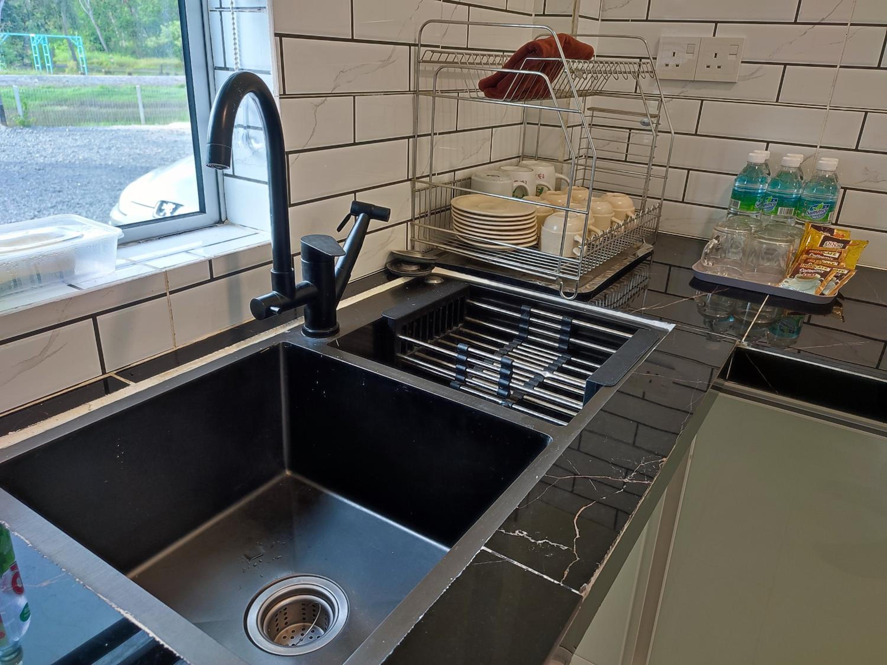 We get fresh and clean rooms at 8'ish.. towels, tissues, hangers, 2in1 shower gel & shampoo, coffee sachets, smal fridge and ironing facilities provided. Landscape and little lake are beautiful not to mention spacious parking area. There are also small balcony fit for 6pax at level 1 overlooking their landscape. Heater functiona very well. Lady staff at the counter doing my rgstration at 840pm was very nice & polite. Forgot to get her name!