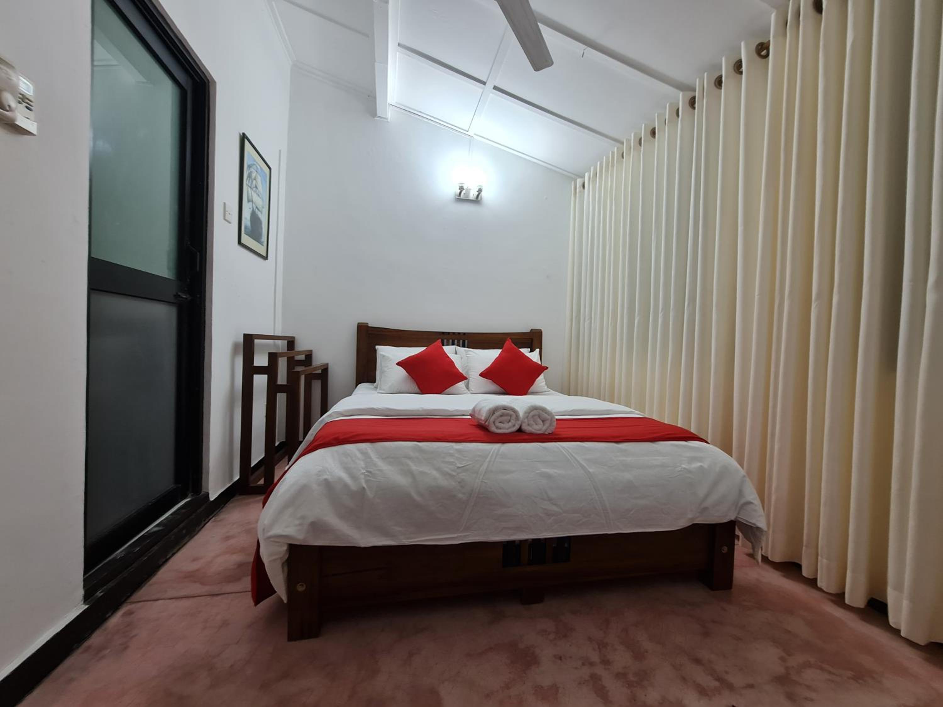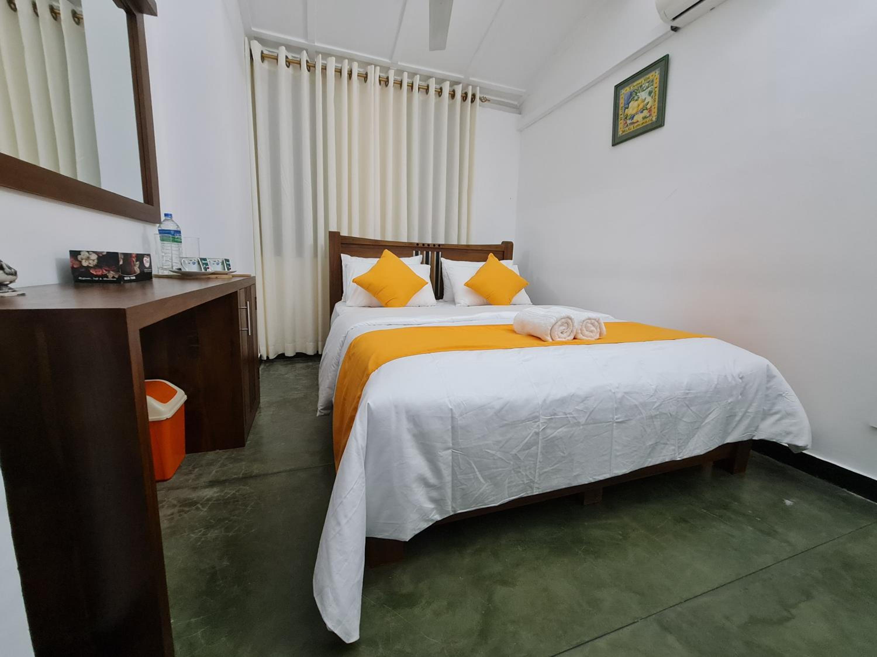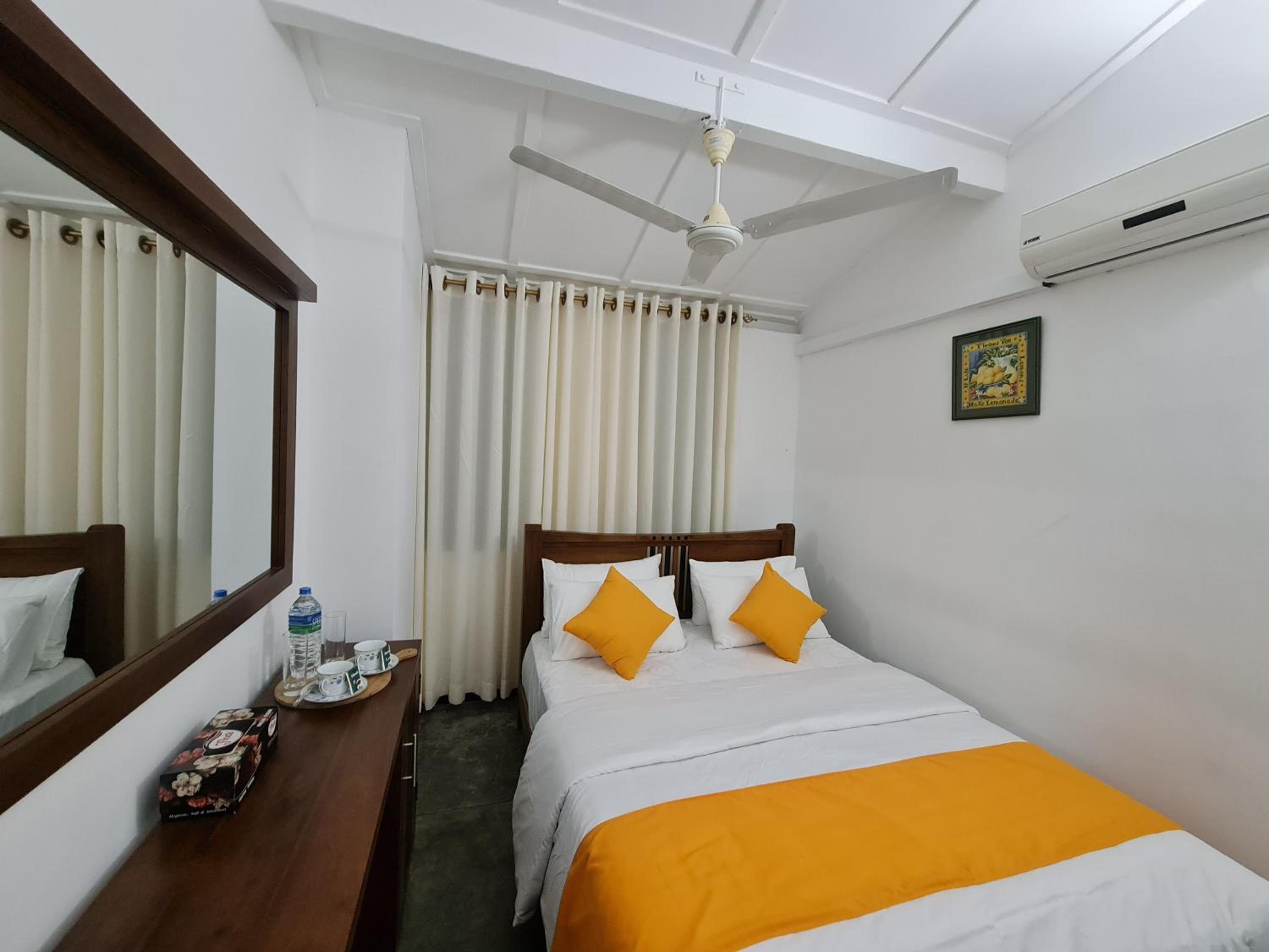 A clean room with a comfy bed, with aircon for a fair price. Location is above the city center, still served by Uber/PickMe apps, around the hills which is providing an amazing view on the mountains around. Definitely recommand it!