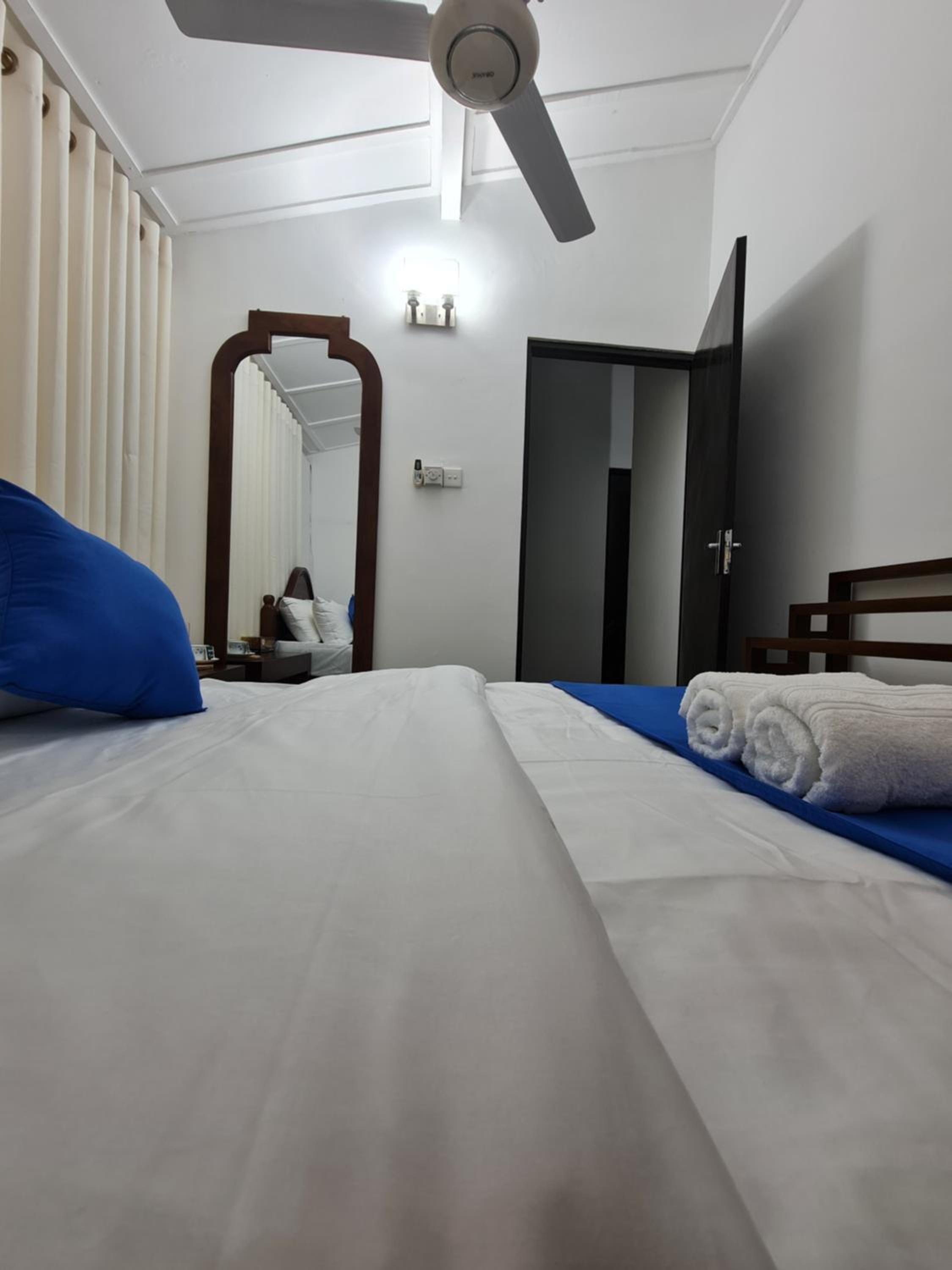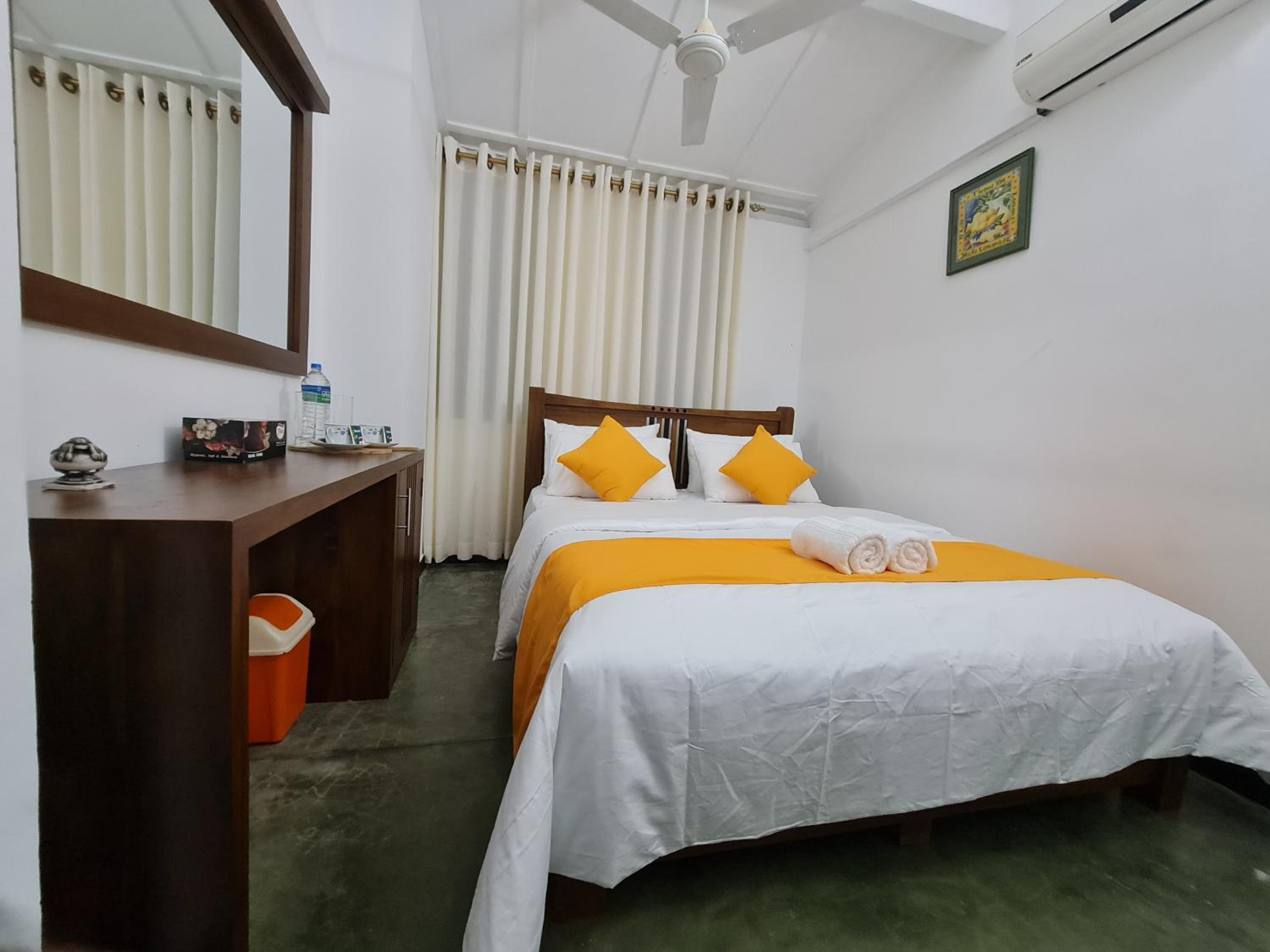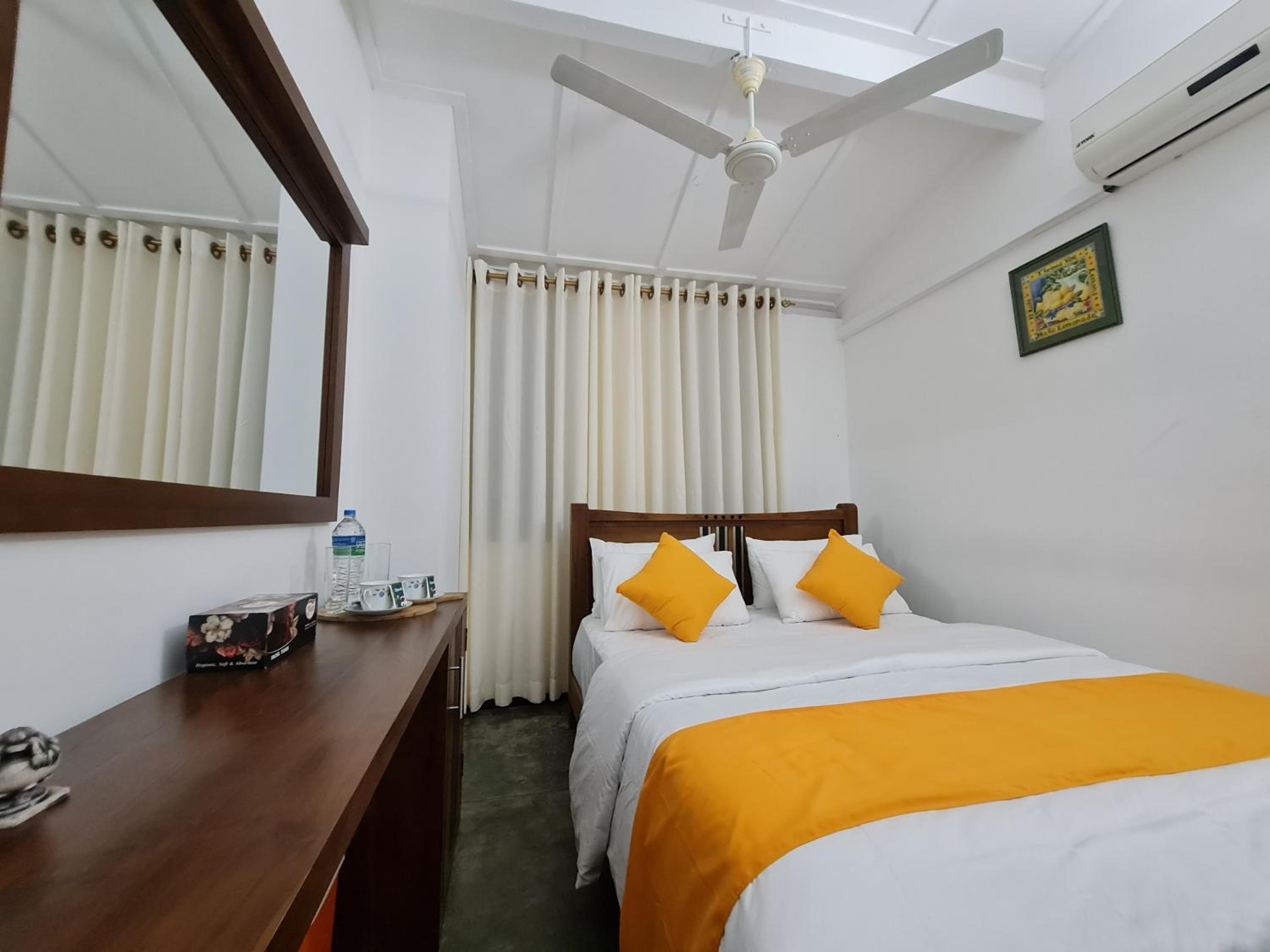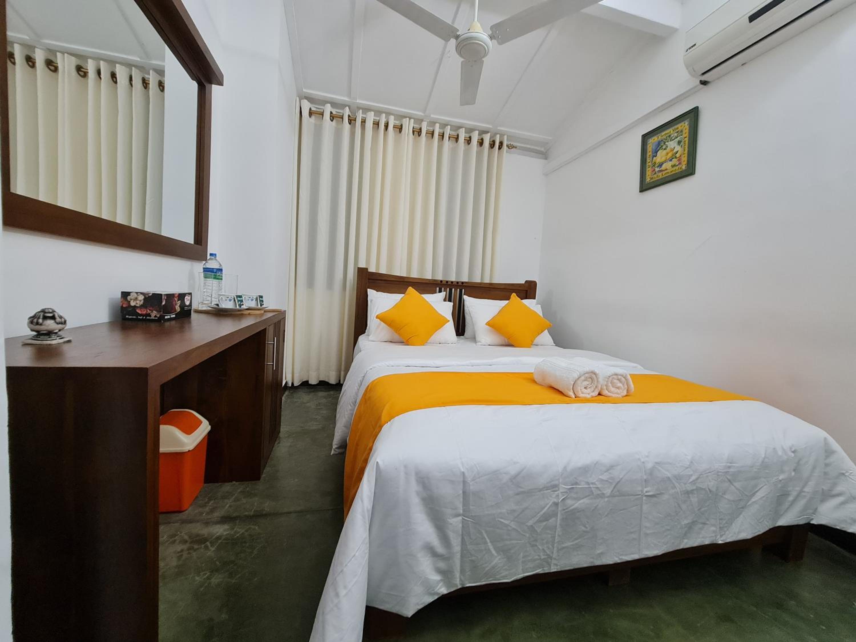 We had a private room which was not too big, but with AC and just enough for us! The bathroom is shared but that was totally fine for us! Especially the owner was really kind, he would always made us some tea whenever we came back from the town! He prepared a nice Sri Lankan Breakfast and heated up our leftover food! He can arrange you a good driver who will make a tour through Kandy with you and even prepared us snacks for the next destination!
