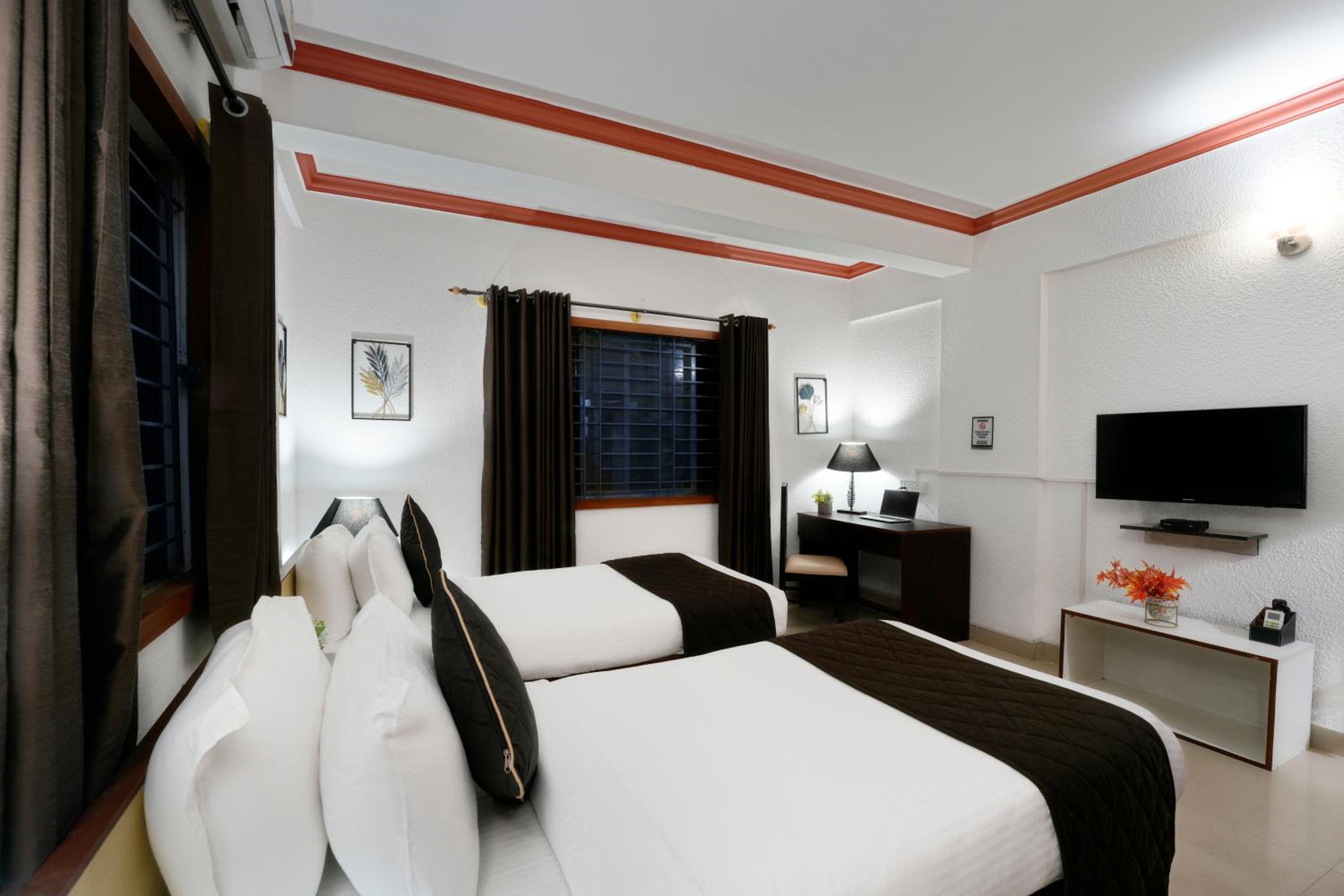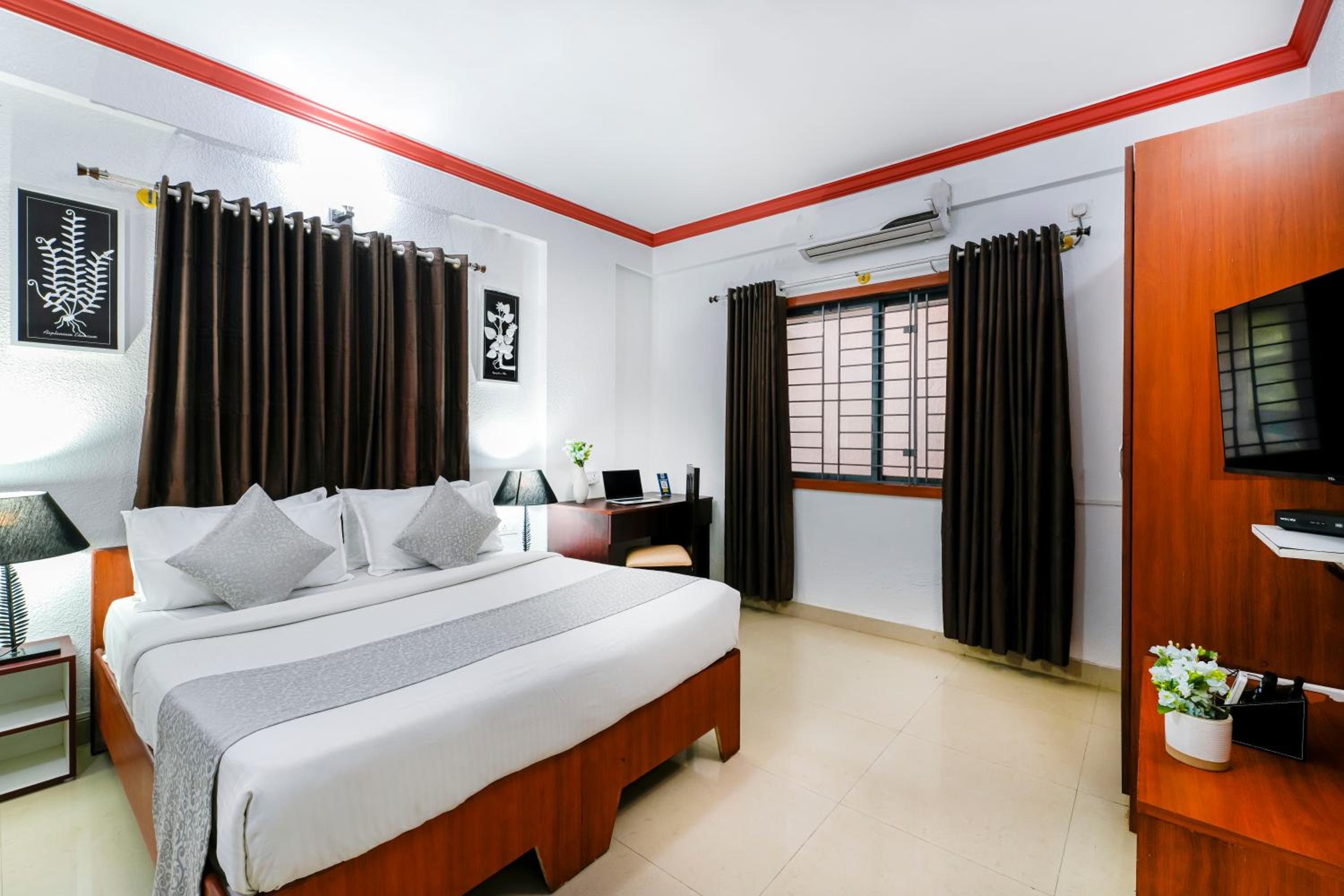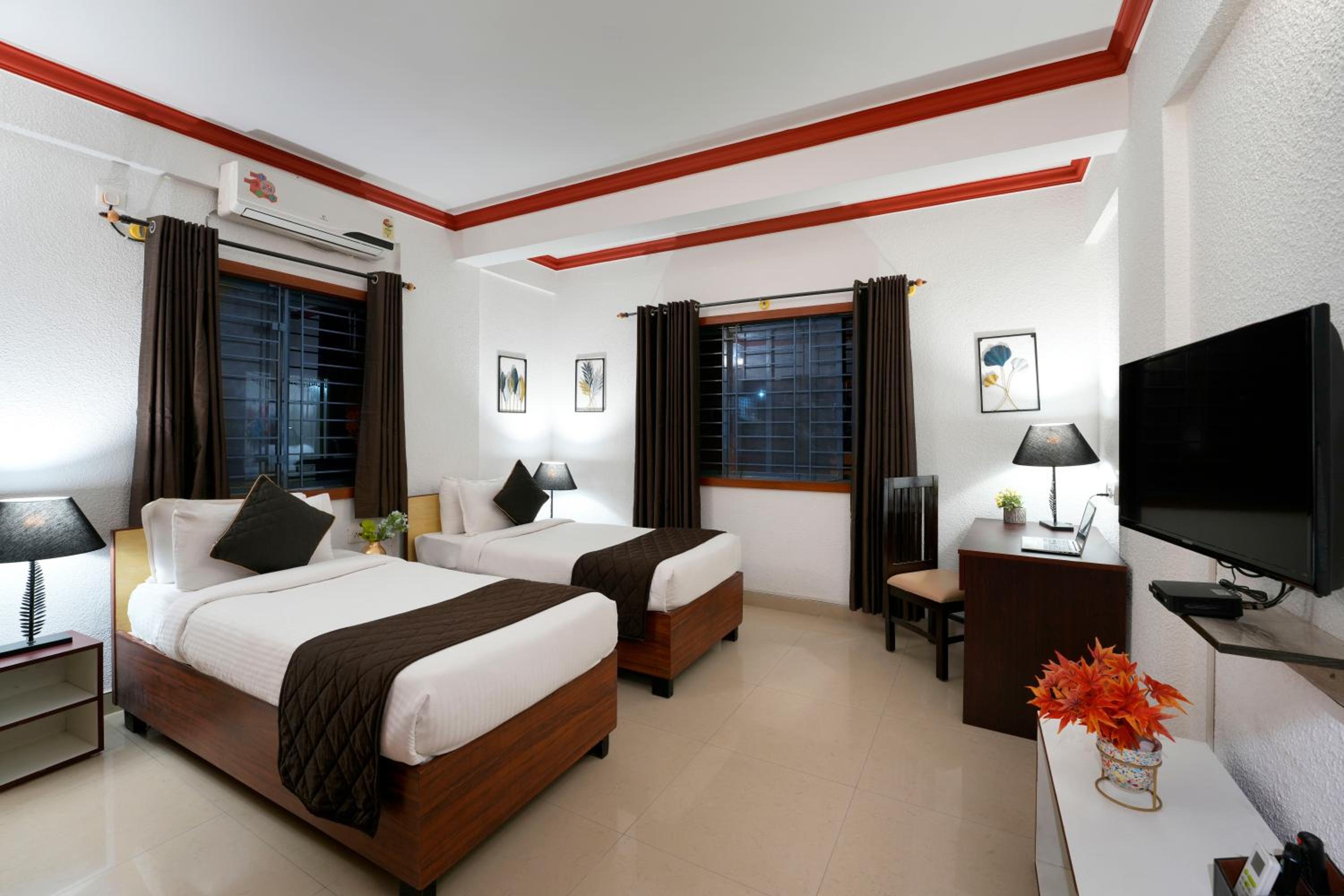 Nevesa Inn offers a modern and comfortable stay in Bangalore, conveniently located near popular attractions such as The Heritage Centre & Aerospace Museum and Brigade Road. The 3-star hotel boasts air-conditioned rooms with private bathrooms, flat-screen TVs, and cozy bed linens.