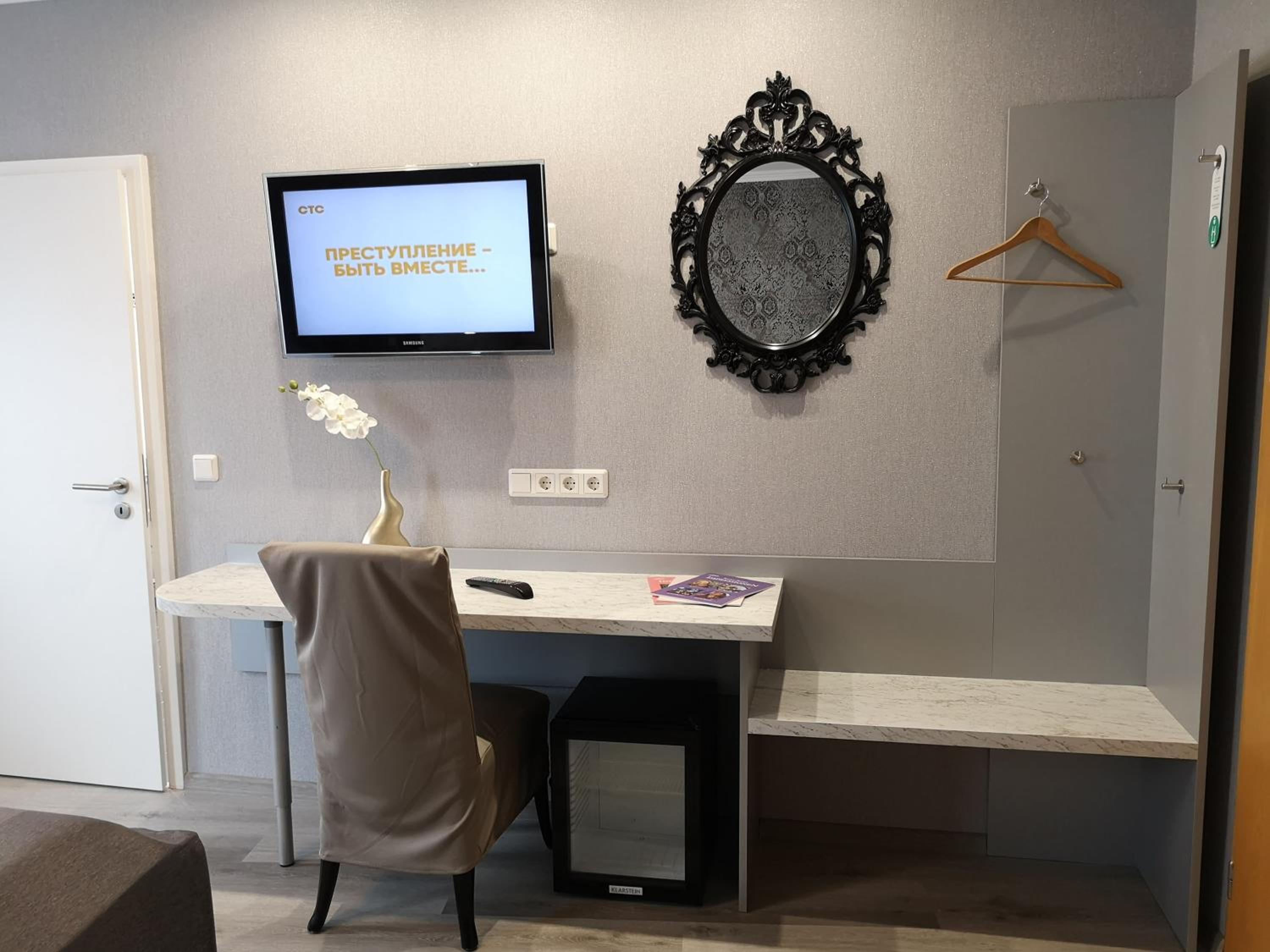 Chambre 1 personne avec 1 petit lit (j'ai demandé si je pouvais en avoir un double, refusé, même si période basse). Pour la TV, pas de canaux étrangers.