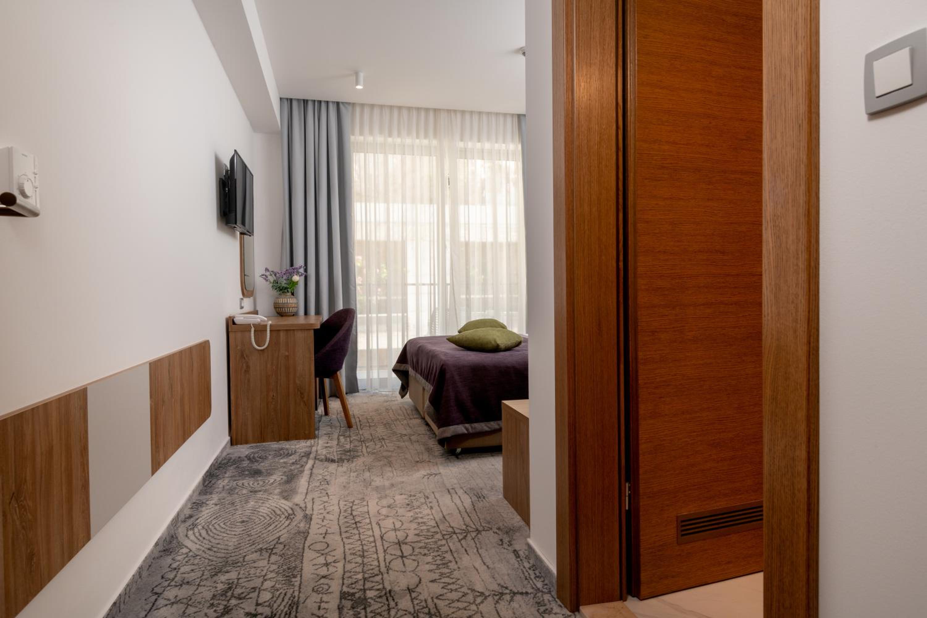 Indulge in comfort with air-conditioned rooms featuring flat-screen TVs, private bathrooms, and balconies with city views. Relax in style with cozy bedding and modern amenities.
