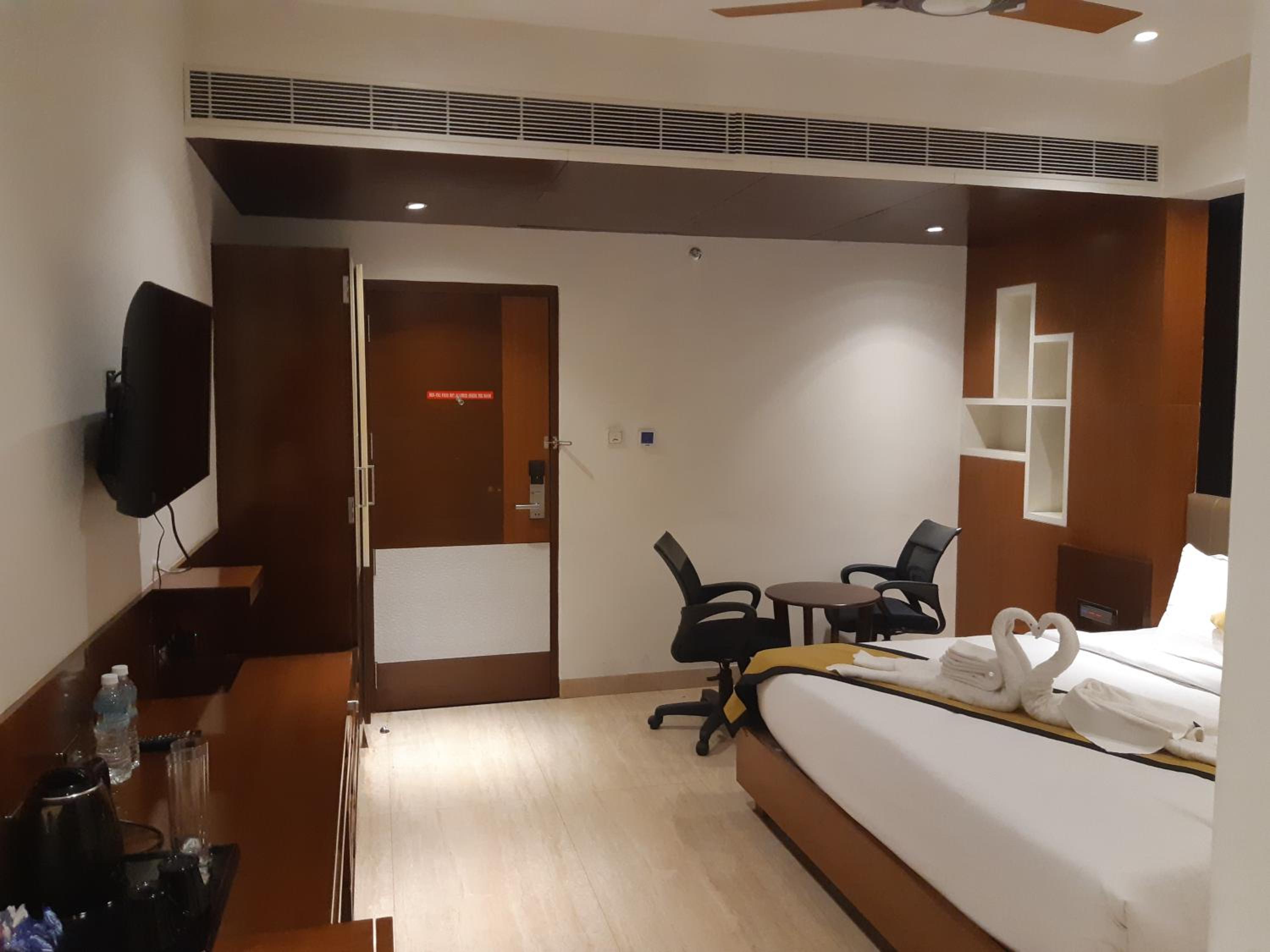 Hotel Namo Residency in Vijayawāda offers concierge services, allergy-free rooms, and a shared lounge. Enjoy free WiFi, a terrace, and a variety of dining options including American, Chinese, French, and Indian cuisines.