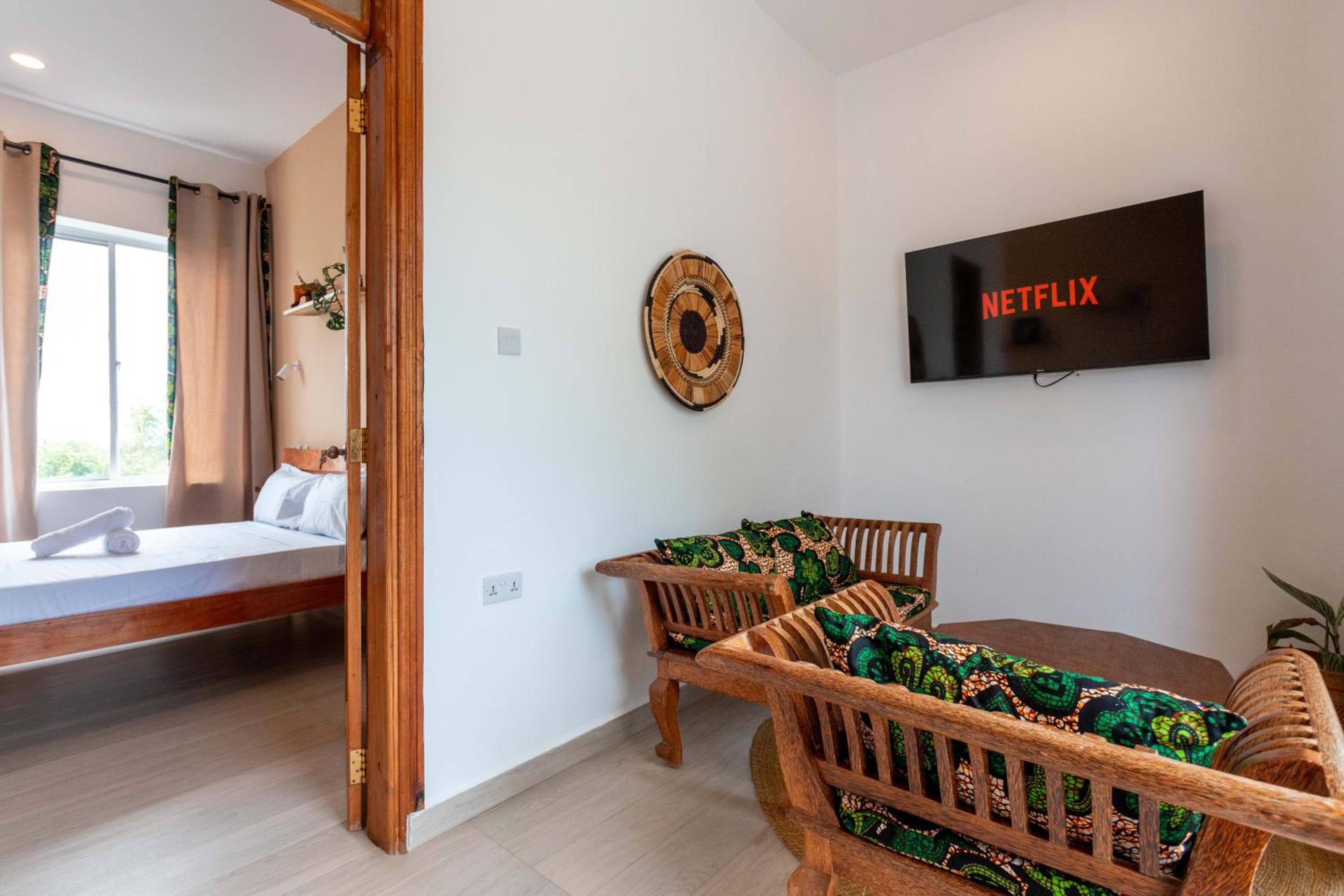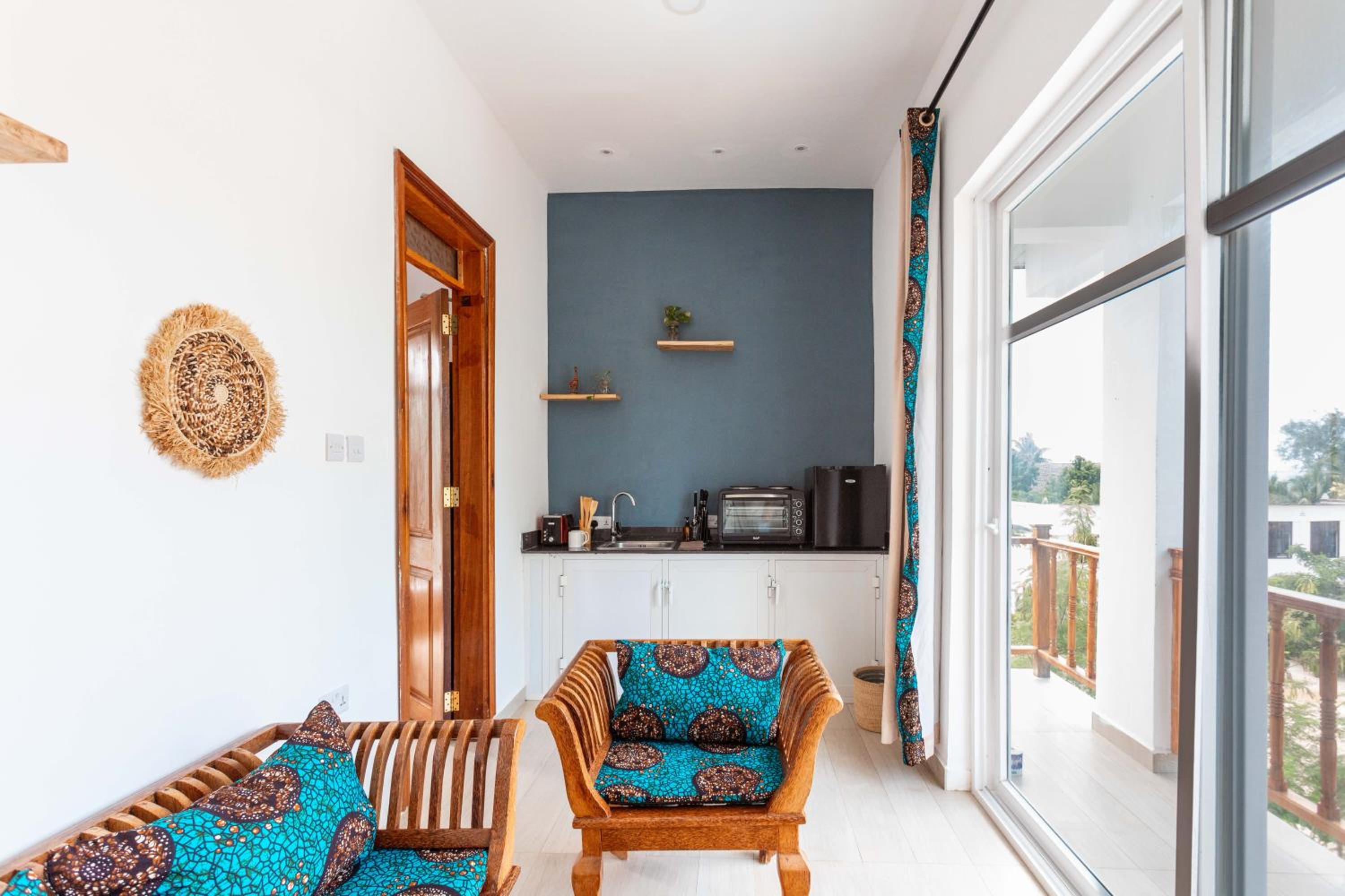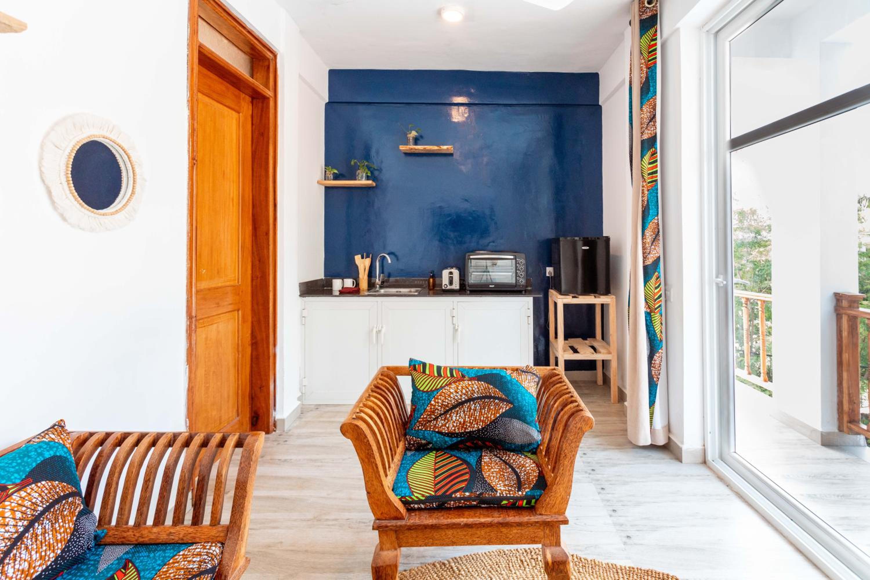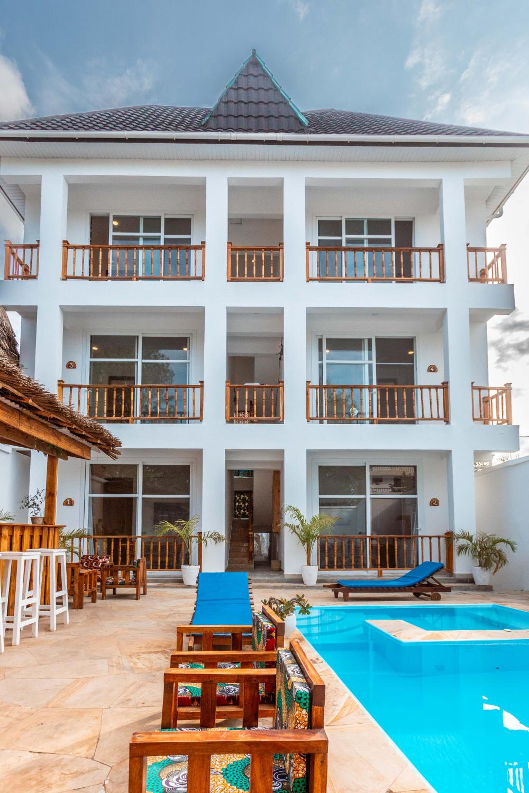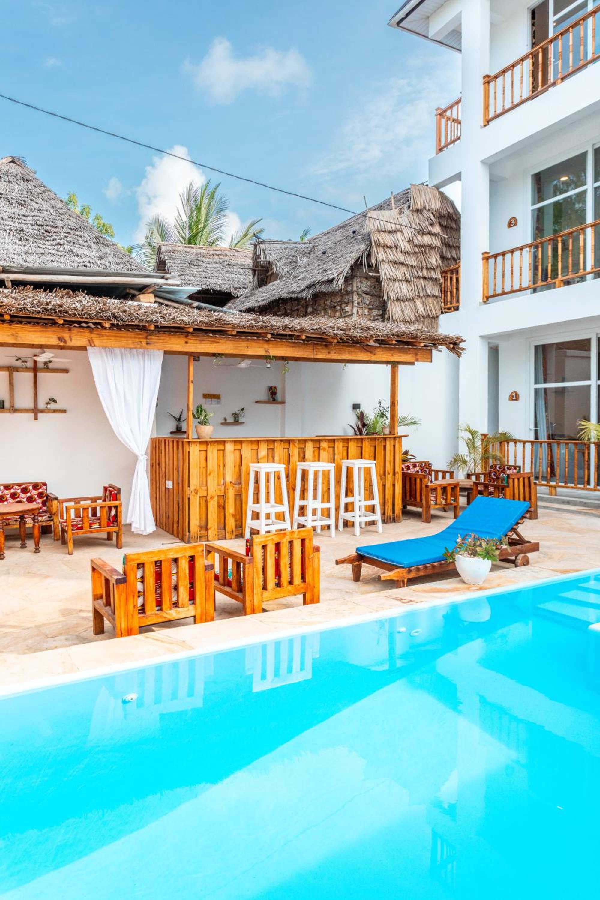 Unwind by the outdoor swimming pool, stroll through the garden, or lounge in the shared lounge area for a tranquil retreat in the heart of Jambiani.