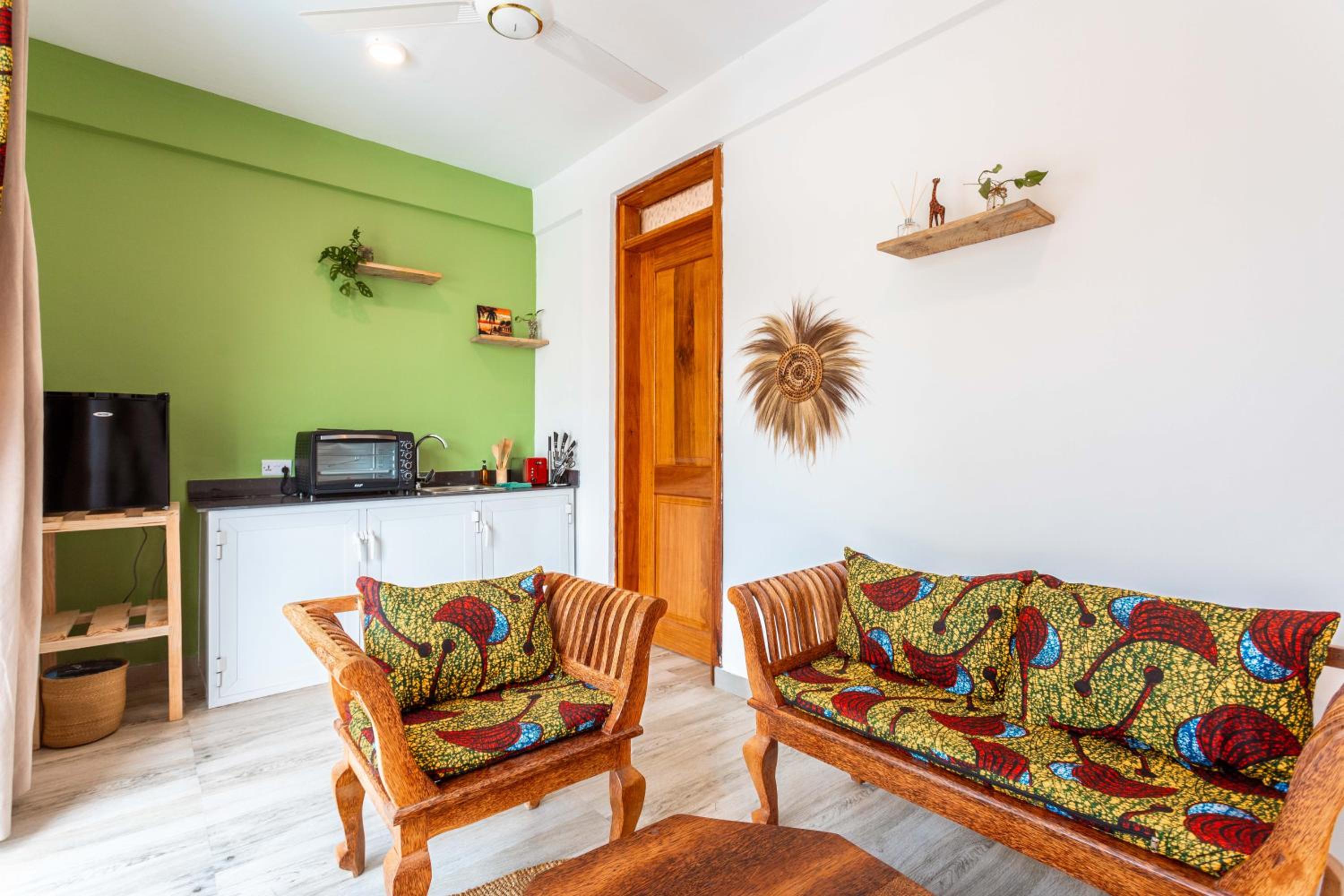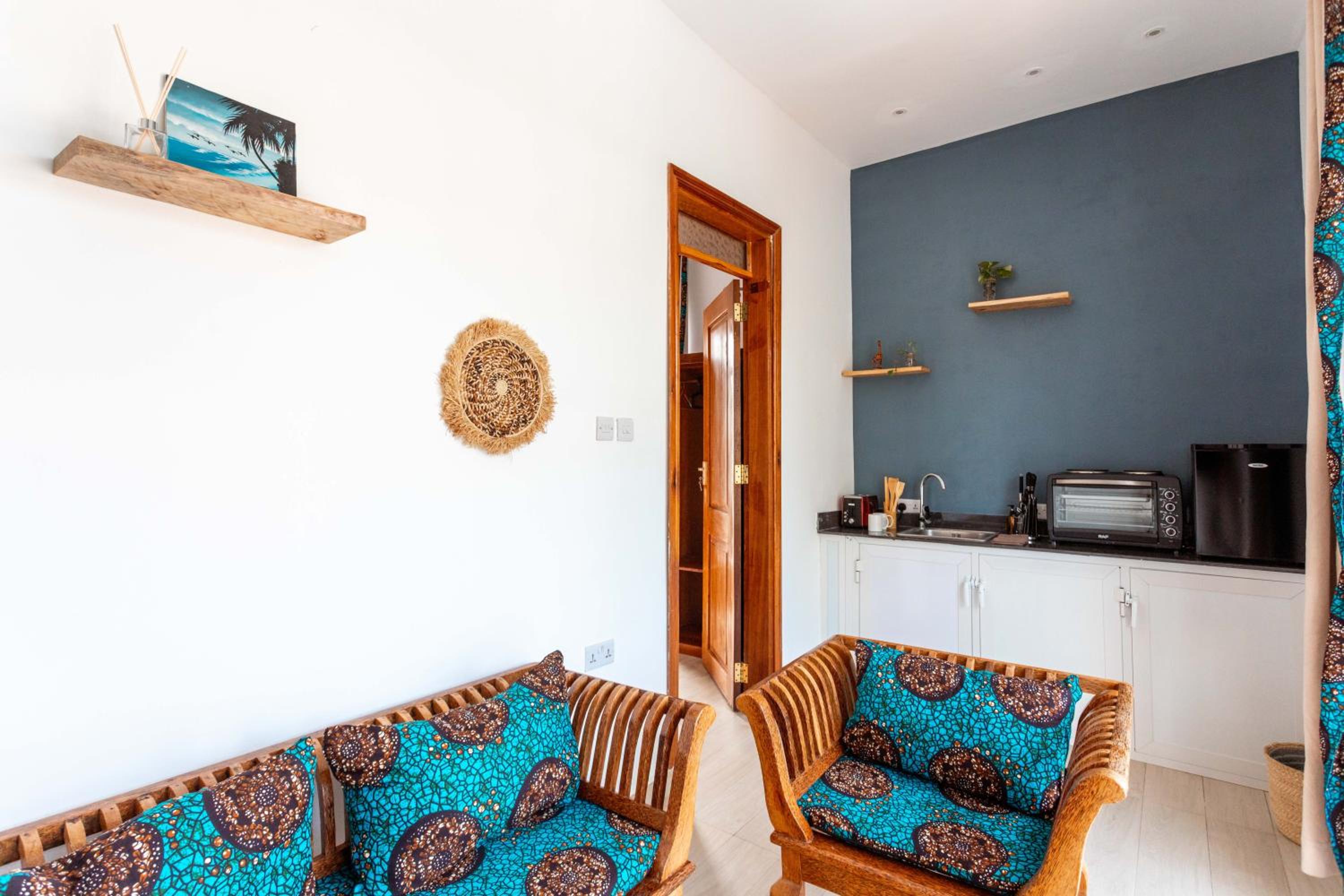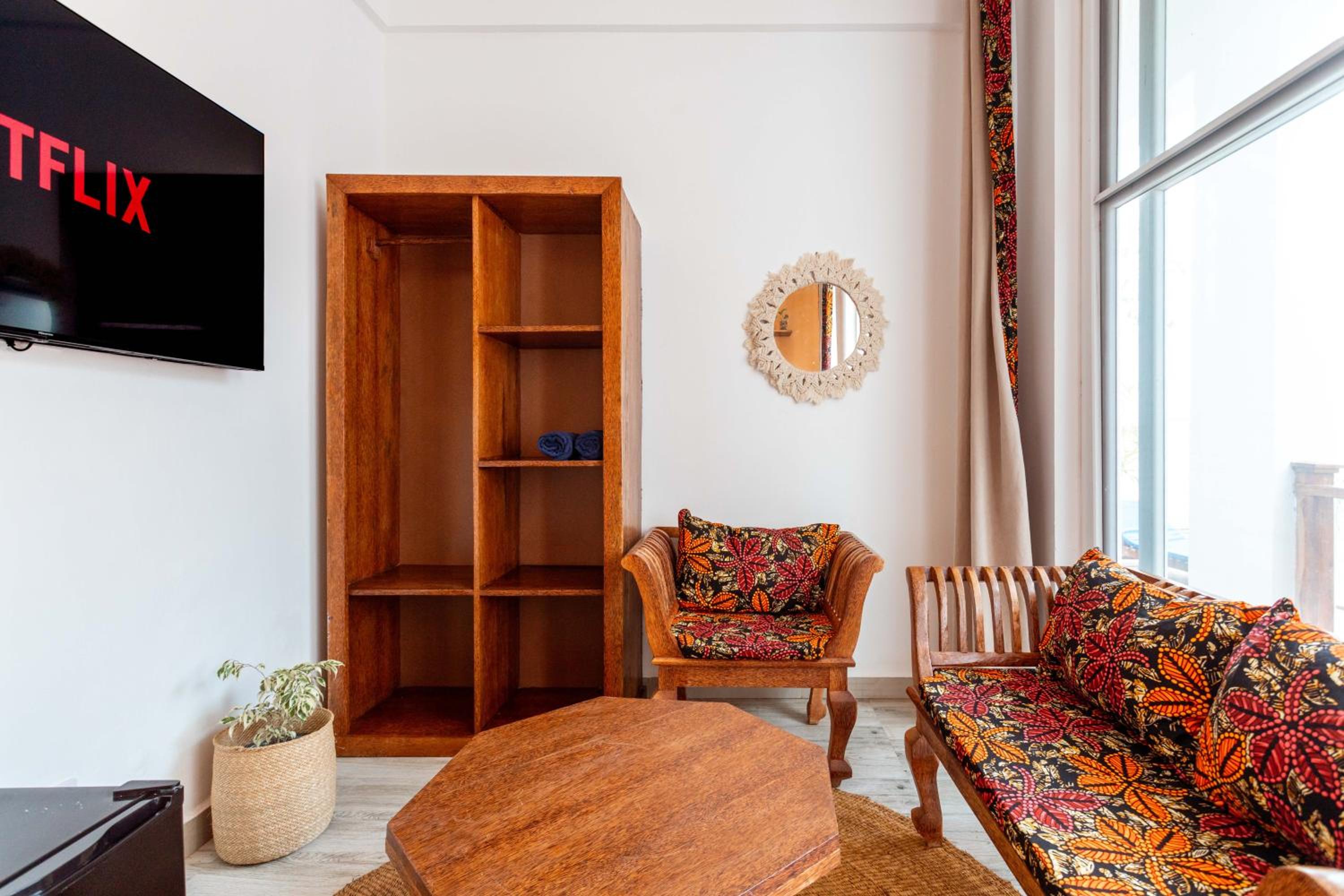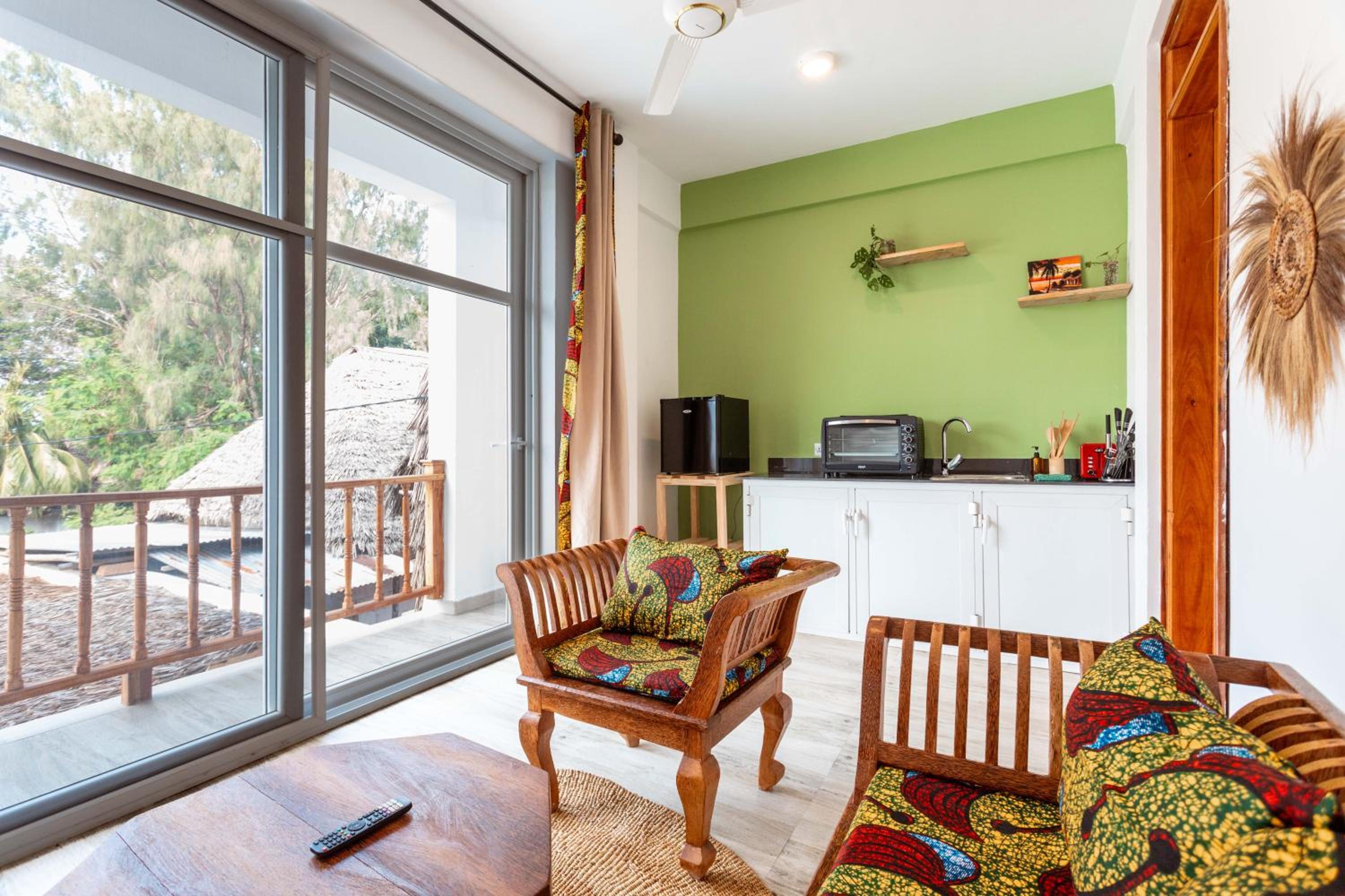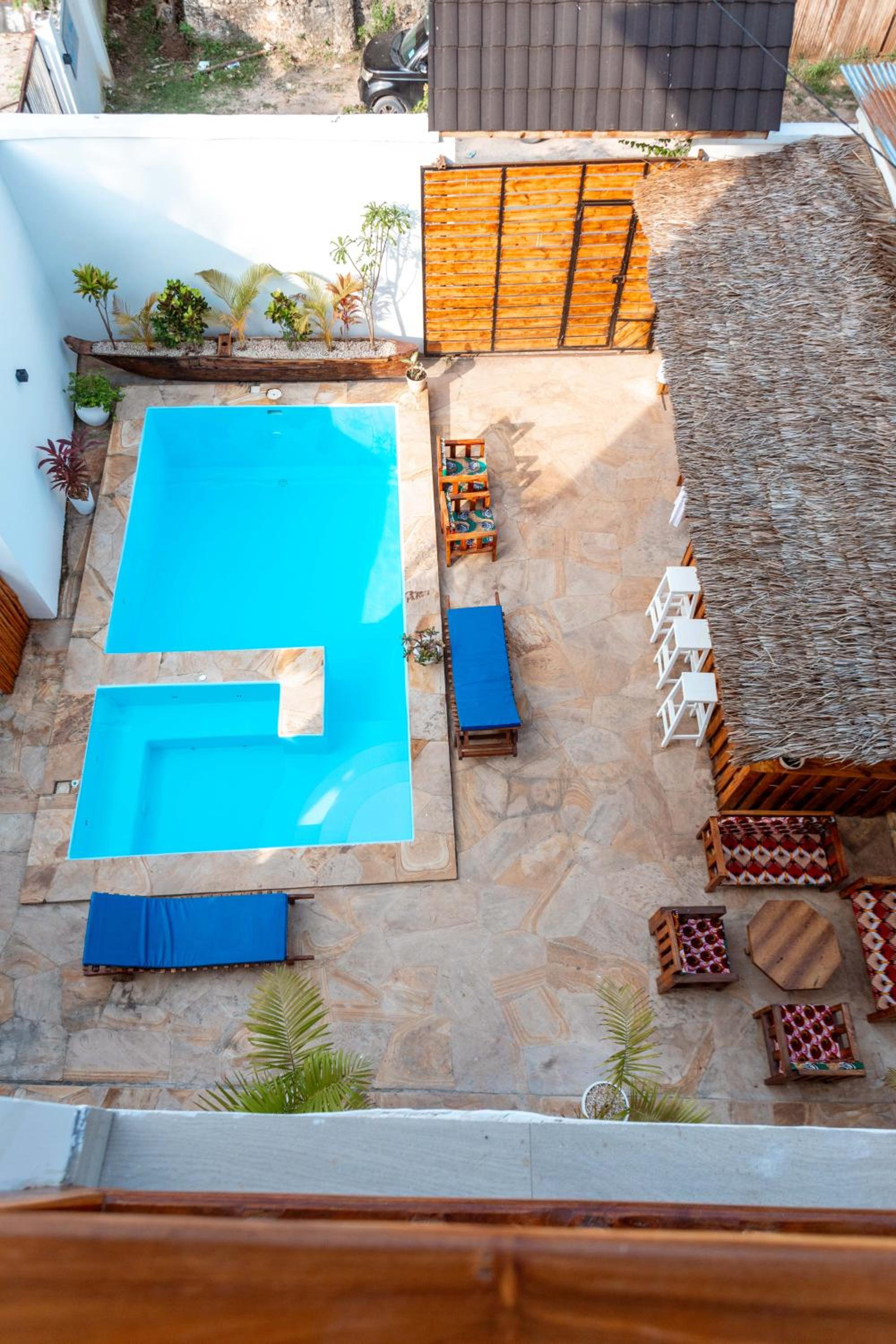 Unwind by the outdoor swimming pool, stroll through the garden, or lounge in the shared lounge area for a tranquil retreat in the heart of Jambiani.