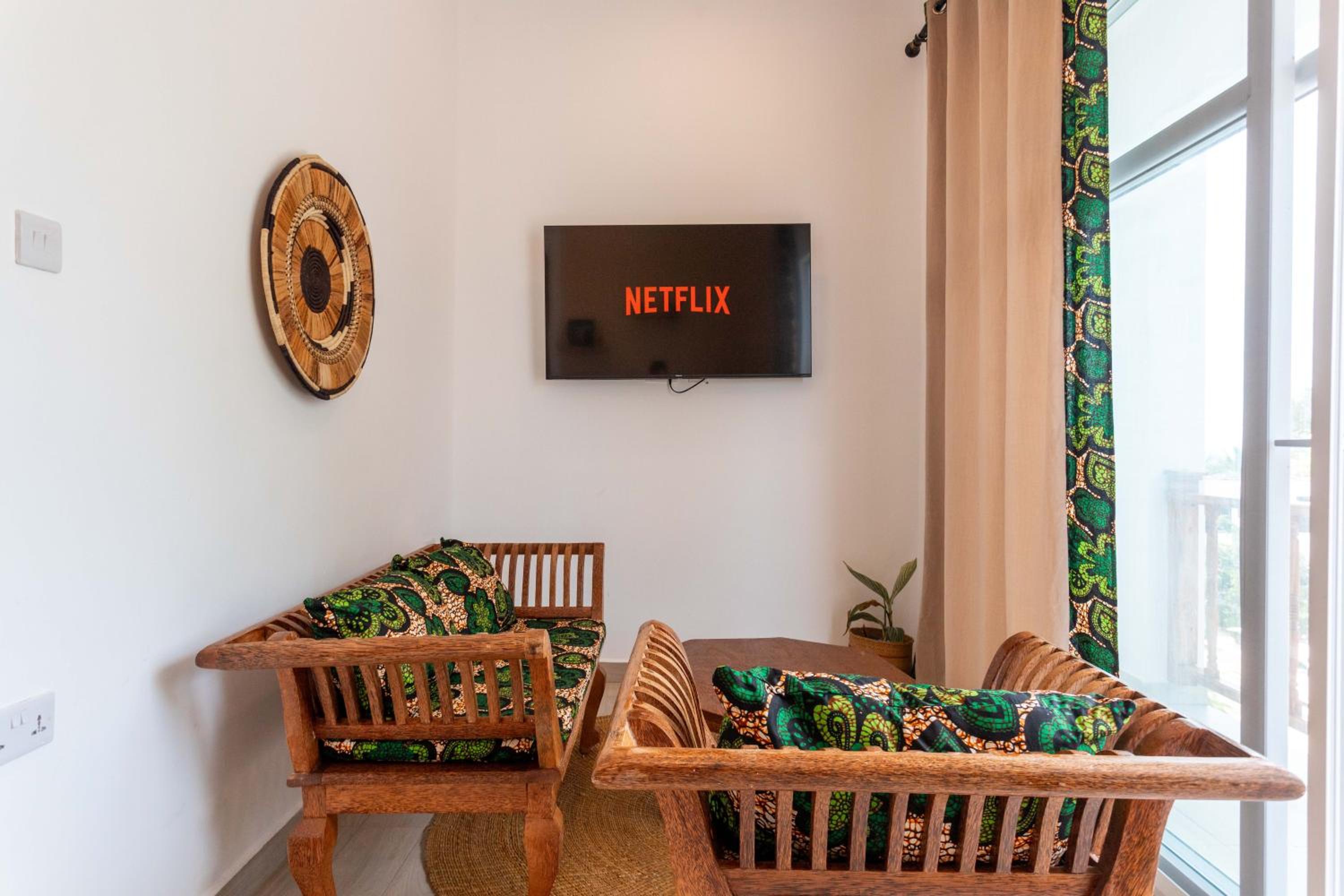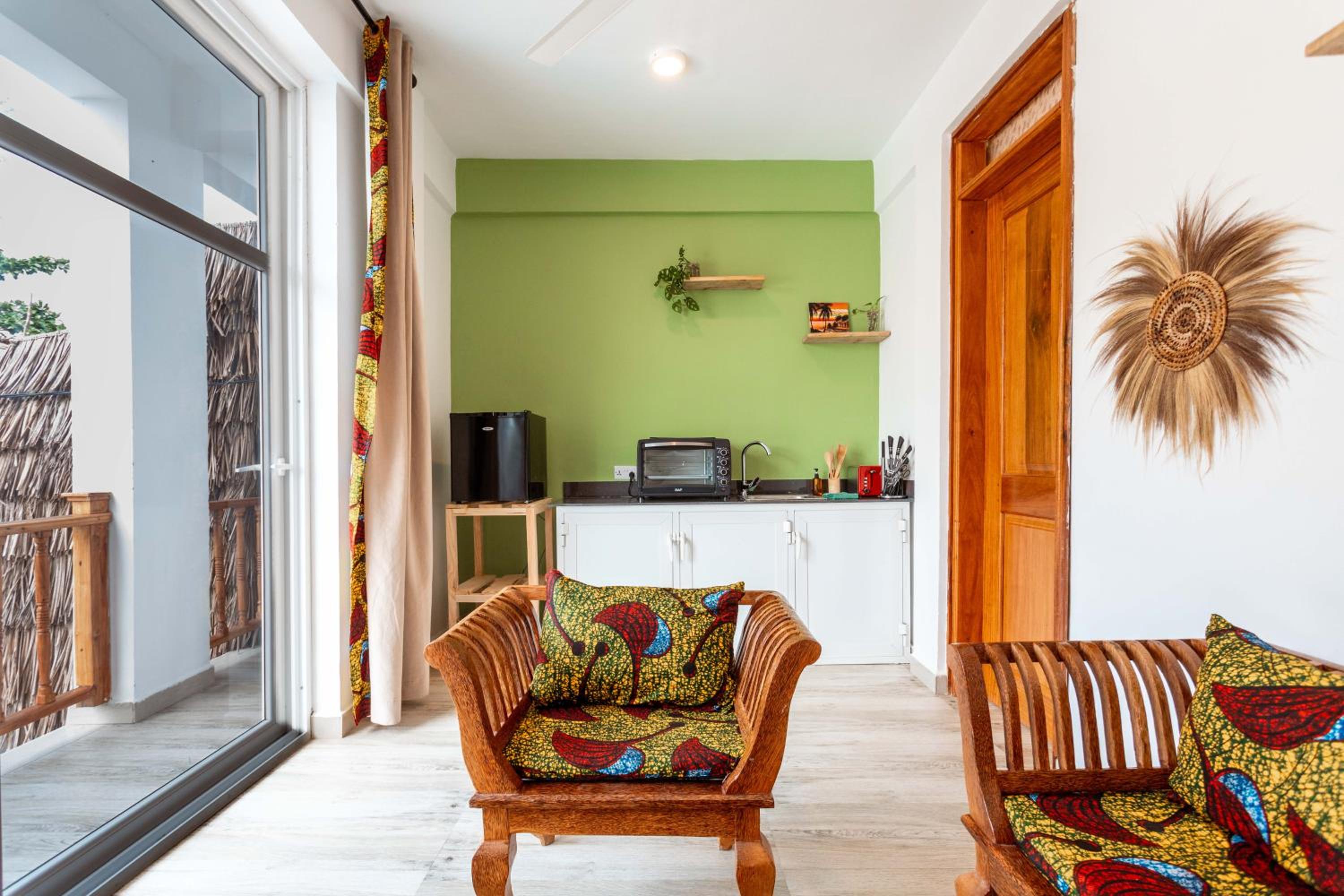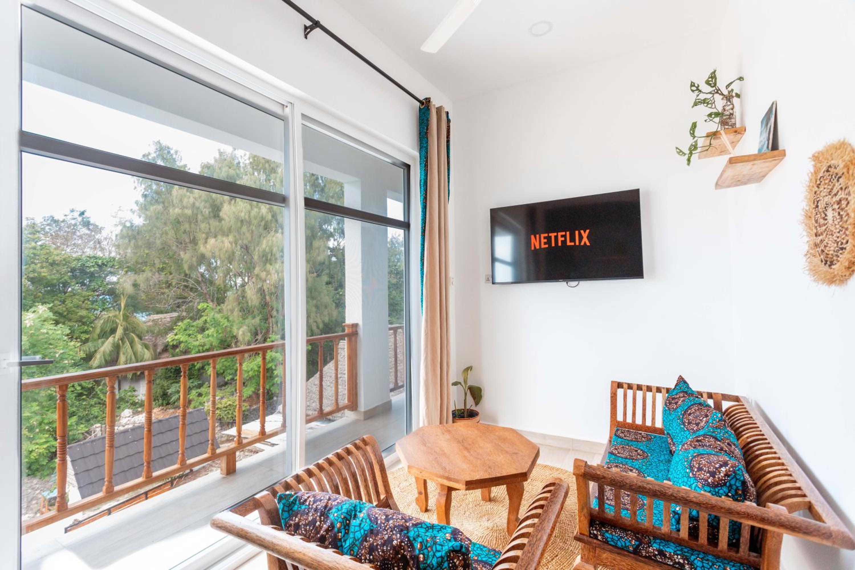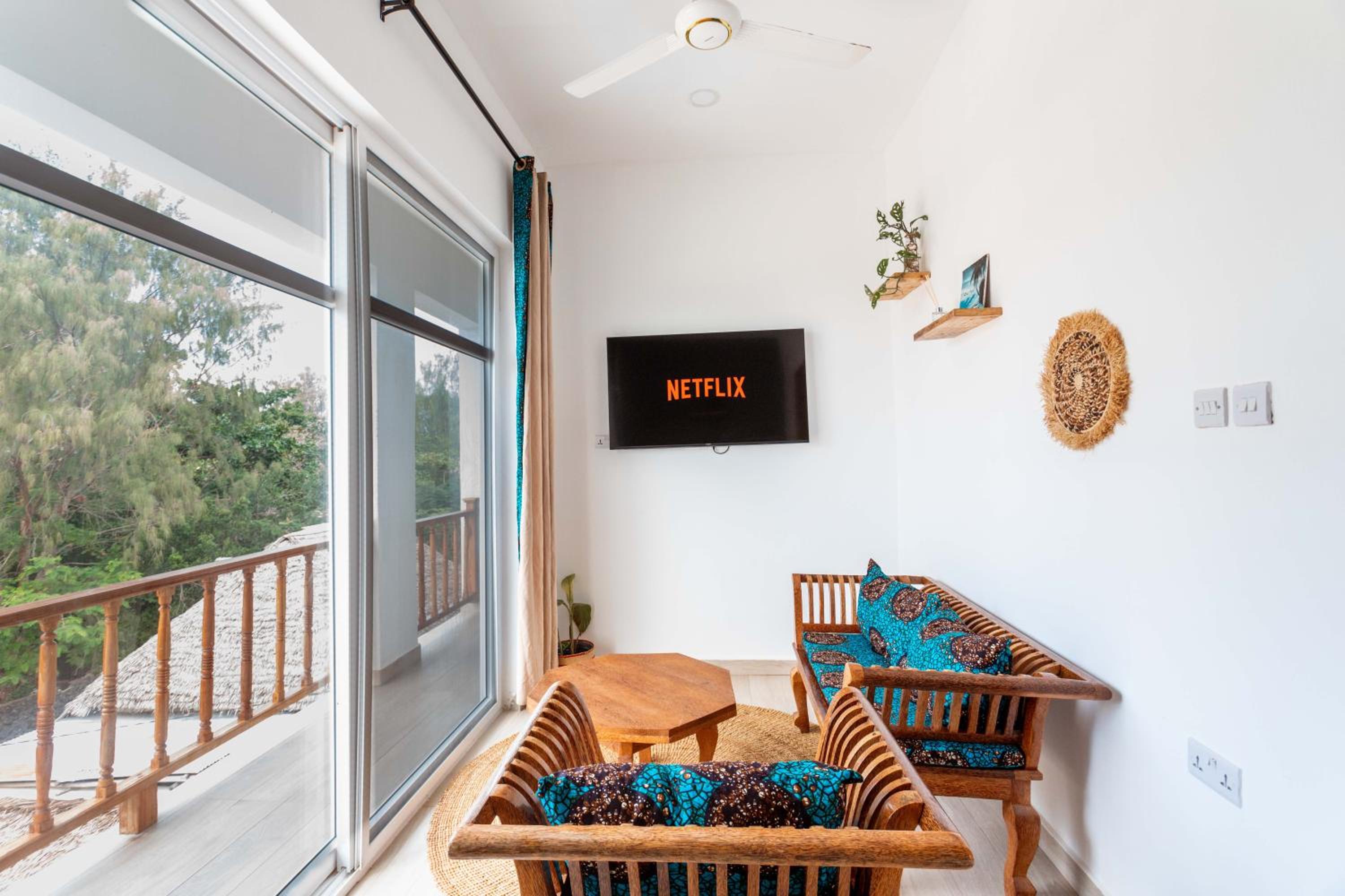 Unwind by the outdoor swimming pool, stroll through the garden, or lounge in the shared lounge area for a tranquil retreat in the heart of Jambiani.